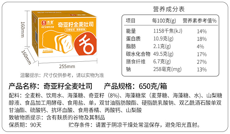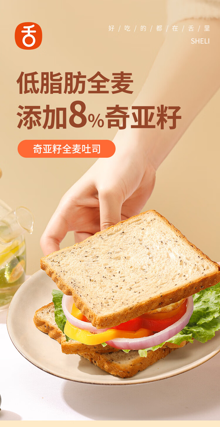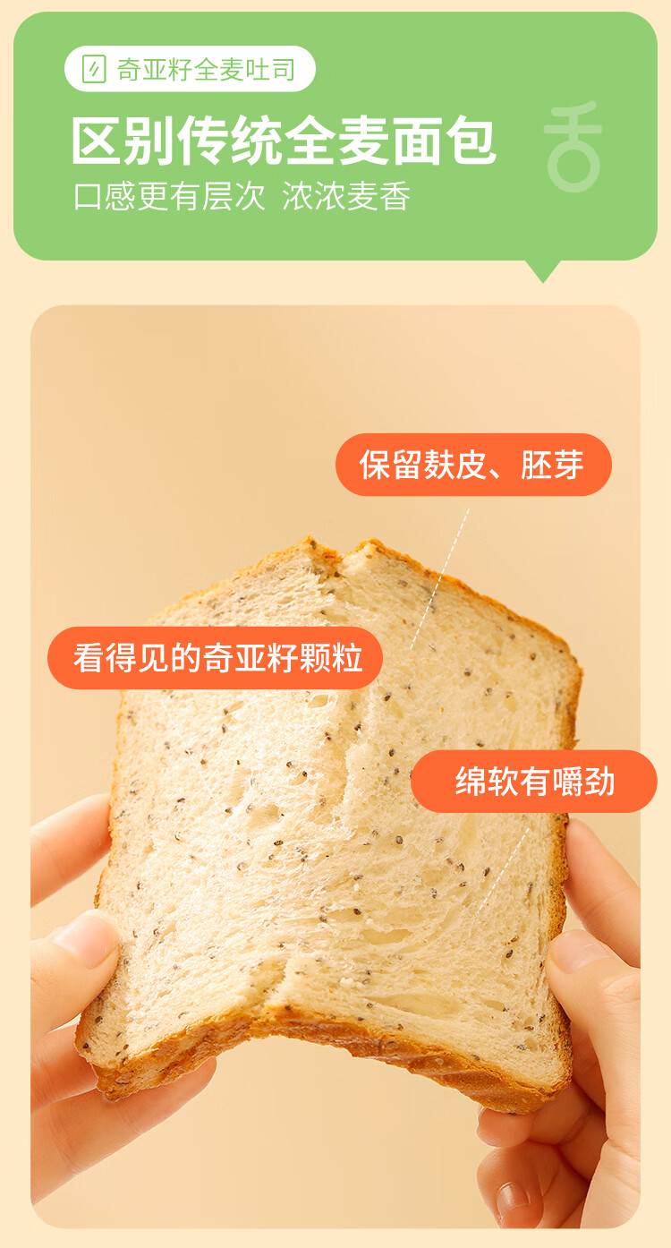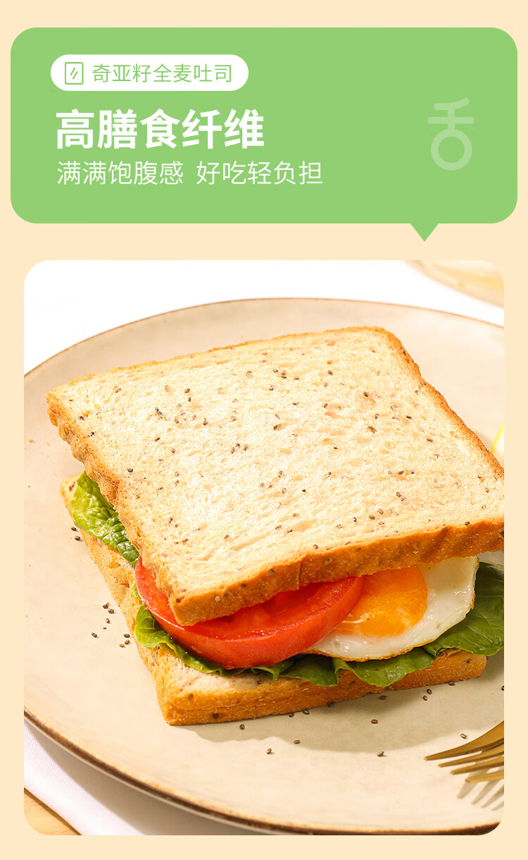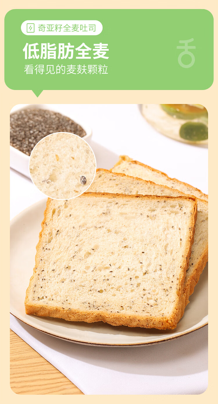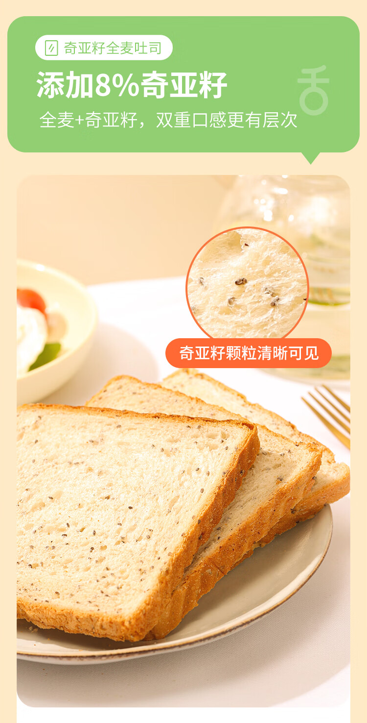 舌里奇亚籽低脂全麦面包吐司650g粗粮健身代餐早餐营养休闲零食