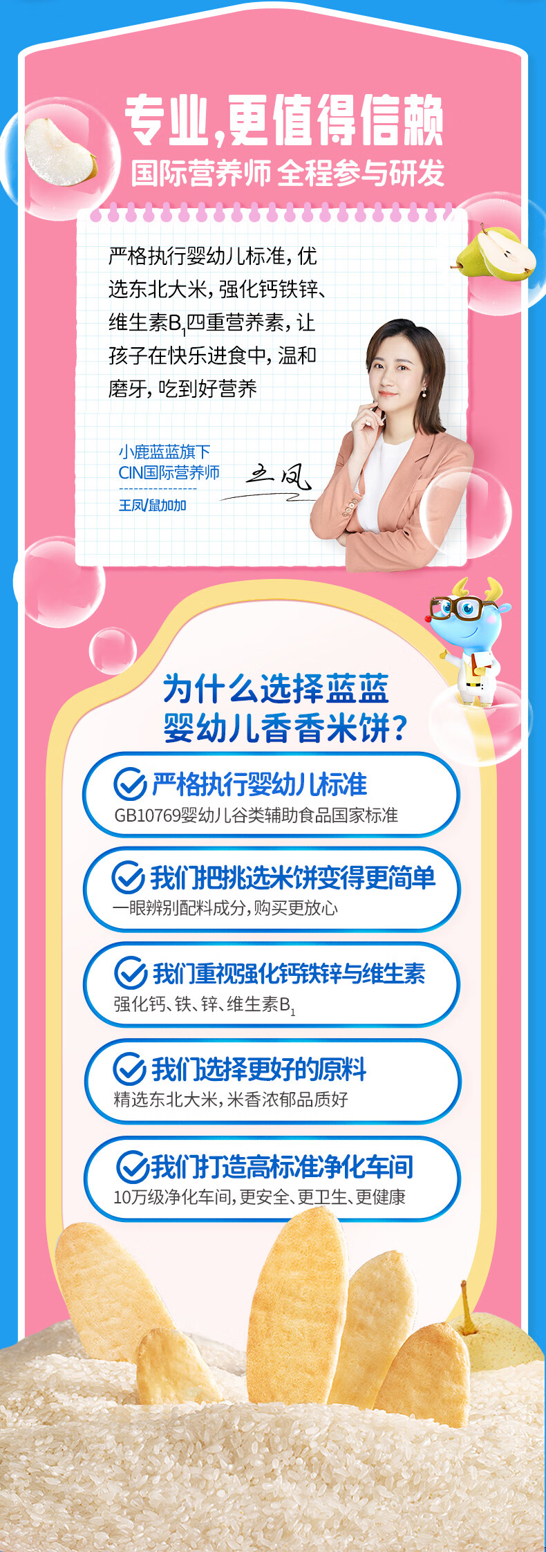 小鹿蓝蓝 宝宝米饼蔬菜味 米饼婴儿零食营养儿童磨牙饼 41g