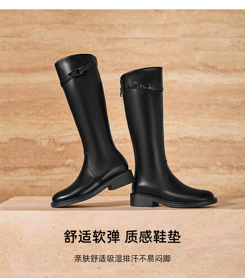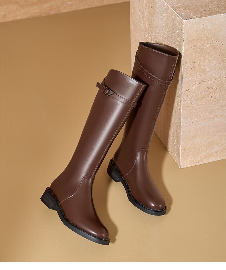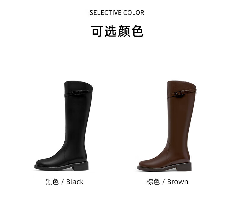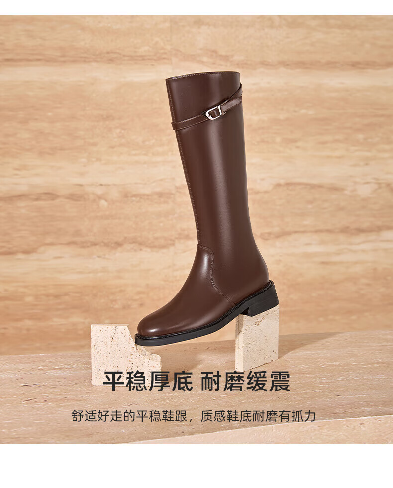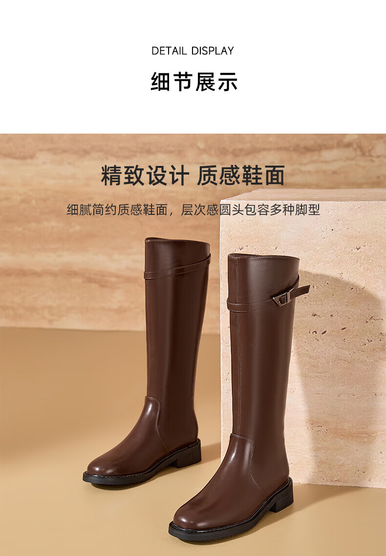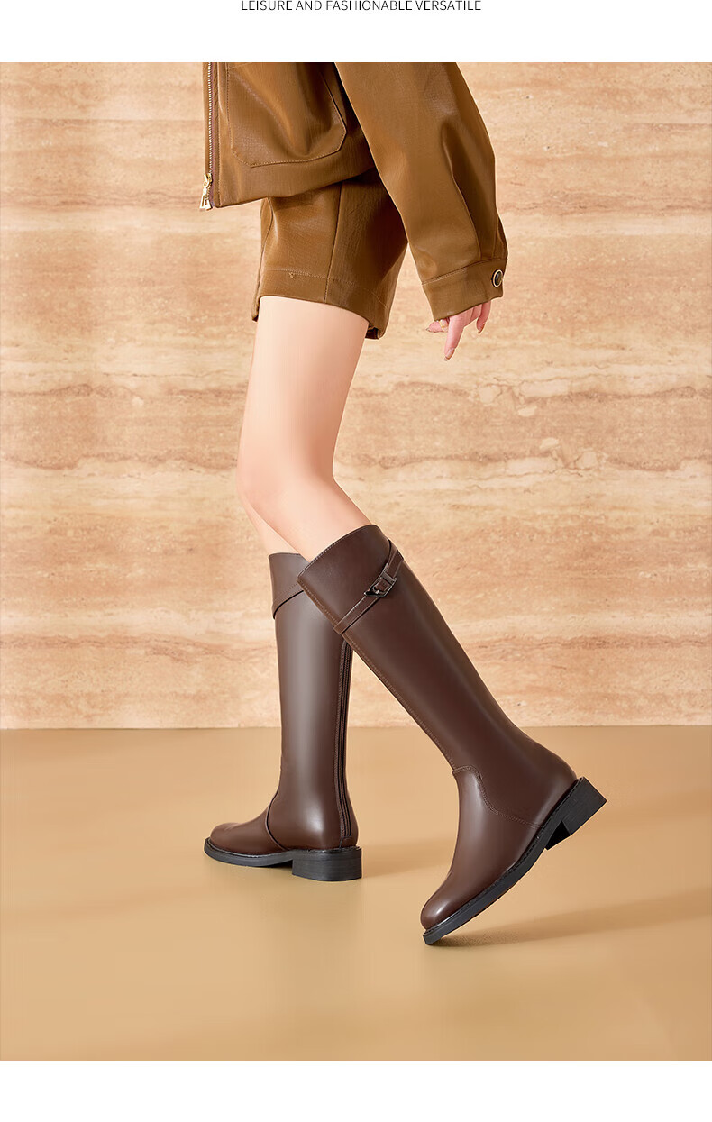星期六棕色长筒靴女2025新款爆款秋冬英伦风厚底马丁靴女高筒骑士靴单靴 棕色 38