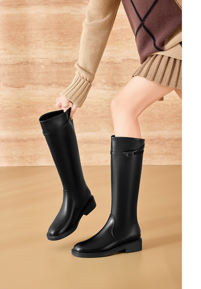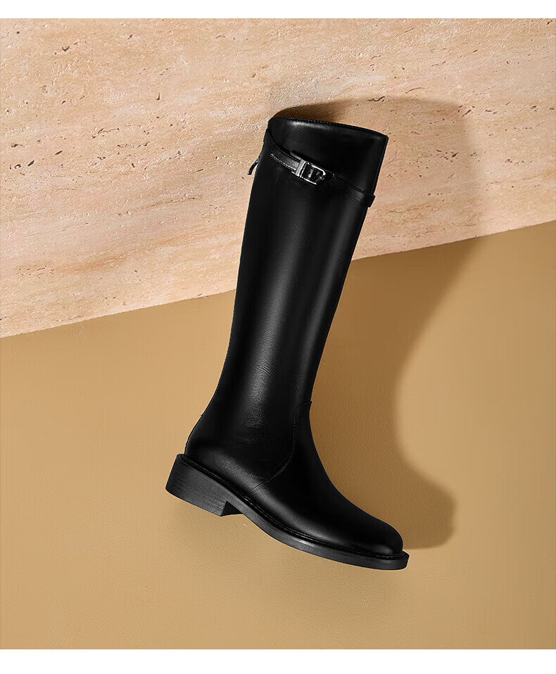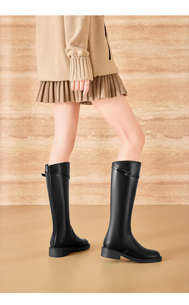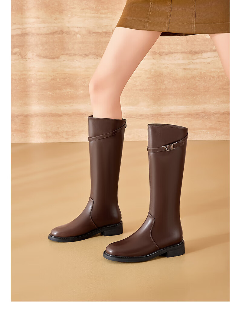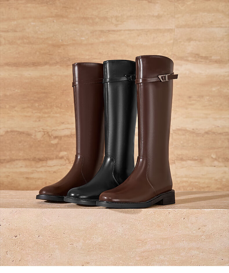 星期六棕色长筒靴女2025新款爆款秋冬英伦风厚底马丁靴女高筒骑士靴单靴 棕色 38