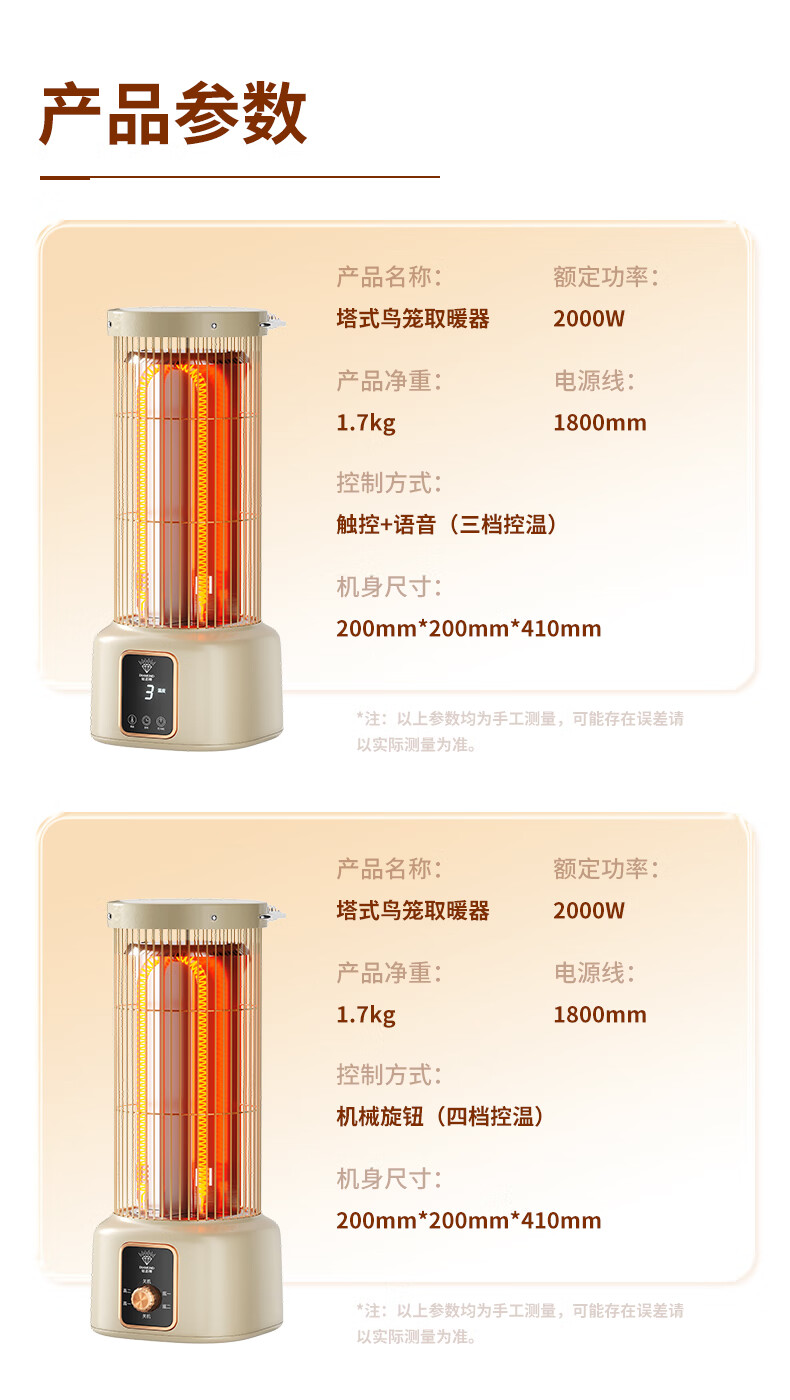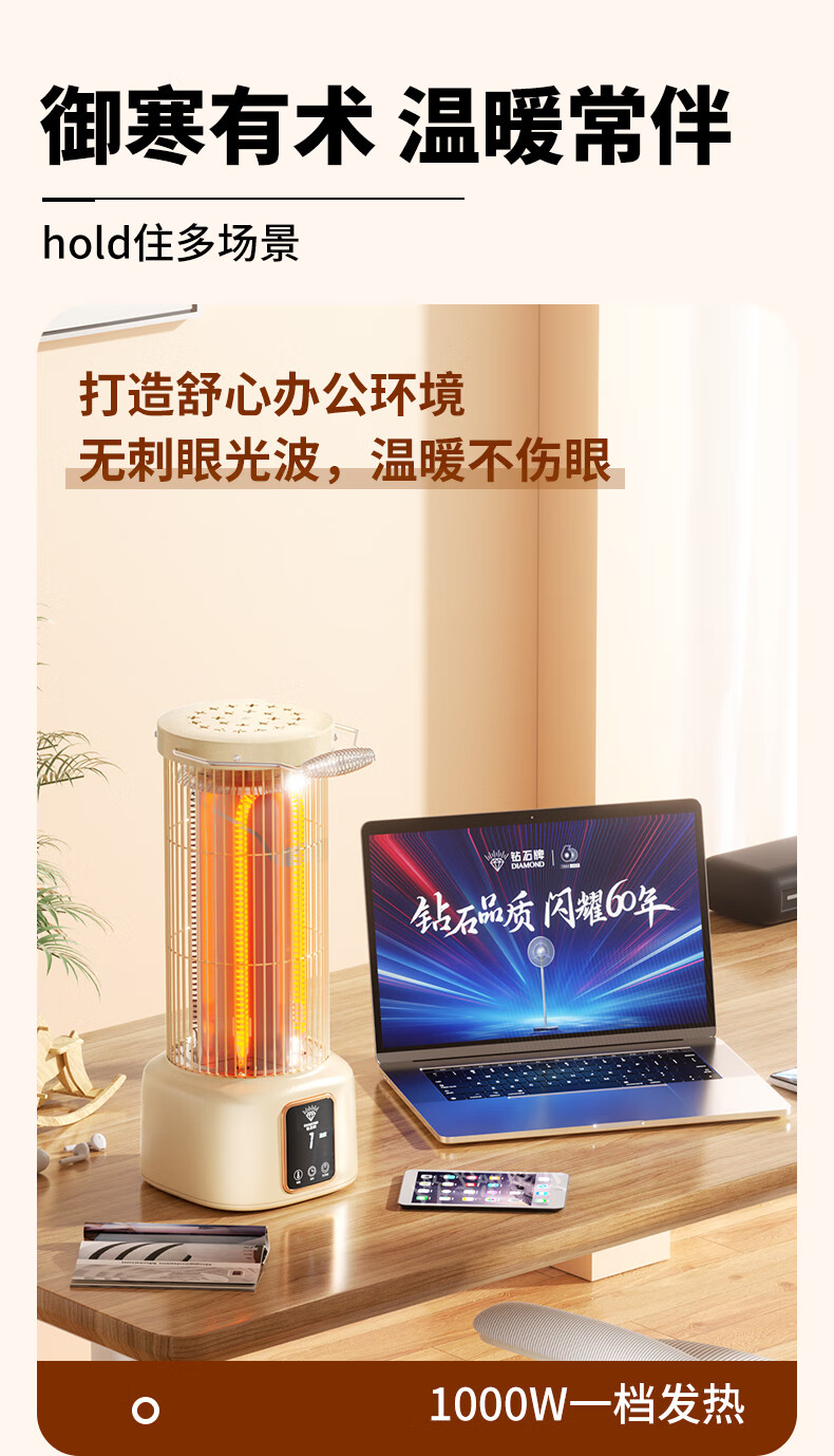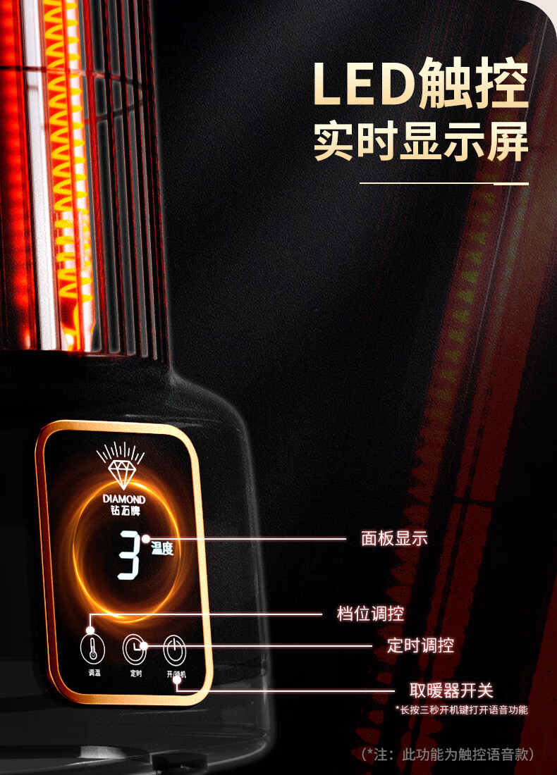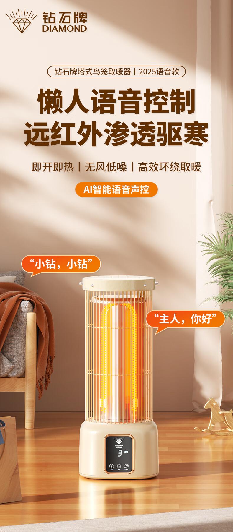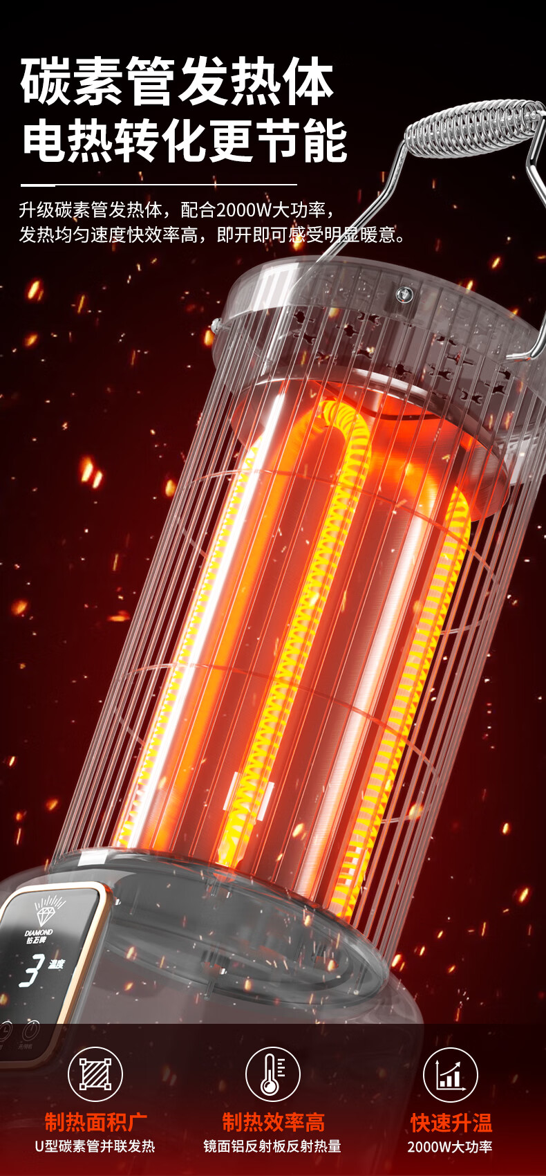 钻石牌暖风机取暖器电热电暖器家用热风机鸟笼塔式小太阳烤火炉办公室桌下电烤炉 机械款2000W【倾倒断电】延长线