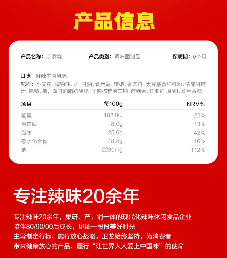 卫龙 辣条 亲嘴烧 牛肉味480g/盒 休闲零食 【魔道祖师联名】