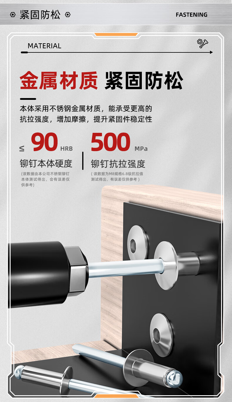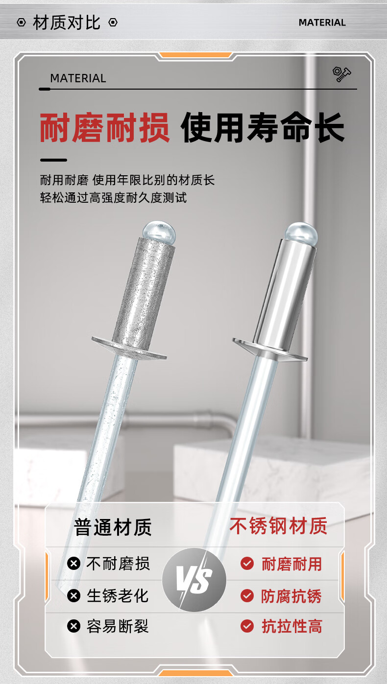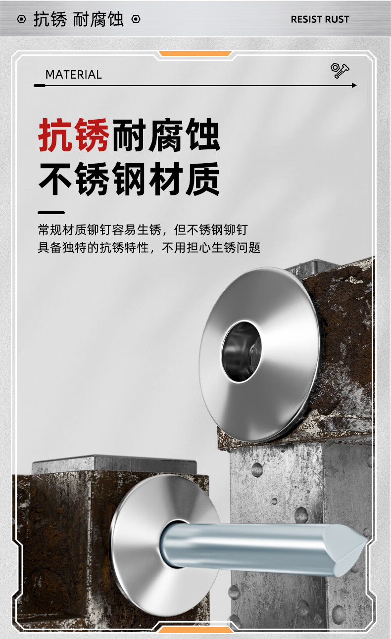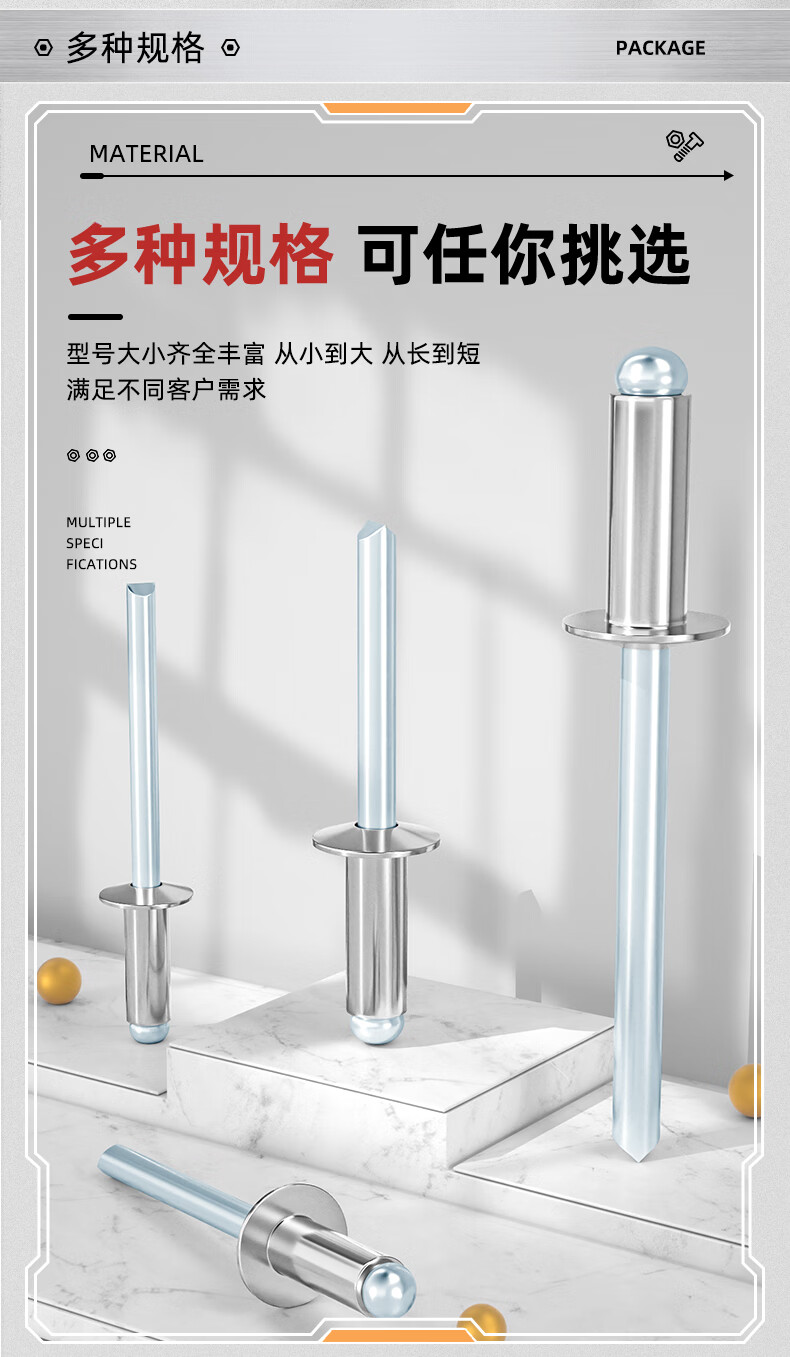 天卓五金304不锈钢抽芯铆钉开口型圆头拉铆钉卯钉抽心装潢M3.2M4M4.8M5mm ---此链接为304头-铁芯---