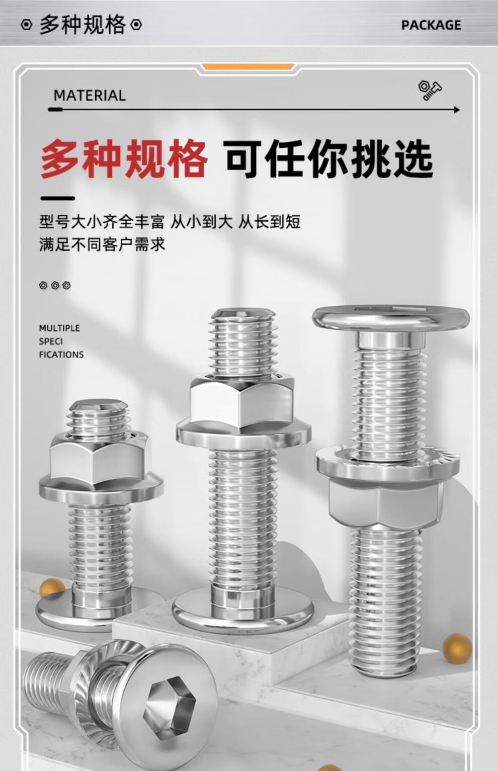 天卓五金304不锈钢CM薄头十字扁C平头大平头螺丝钉法兰螺母组合套装M2.5 M2.5*2.5(头径5)【50套】