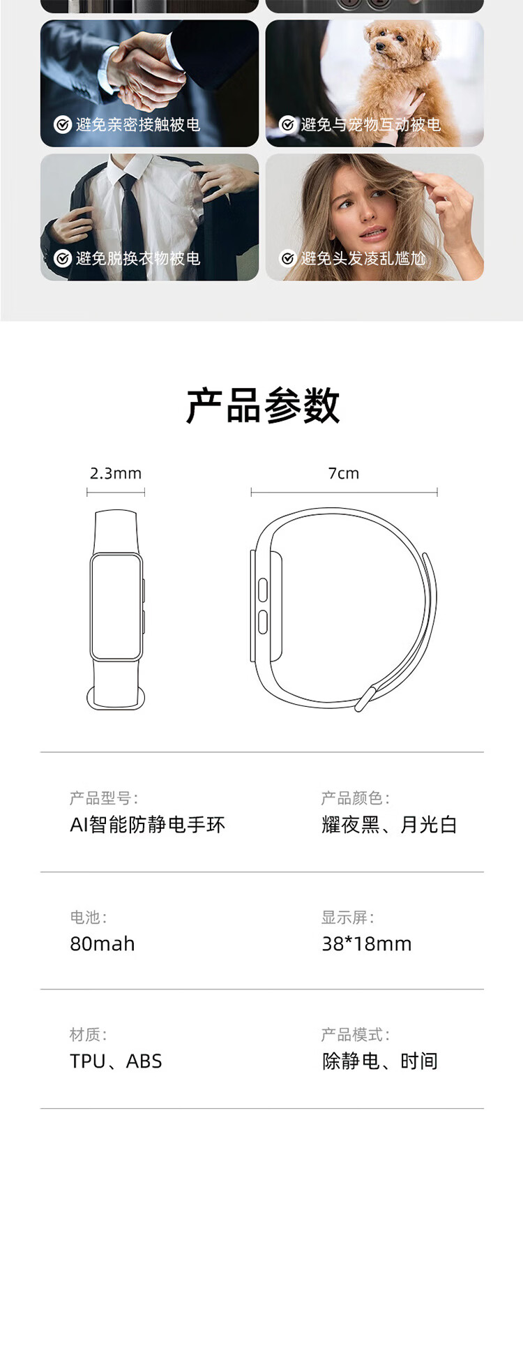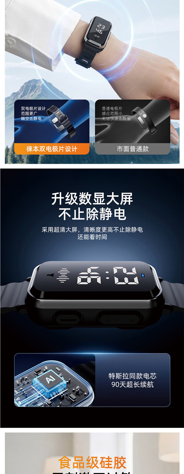 筏芯【德国】防静电手环消除器去除静电无线男女款人体静电释放器 米白旗舰款【数显屏幕】除静电AI专利手环