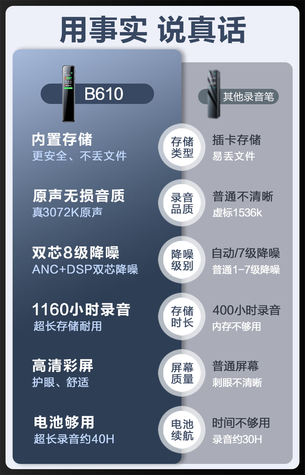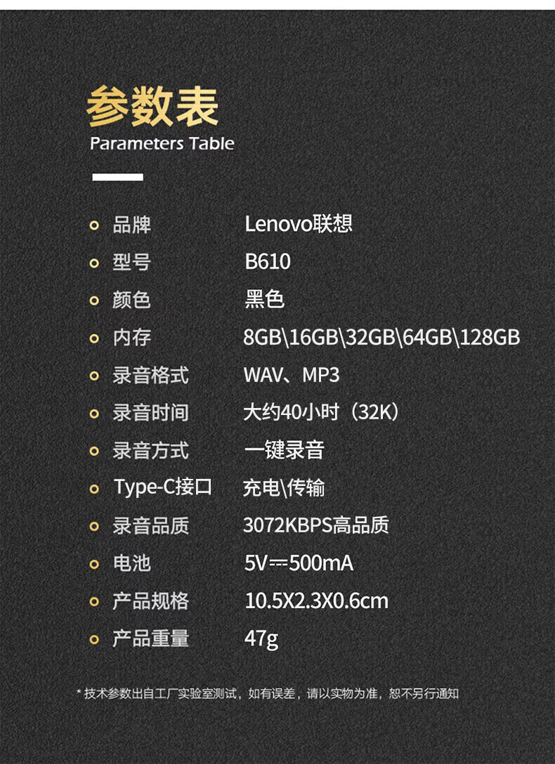 联想(Lenovo)录音笔B610 16G专业高清远距声控降噪 超长待机录音器学生学习商务采访会议培训