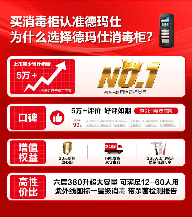 德玛仕(DEMASHI)商用消毒柜 立式消毒碗柜消毒柜家用酒杯茶杯餐具碗筷家用厨房紫外线消毒柜大容量立式消毒柜 6层大空间丨中温丨紫外线一星丨260升