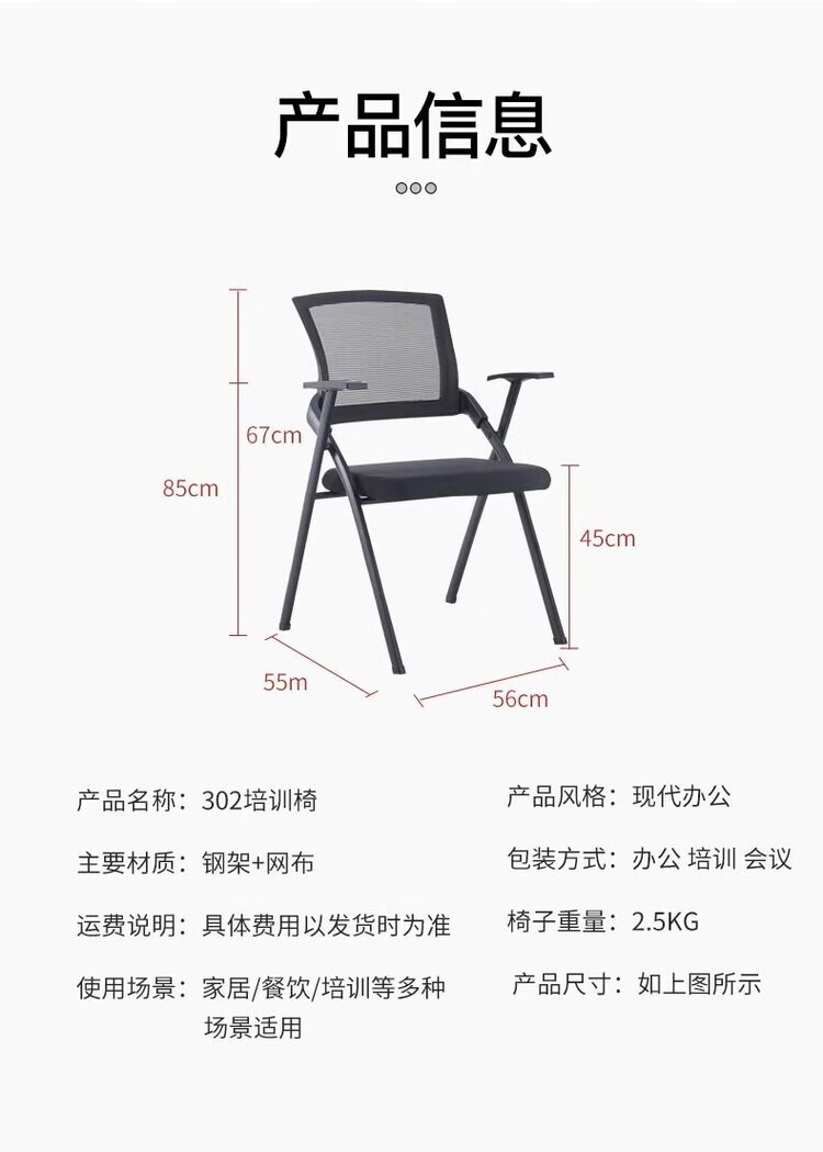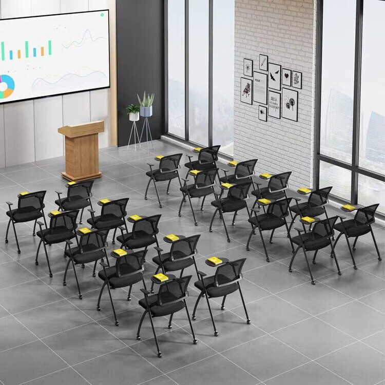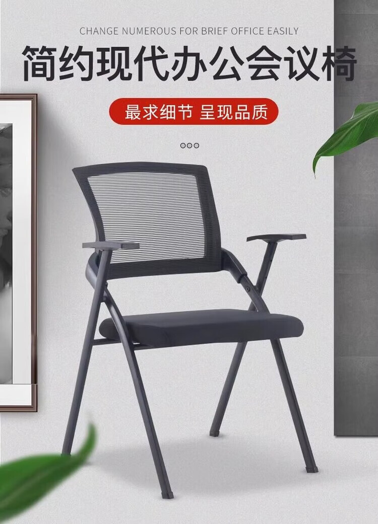 欣慕雅折叠培训椅会议椅简易办公开会工作教育机构靠背椅会议室培训椅子 黑色靠背单椅