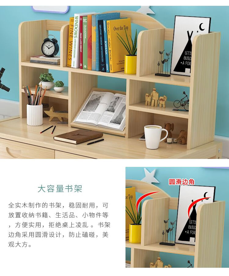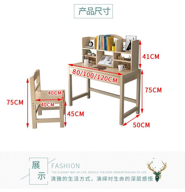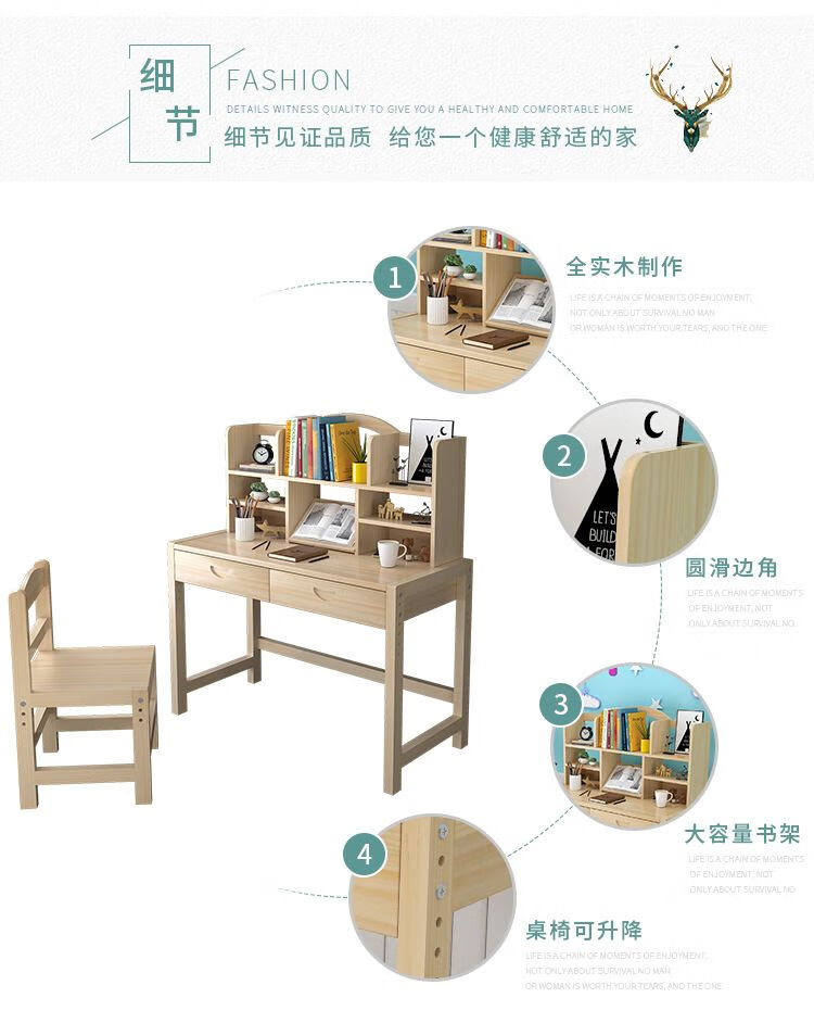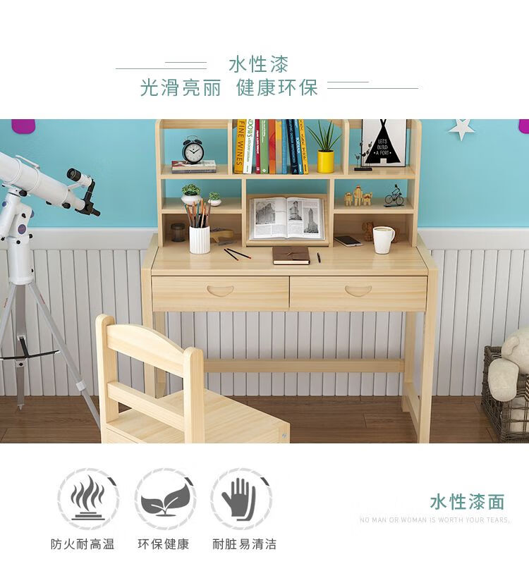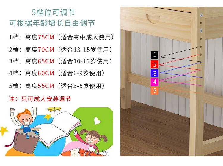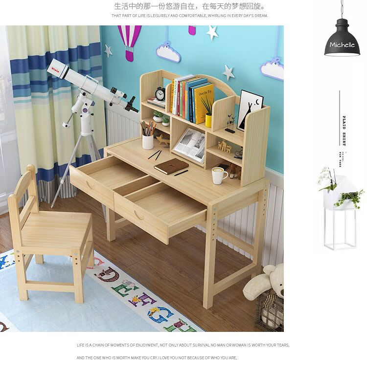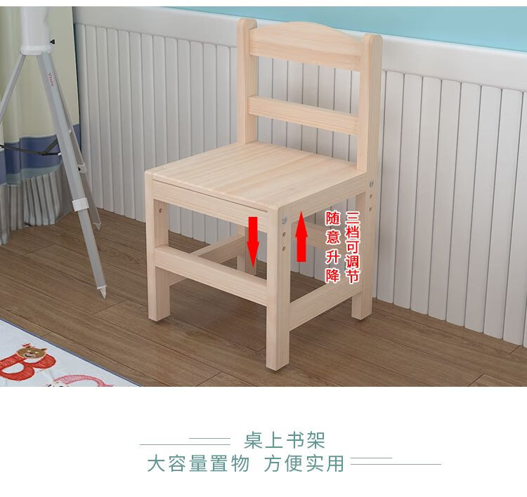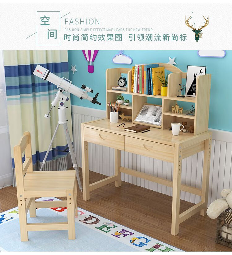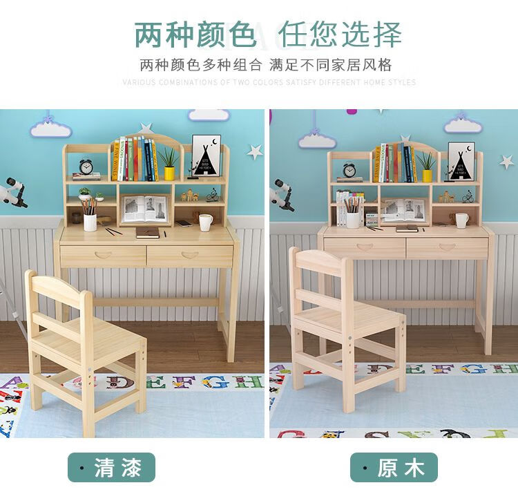 弘星隆实木儿童学习桌可升降儿童书桌小学生写字桌椅套装松木全实木书桌 05款天然原木无漆 80*50*75桌椅一套可升降