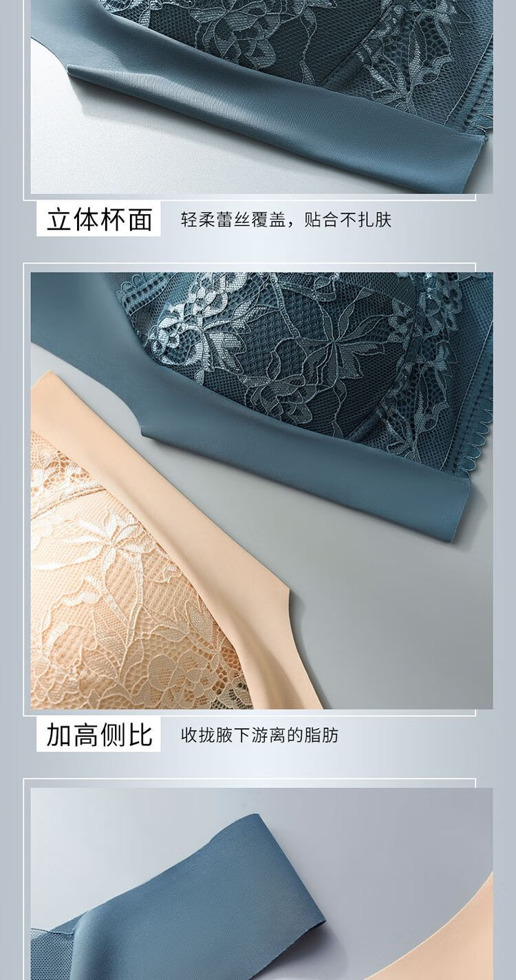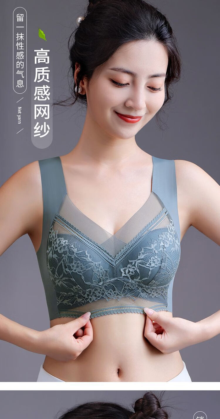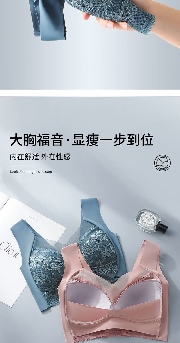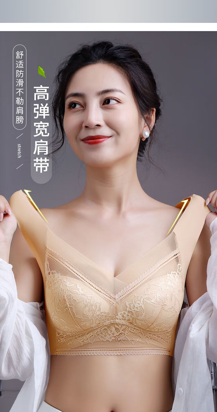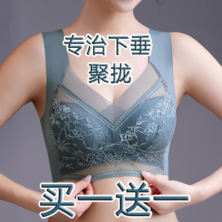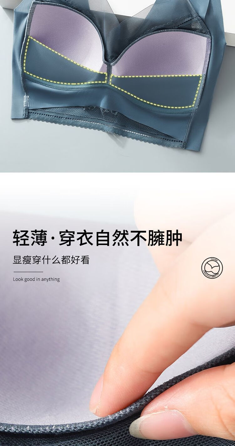 AILUKI买一送一女士内衣无钢圈抹胸聚拢防下垂收副乳胸罩蕾丝背心式文胸 【2件装】墨蓝色+肤色 L 【80-100斤】