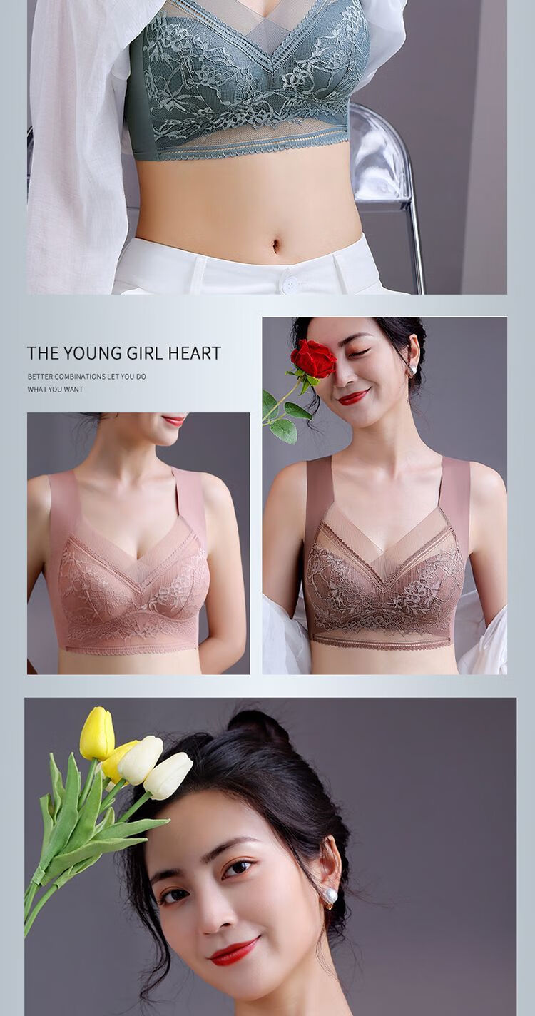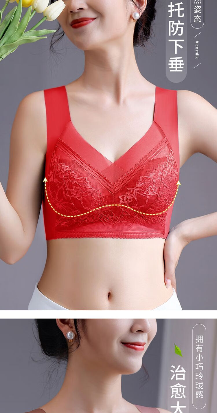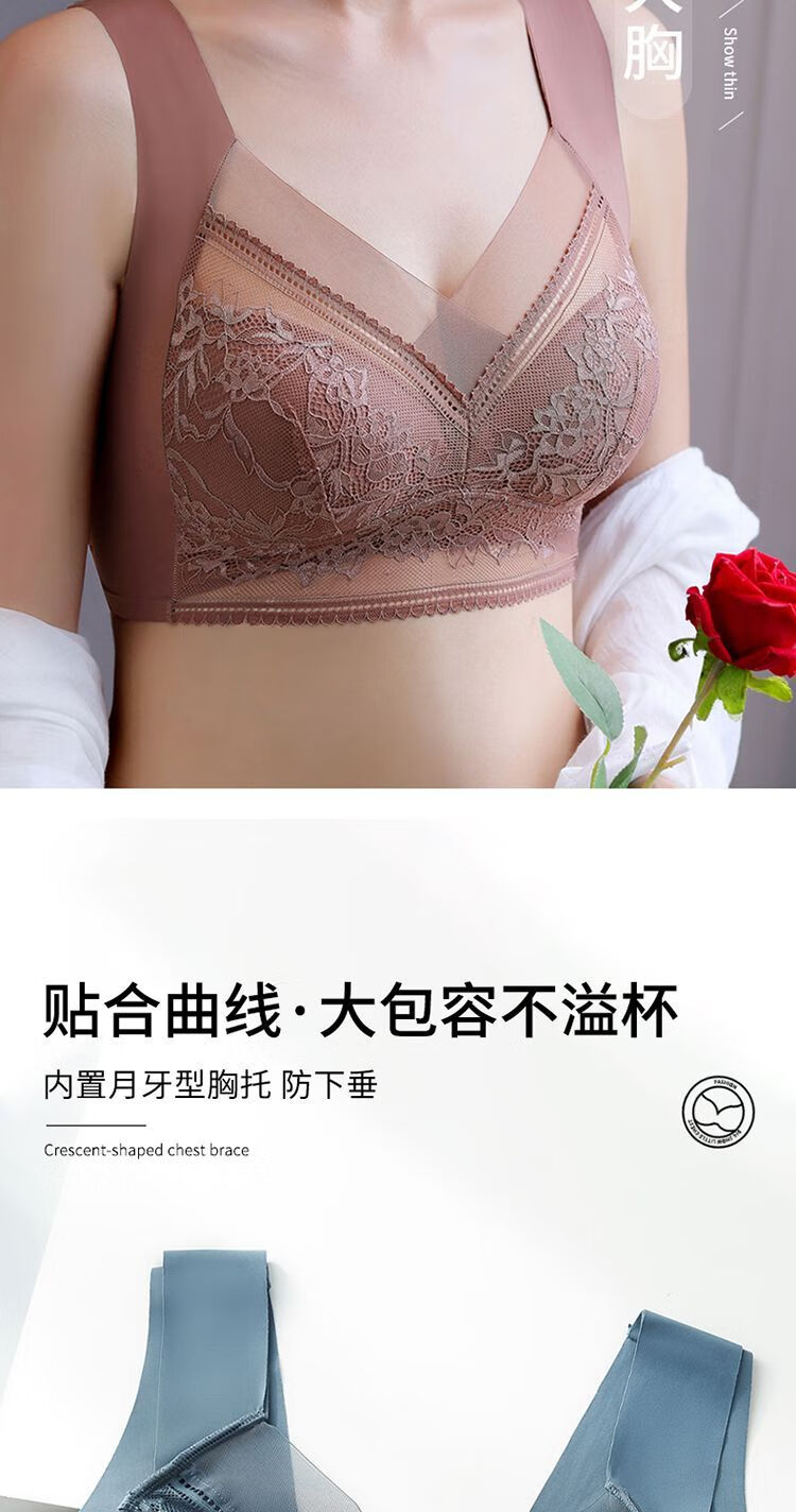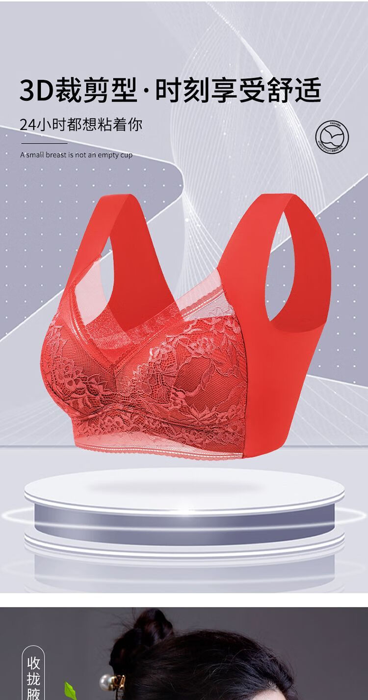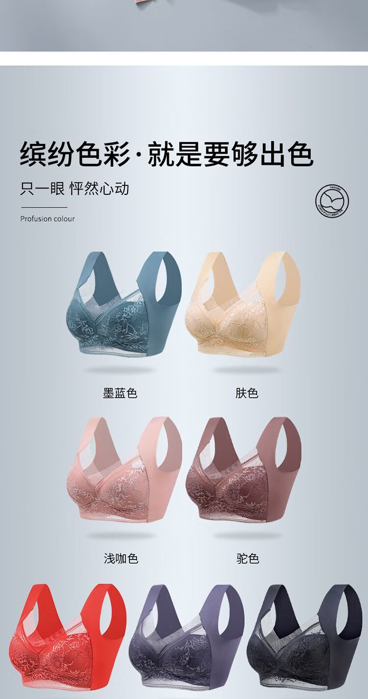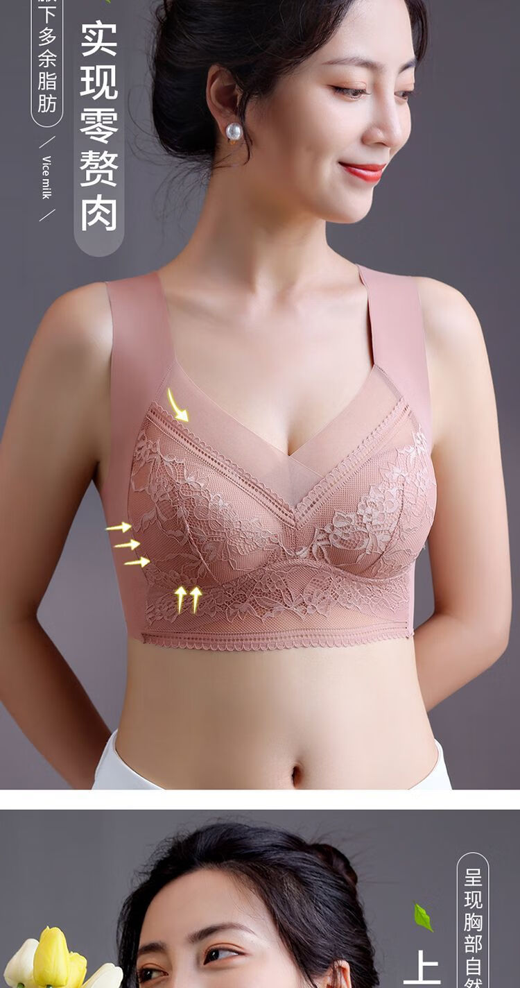 AILUKI买一送一女士内衣无钢圈抹胸聚拢防下垂收副乳胸罩蕾丝背心式文胸 【2件装】墨蓝色+肤色 L 【80-100斤】