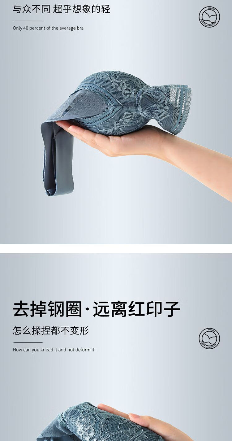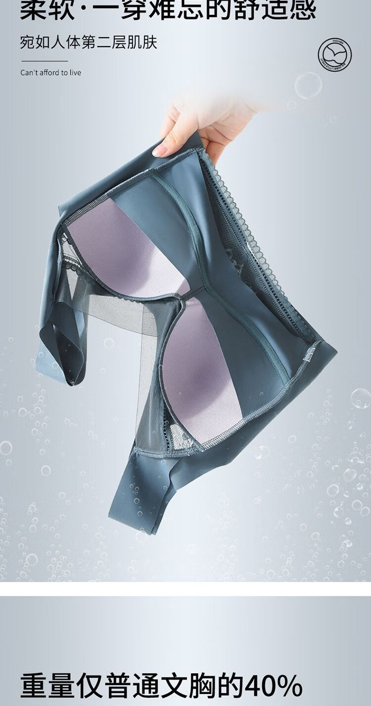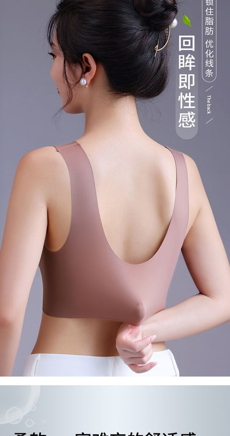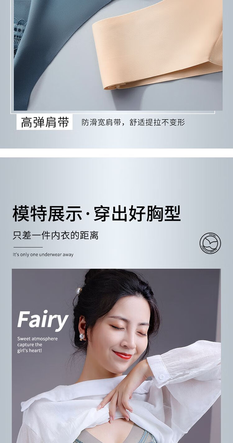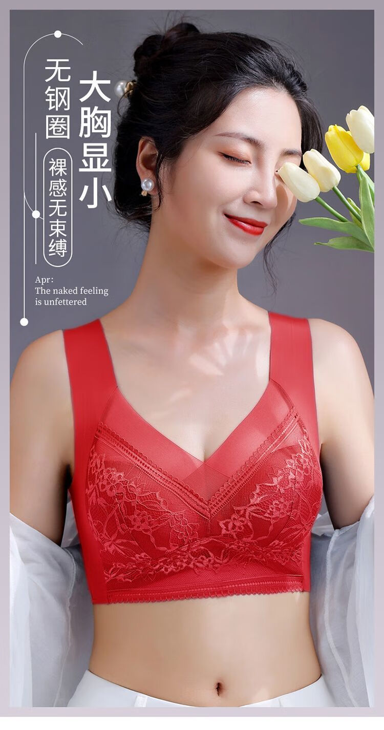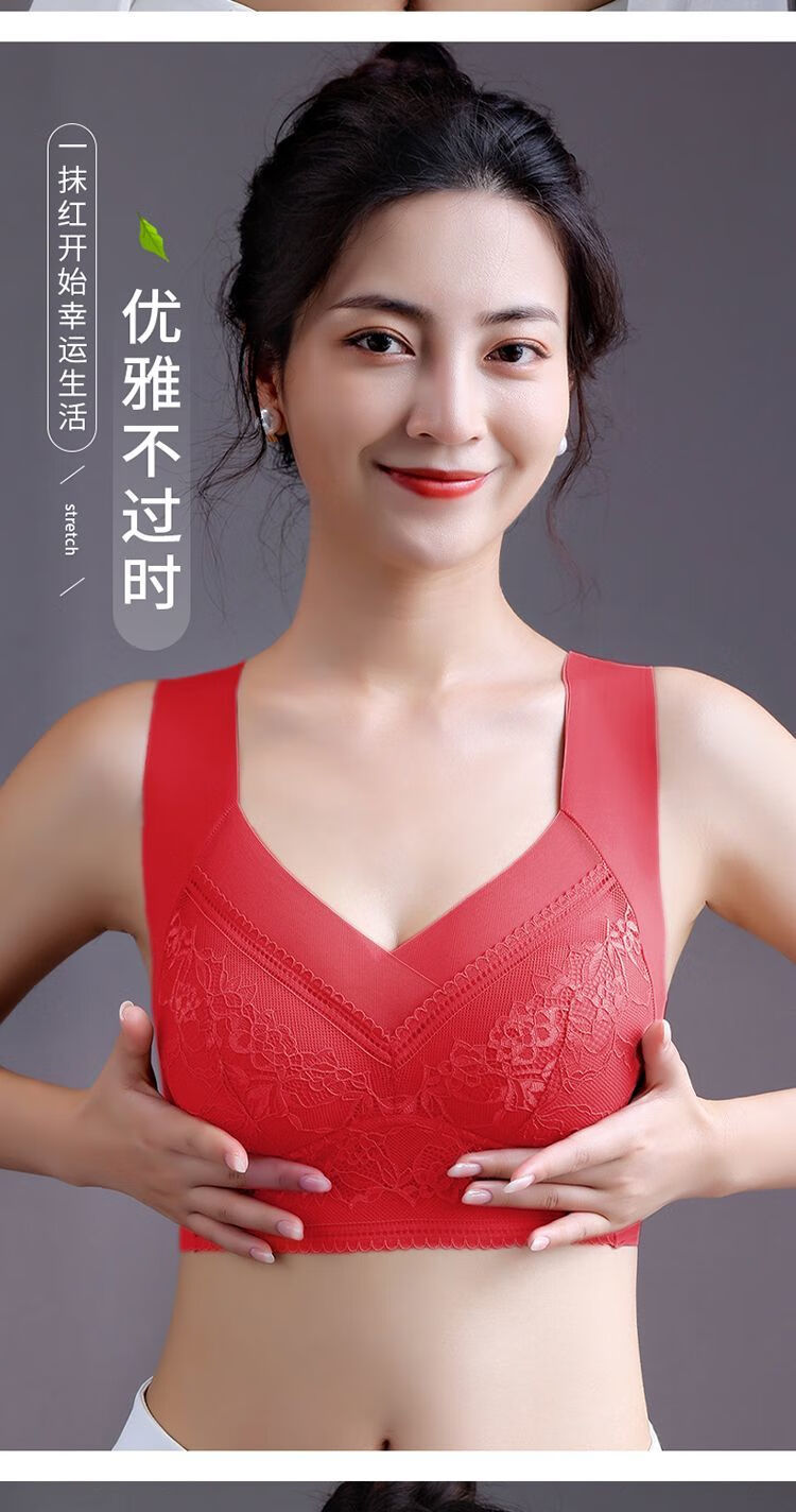 AILUKI买一送一女士内衣无钢圈抹胸聚拢防下垂收副乳胸罩蕾丝背心式文胸 【2件装】墨蓝色+肤色 L 【80-100斤】