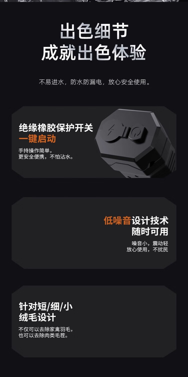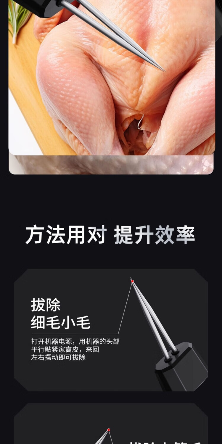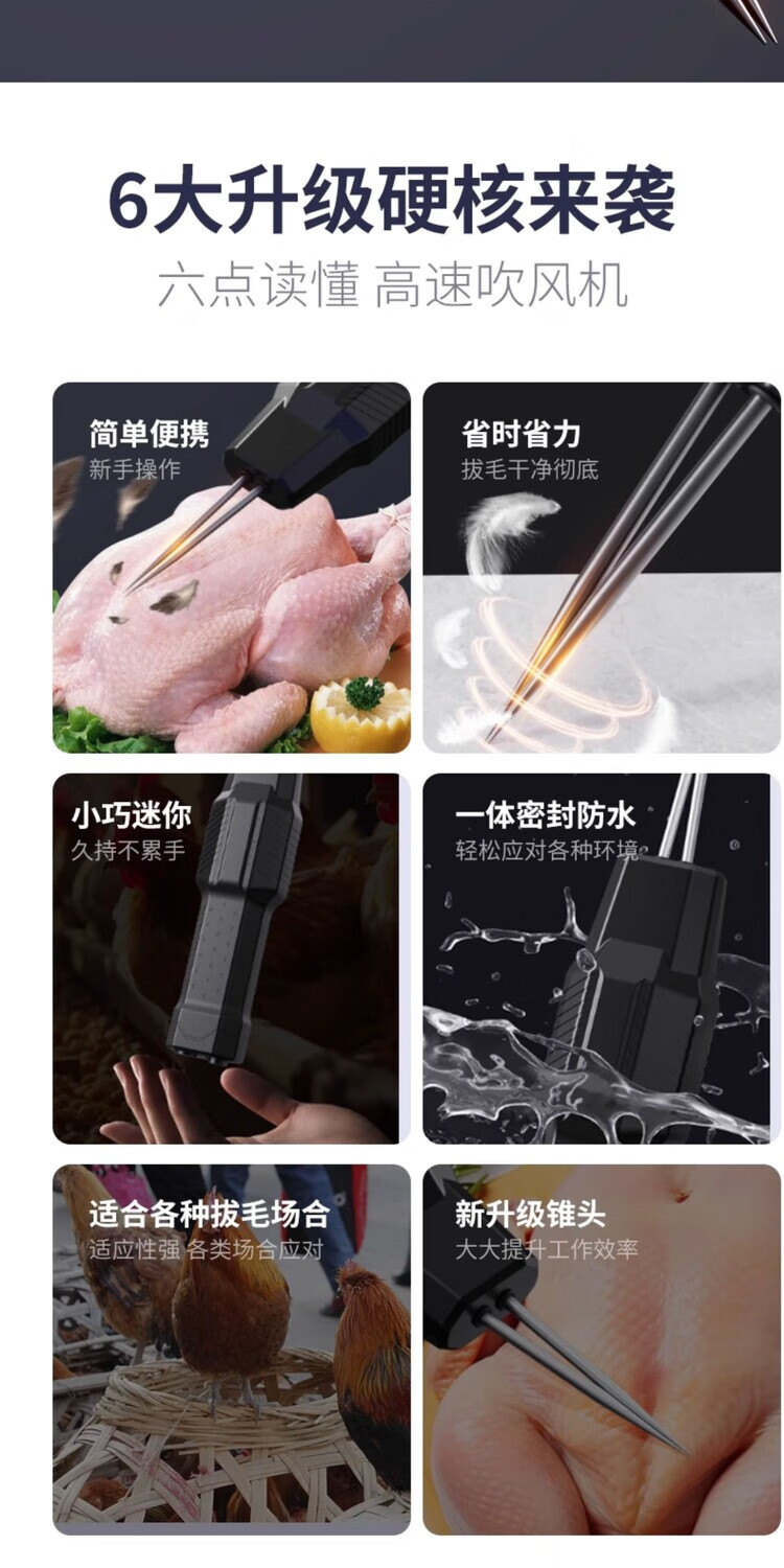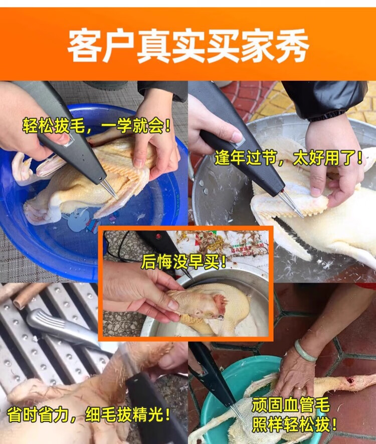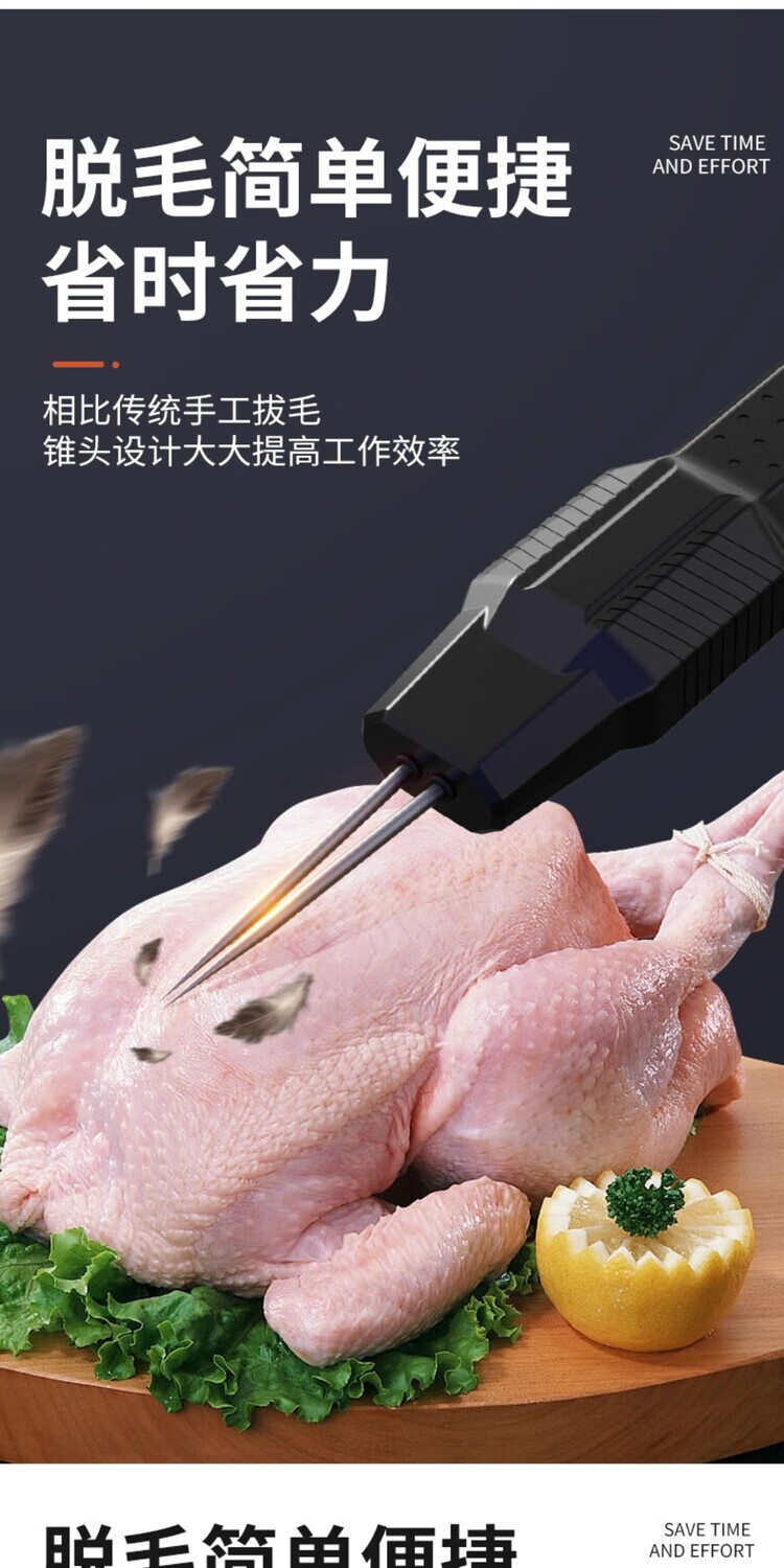 户璃德国鸡鸭鹅电动拔毛神器手持充电家禽脱毛机大大功率去猪毛防水去毛机 【大号充电款】家禽拔毛器(送充电线)