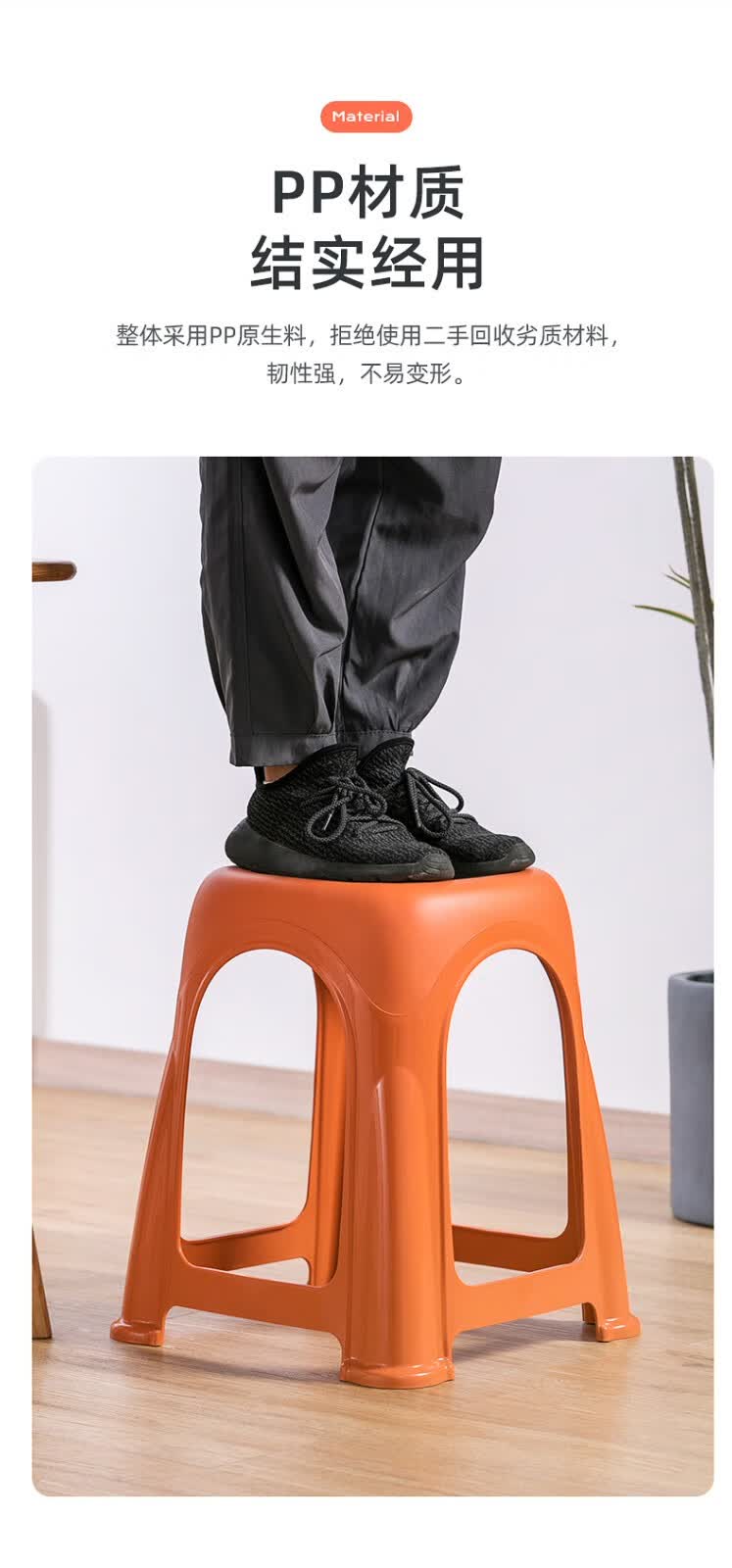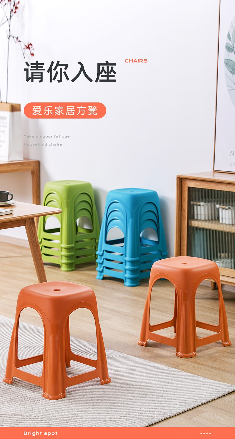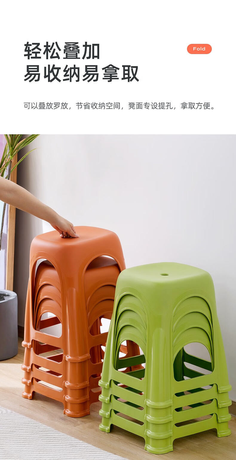 茶花塑料凳子高脚凳加厚家用客厅简约防滑餐桌凳折叠便携板凳109001 高凳-橙色2张