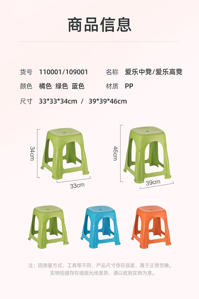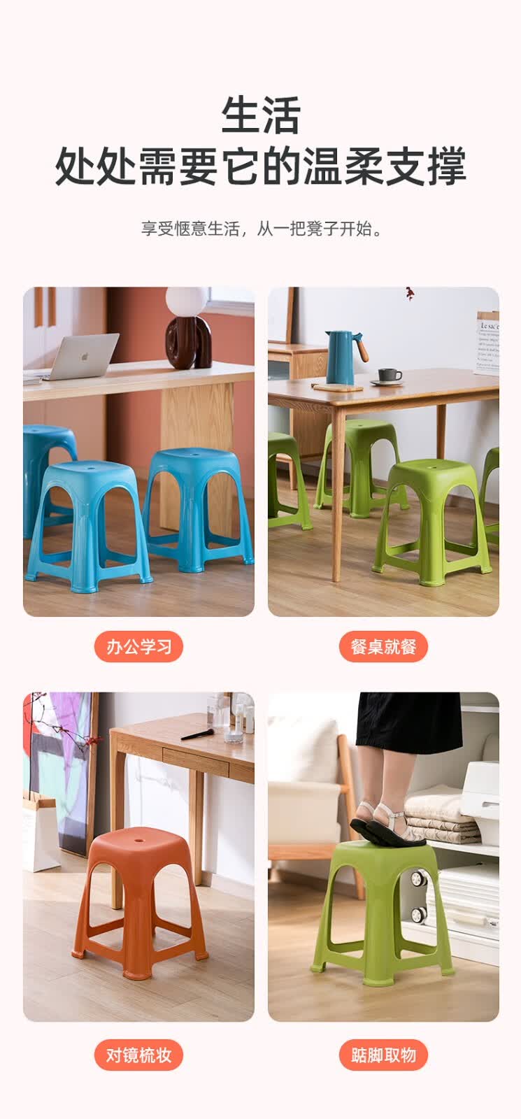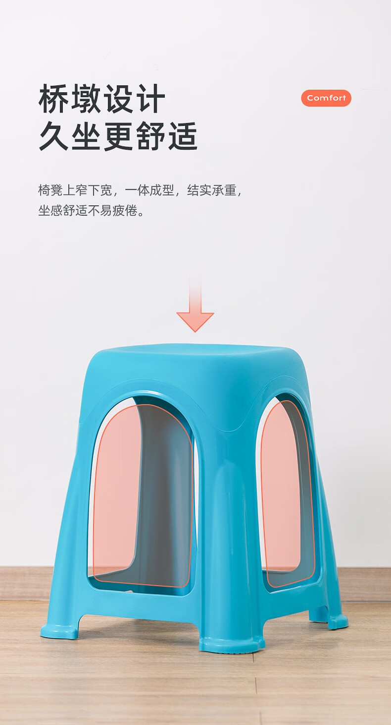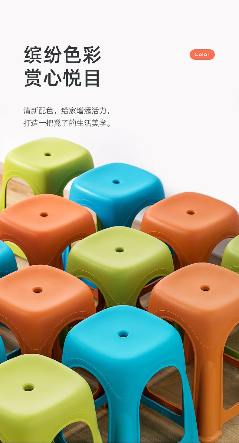 茶花塑料凳子高脚凳加厚家用客厅简约防滑餐桌凳折叠便携板凳109001 高凳-橙色2张