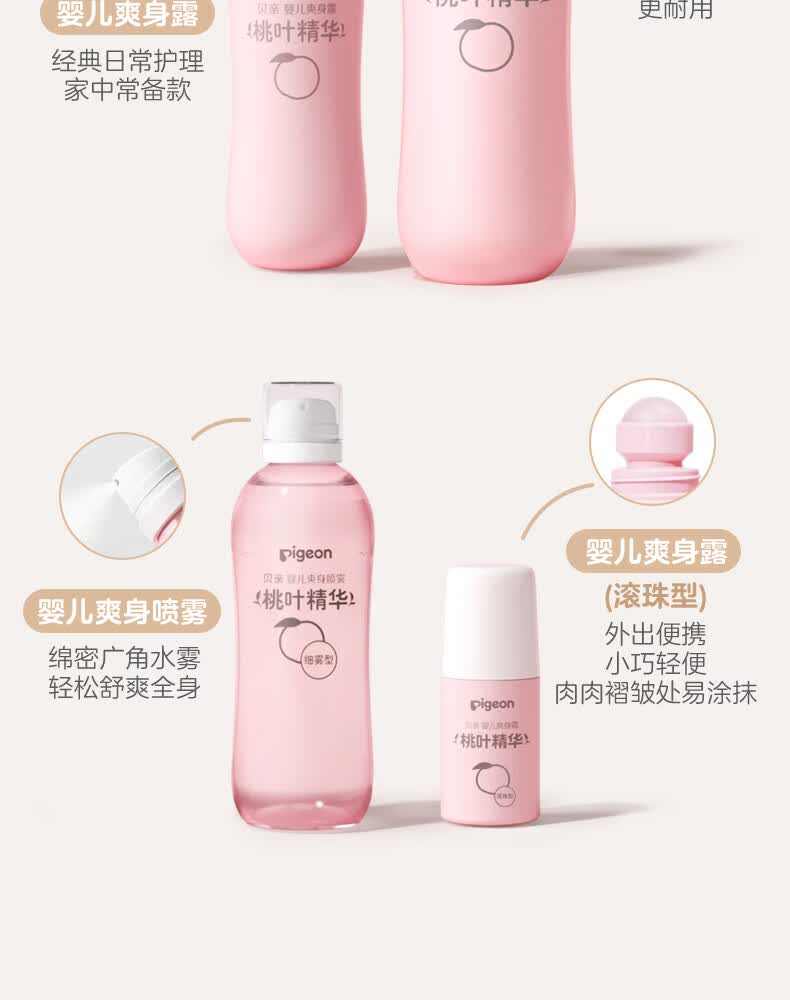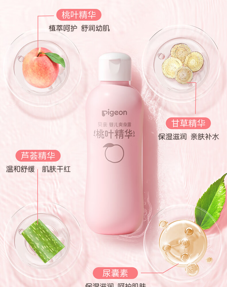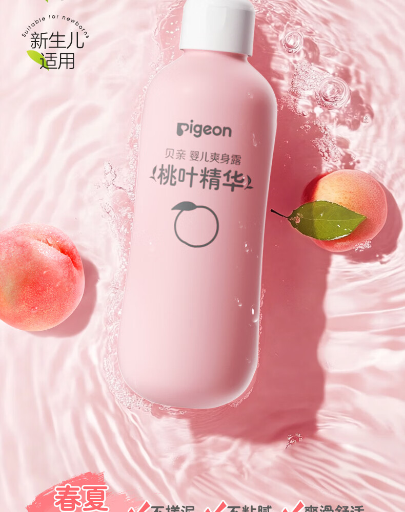 贝亲桃子水 桃叶精华爽身液体精华 儿童液体爽身粉婴儿痱子水 桃子水200ml