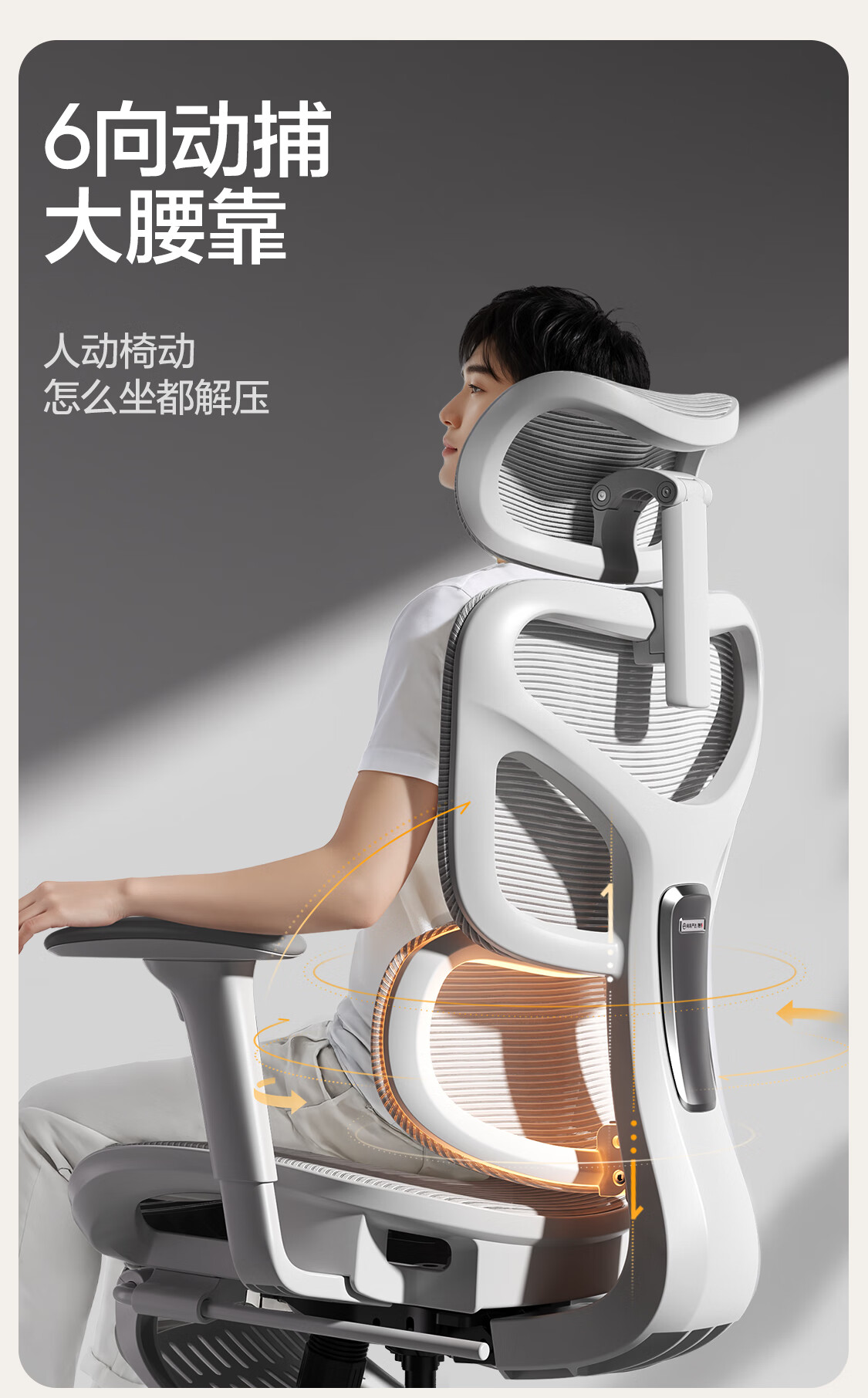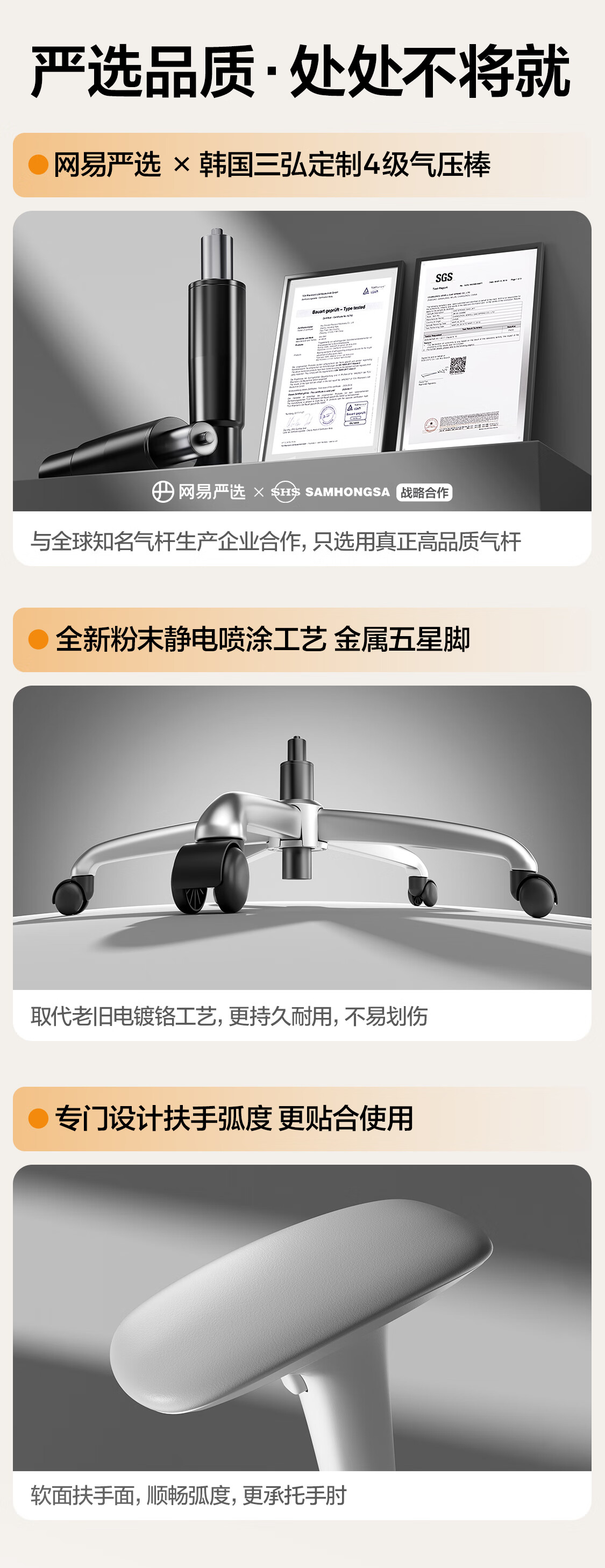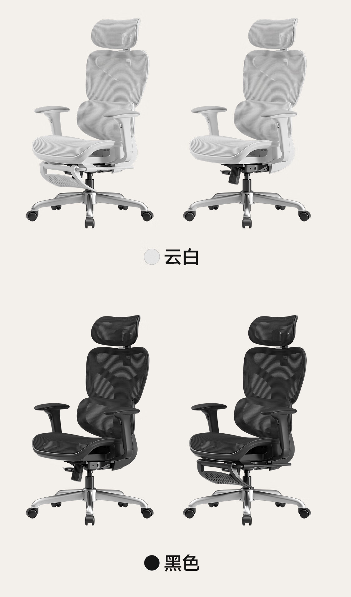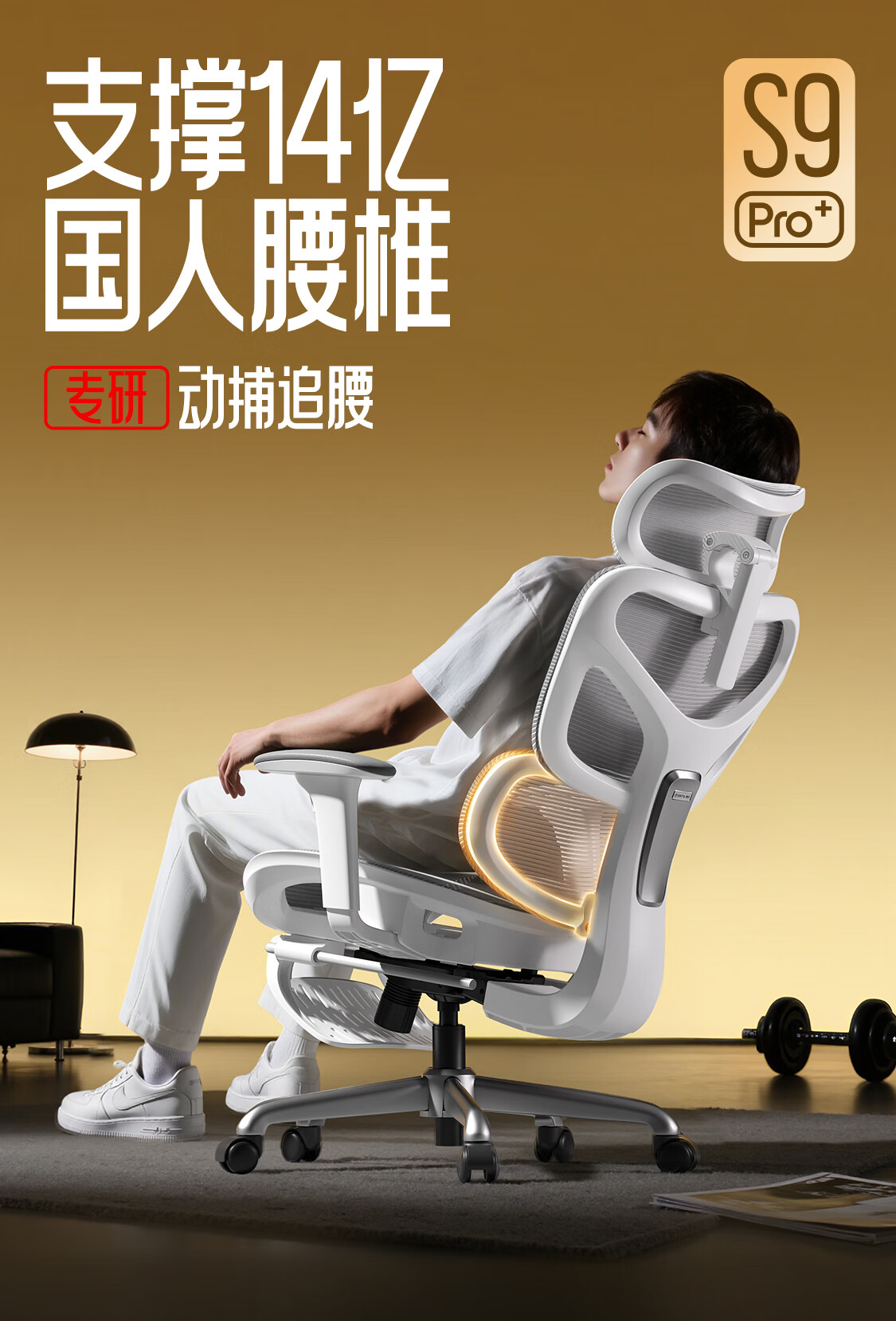 网易严选小蛮腰S9pro+全能款 人体工学电脑椅办公椅电竞老板会议学习椅 云白 有搁脚 动捕腰靠 +360扶手 有脚托