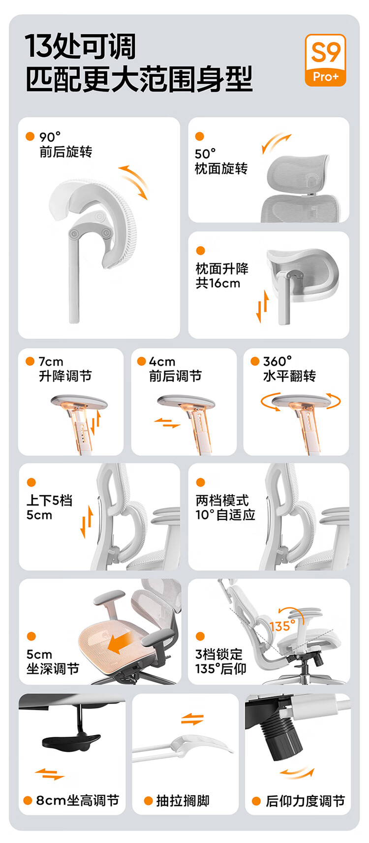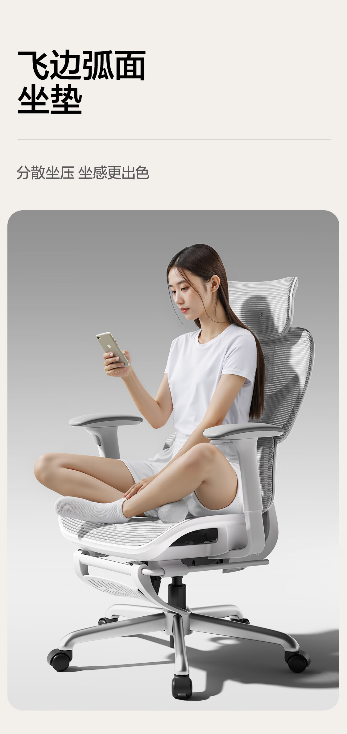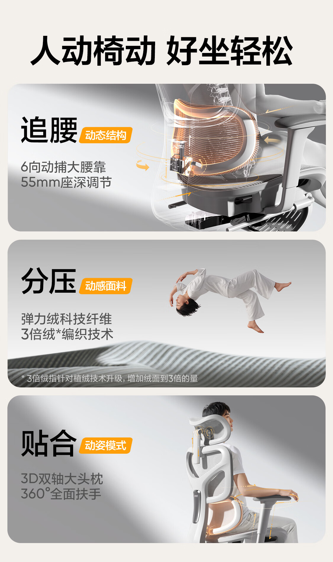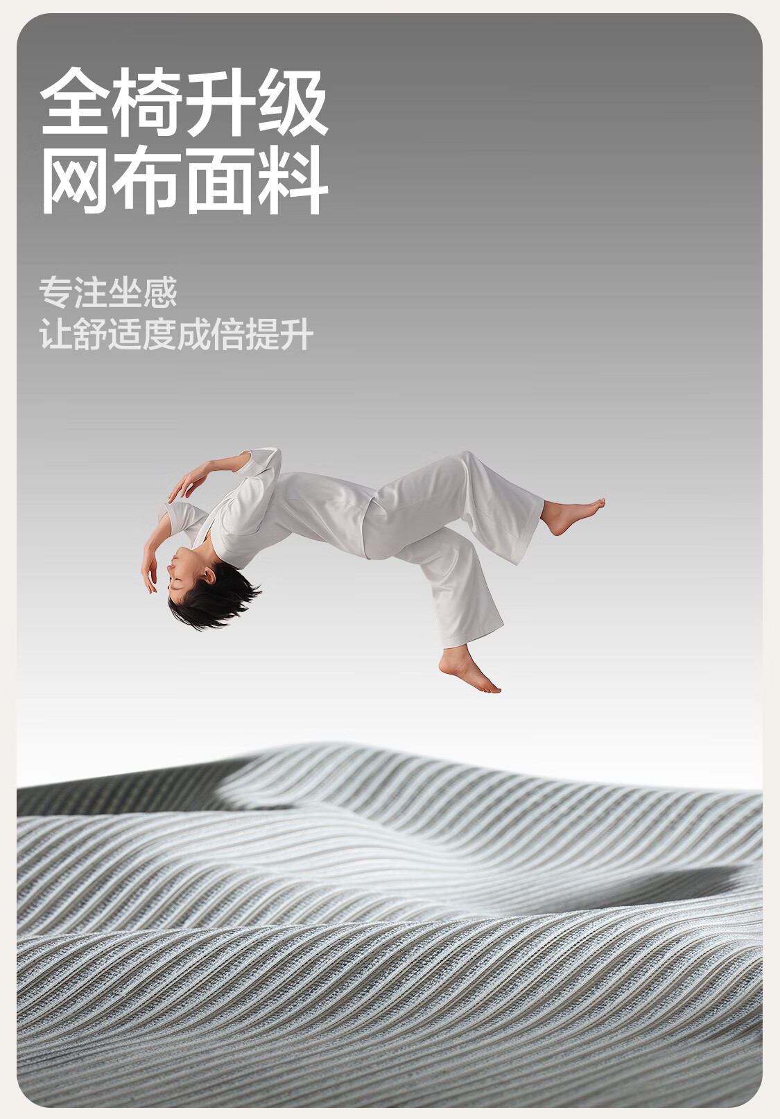 网易严选小蛮腰S9pro+全能款 人体工学电脑椅办公椅电竞老板会议学习椅 云白 有搁脚 动捕腰靠 +360扶手 有脚托