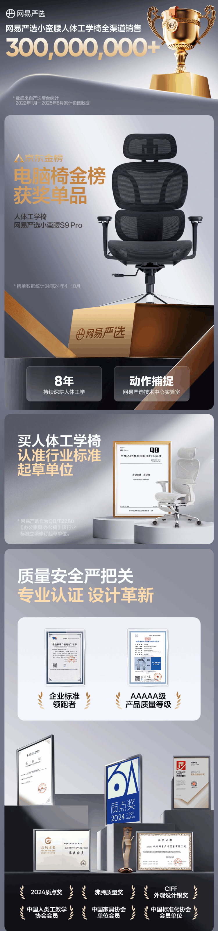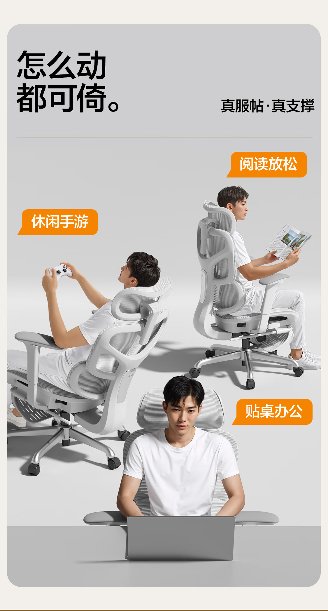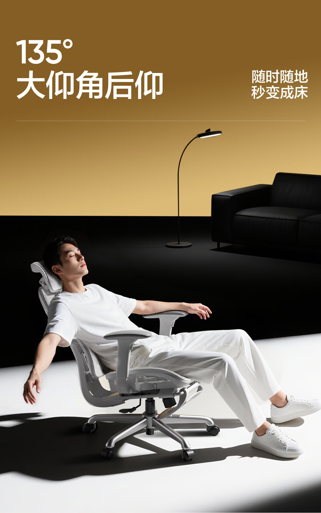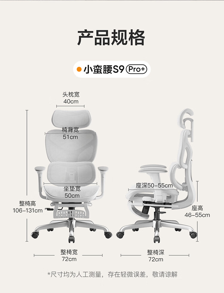 网易严选小蛮腰S9pro+全能款 人体工学电脑椅办公椅电竞老板会议学习椅 云白 有搁脚 动捕腰靠 +360扶手 有脚托