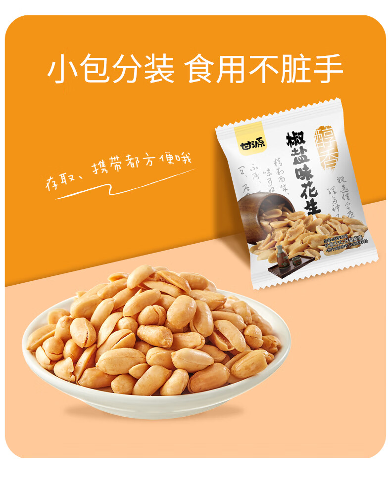 甘源牌椒盐味花生下酒菜花生米坚果炒货特色小吃解馋休闲零食酒友圈500g