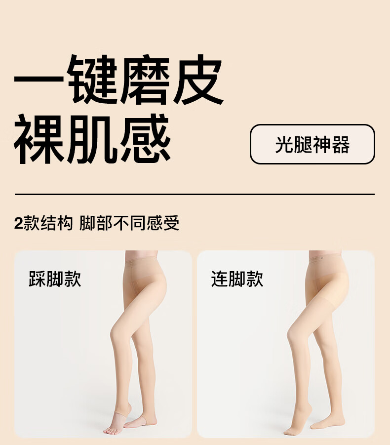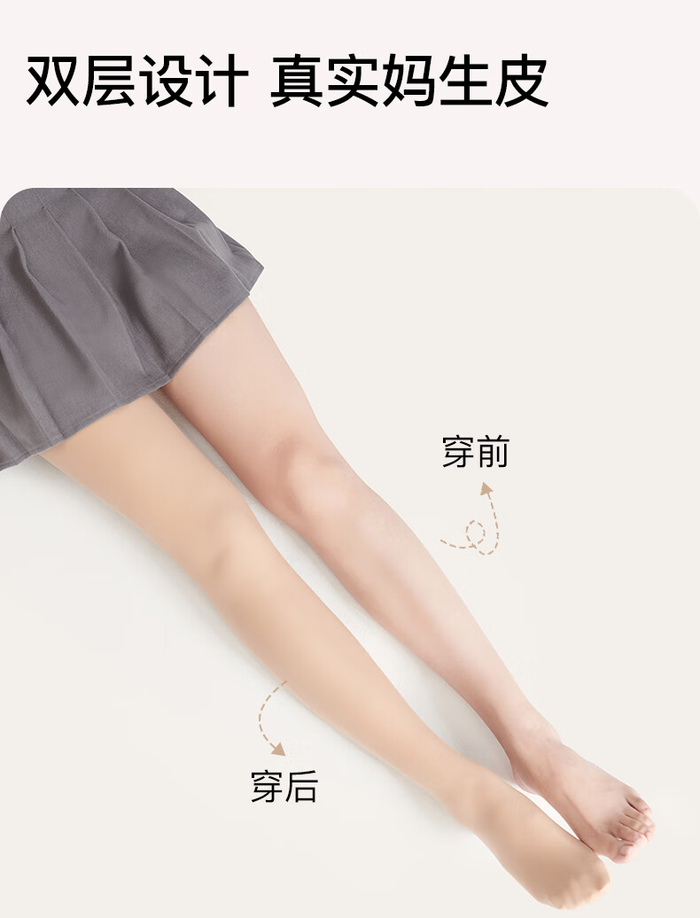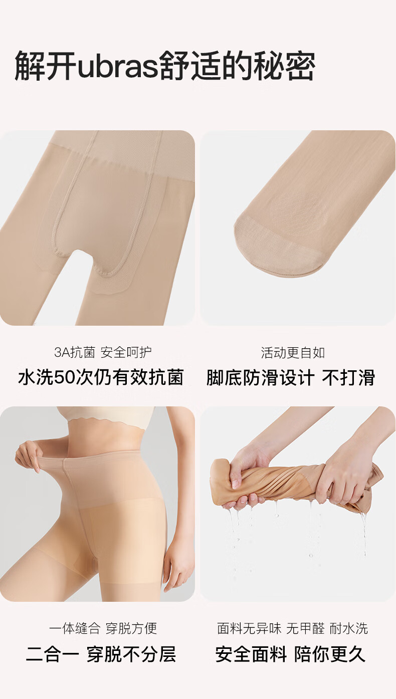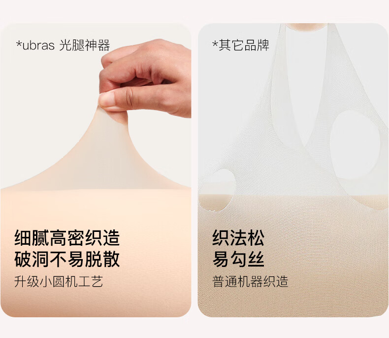 ubras虞书欣同款光腿神器防勾丝美肤袜打底裤袜丝袜500D踩脚款-自然肤L