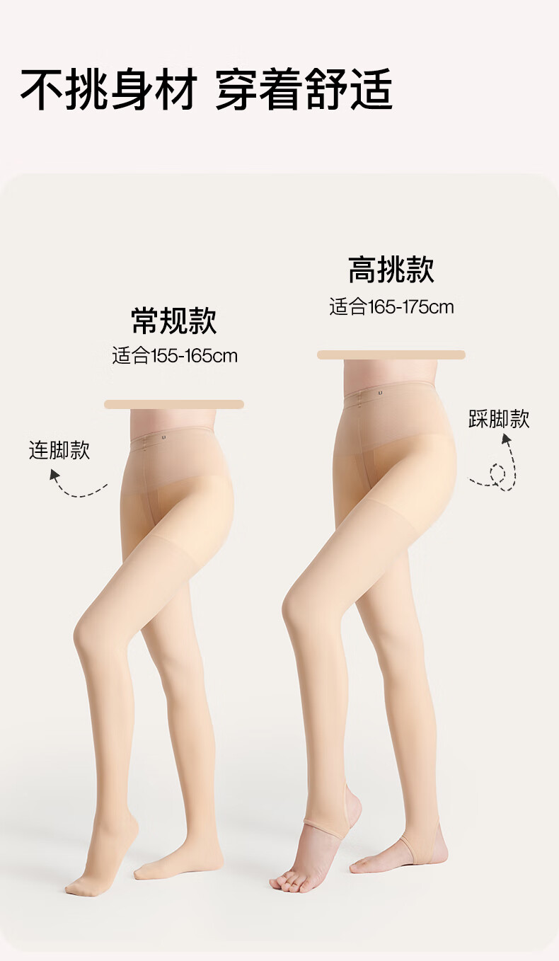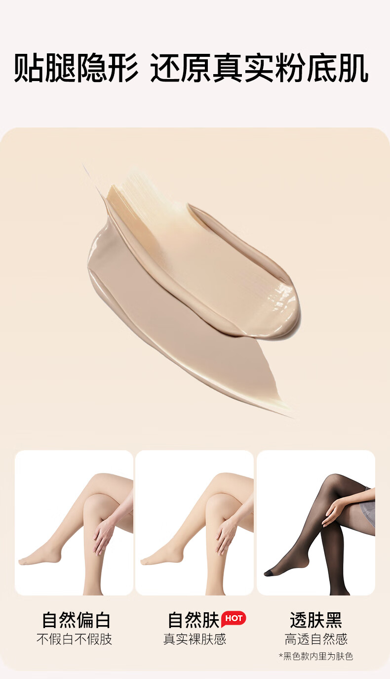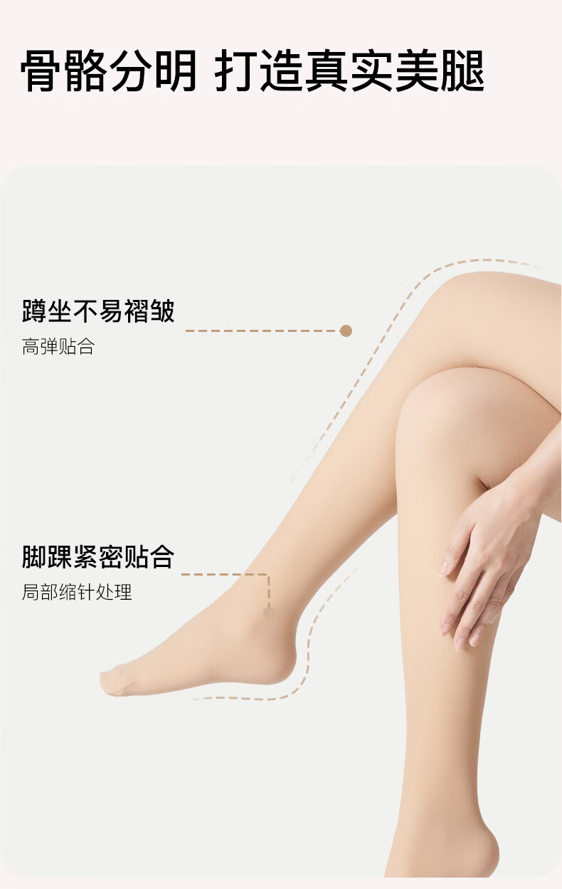 ubras虞书欣同款光腿神器防勾丝美肤袜打底裤袜丝袜500D踩脚款-自然肤L