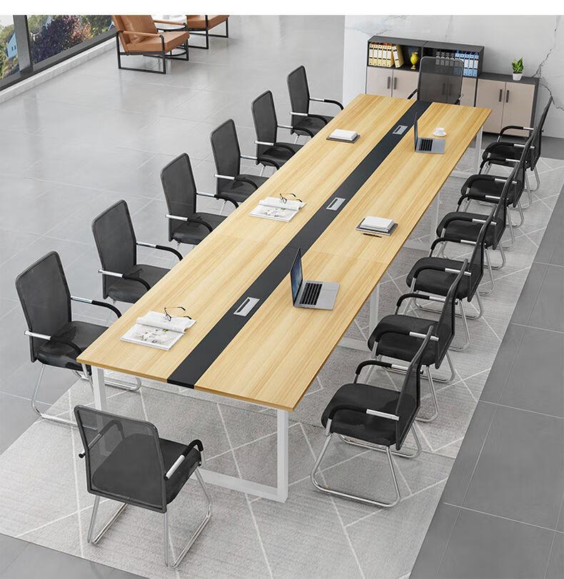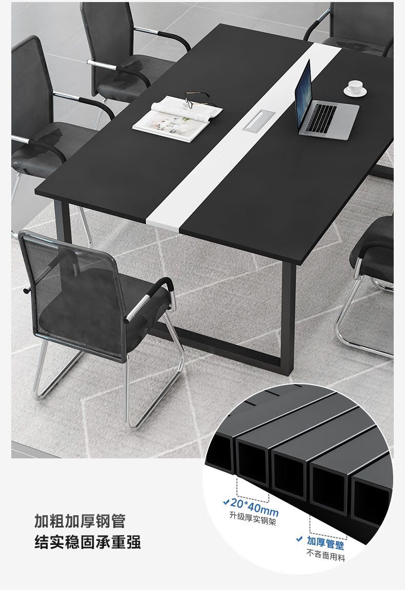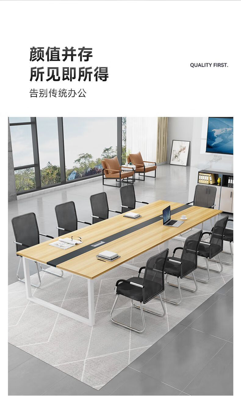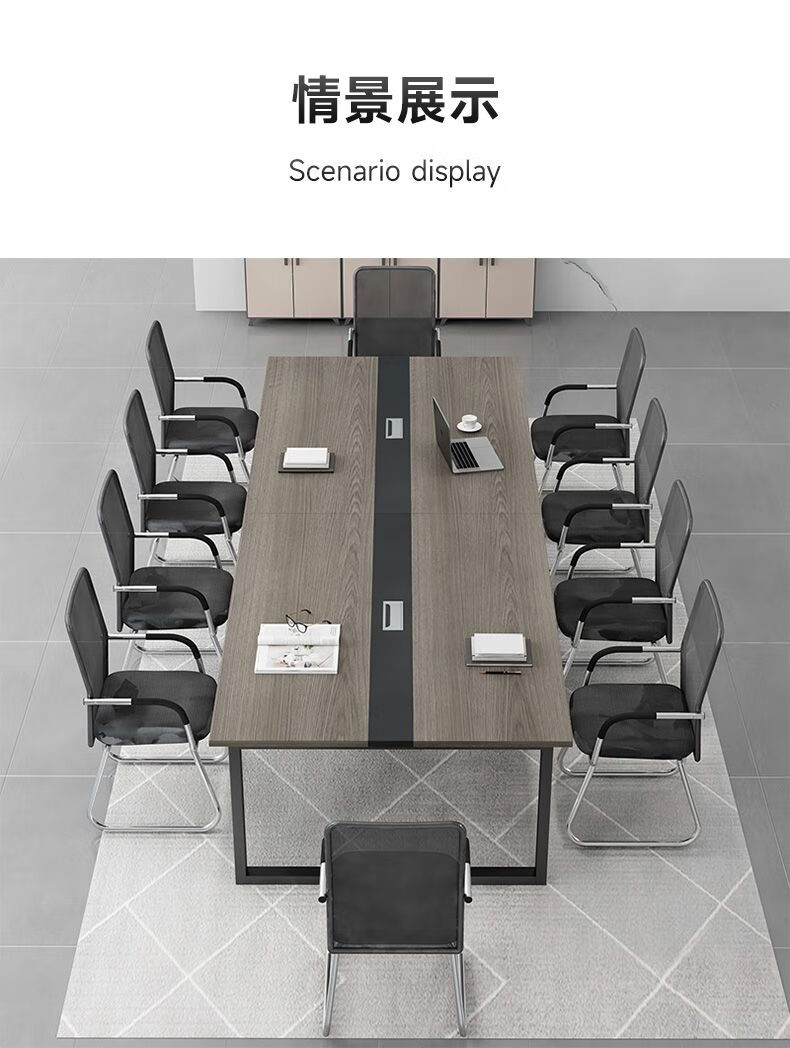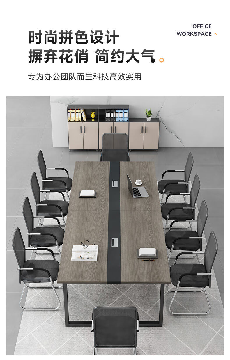 倘然之家会议桌长桌简约现代办公桌椅组合会议室长条桌子工作台培训员工位 【黑架灰橡木】 长240宽100高75CM 亏本促销