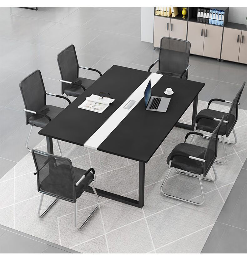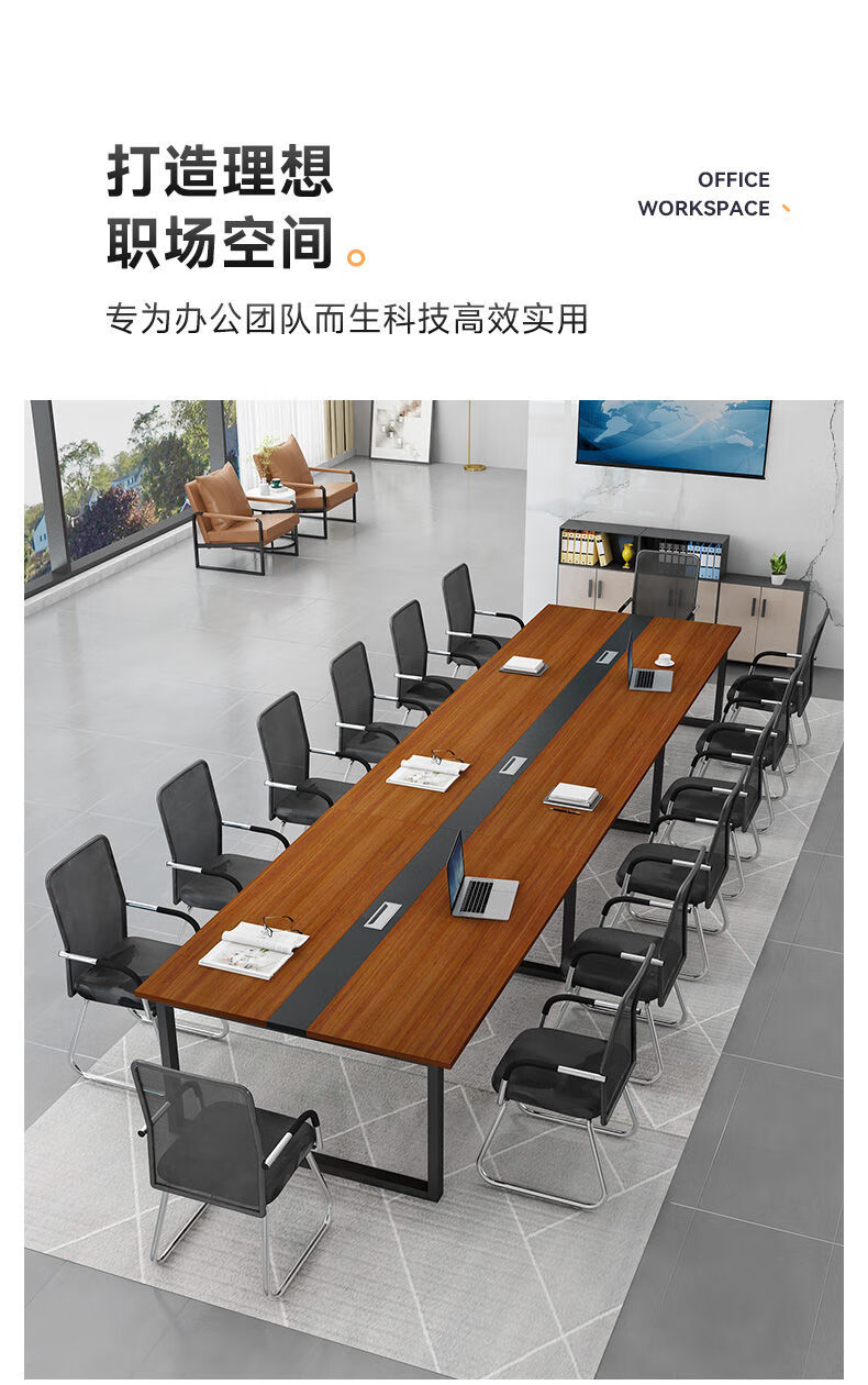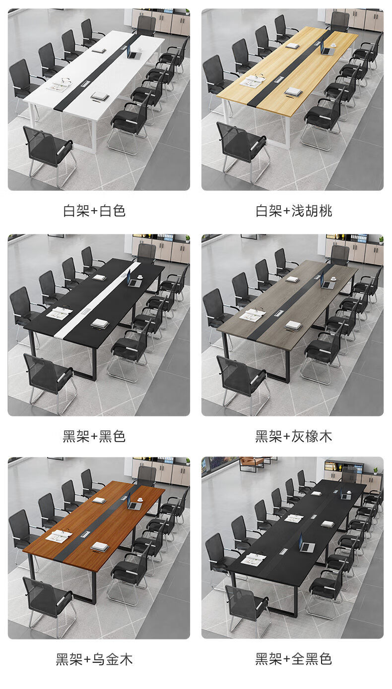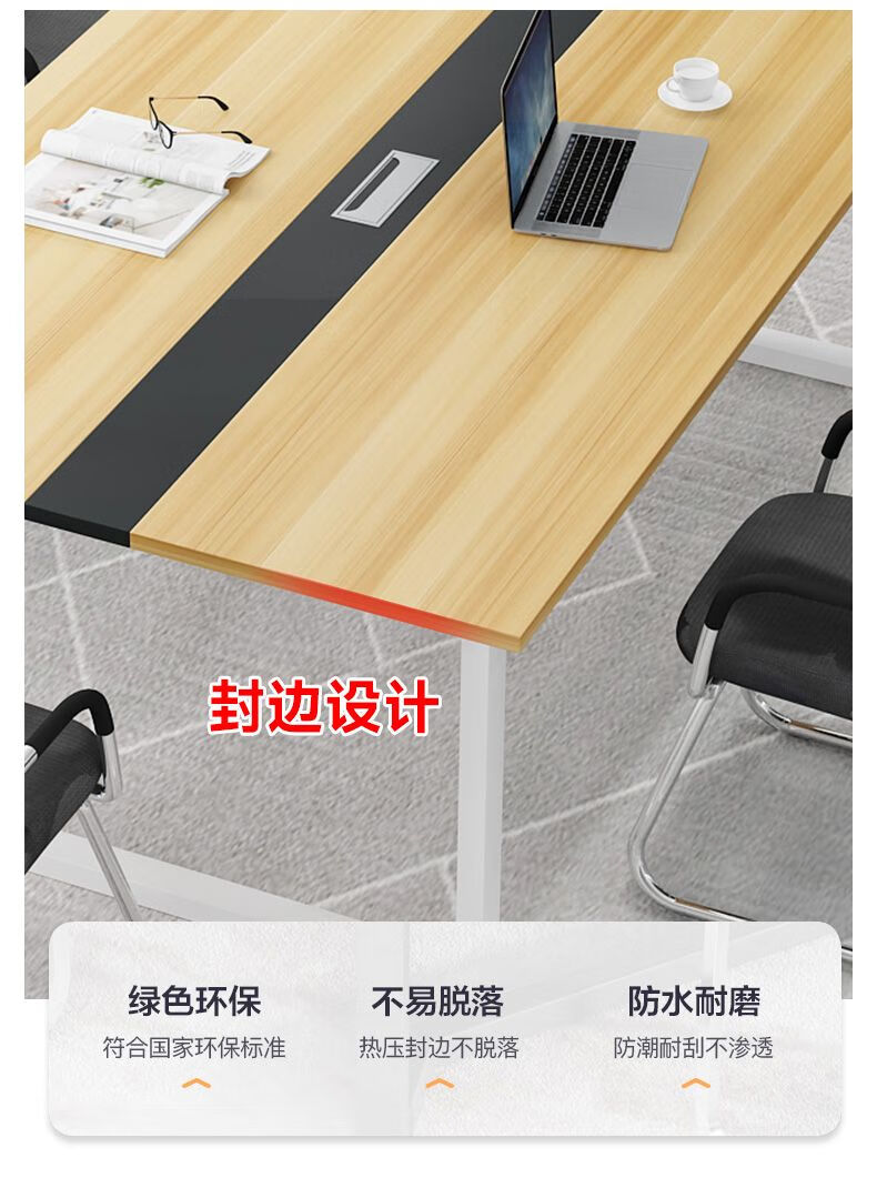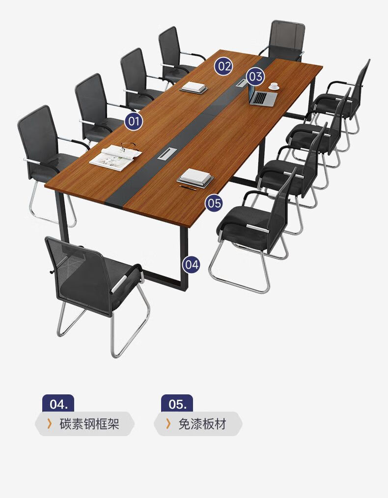 倘然之家会议桌长桌简约现代办公桌椅组合会议室长条桌子工作台培训员工位 【黑架灰橡木】 长240宽100高75CM 亏本促销