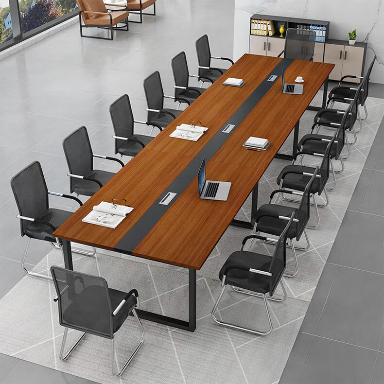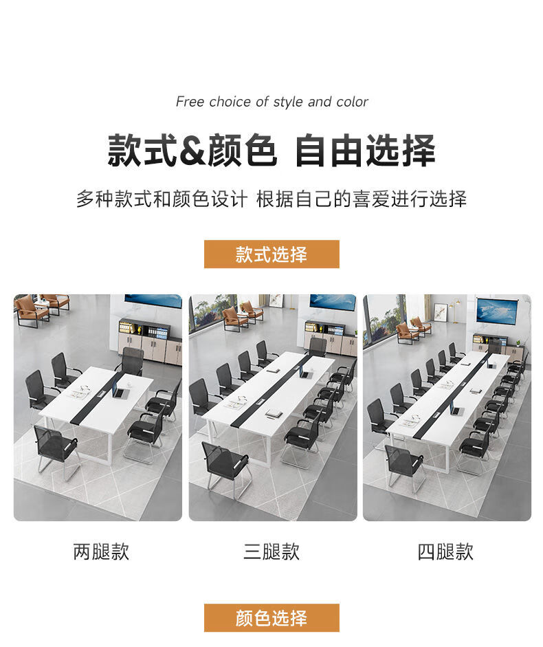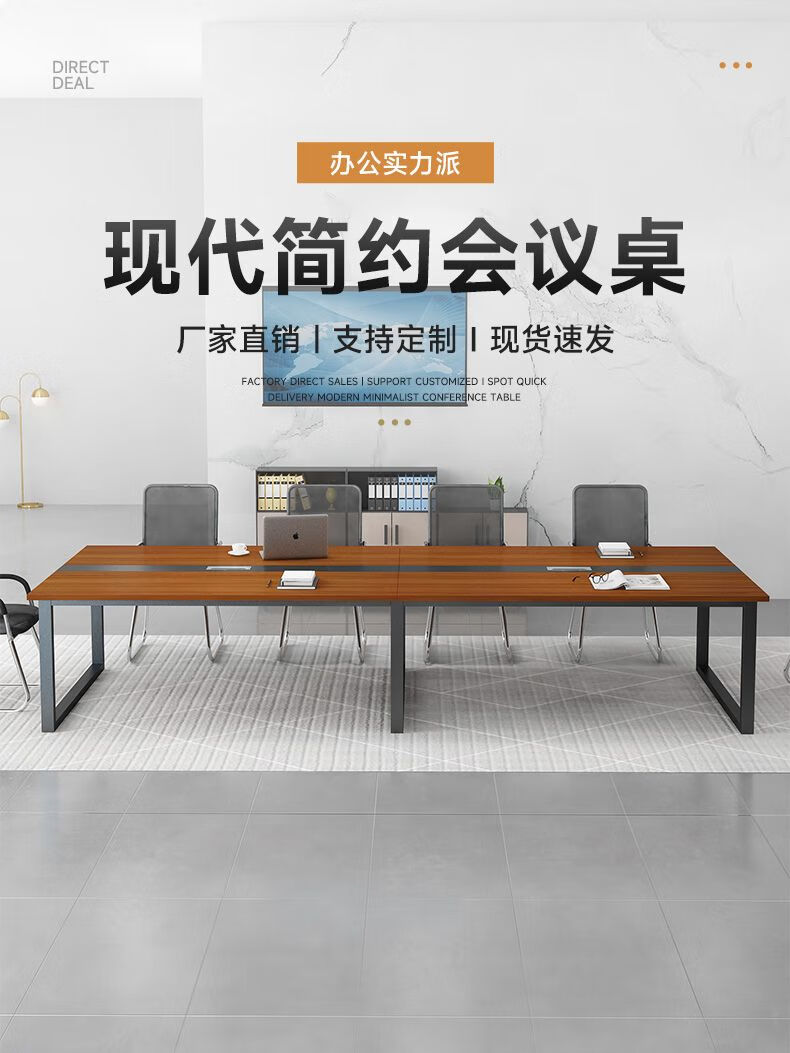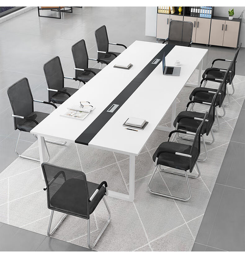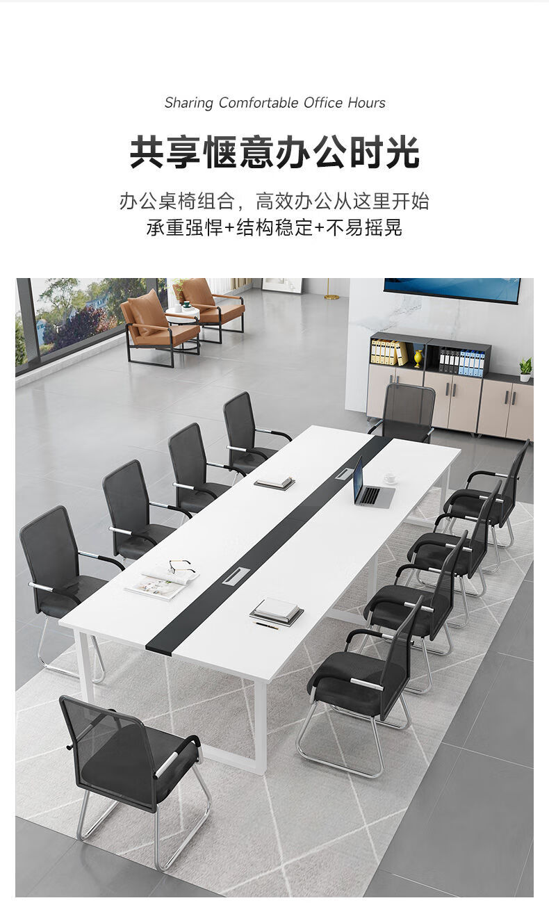 倘然之家会议桌长桌简约现代办公桌椅组合会议室长条桌子工作台培训员工位 【黑架灰橡木】 长240宽100高75CM 亏本促销