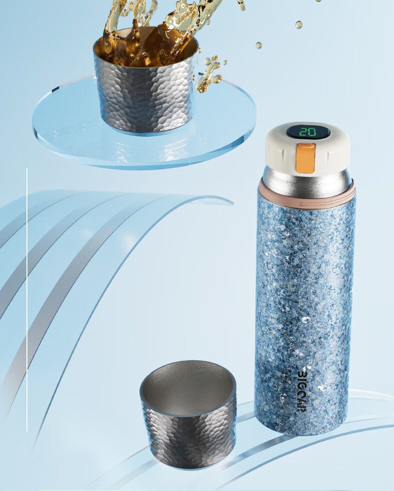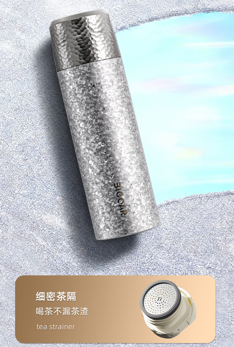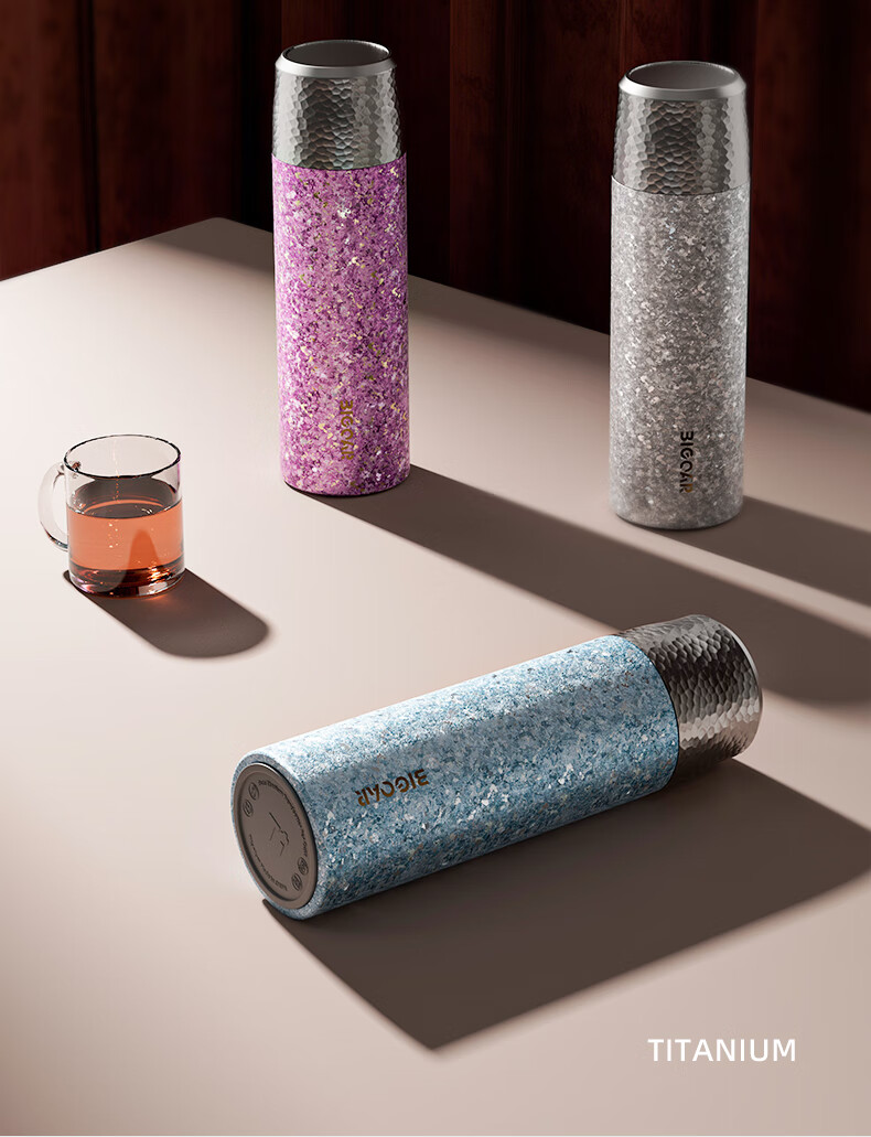 大卡纯钛保温杯男女士抗菌茶水分离杯商务泡茶杯水杯生日礼盒伴手礼 冰晶蓝-内外纯钛-礼盒-600ml