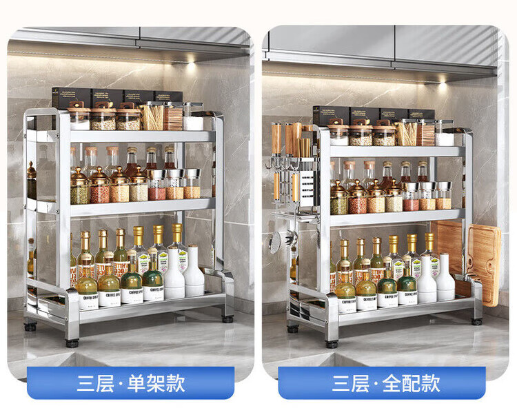 简漾304不锈钢厨房调料置物架台面调味品收纳架家用多功能多层储物架 特厚304不锈钢材质 2层长33cm丨单主架