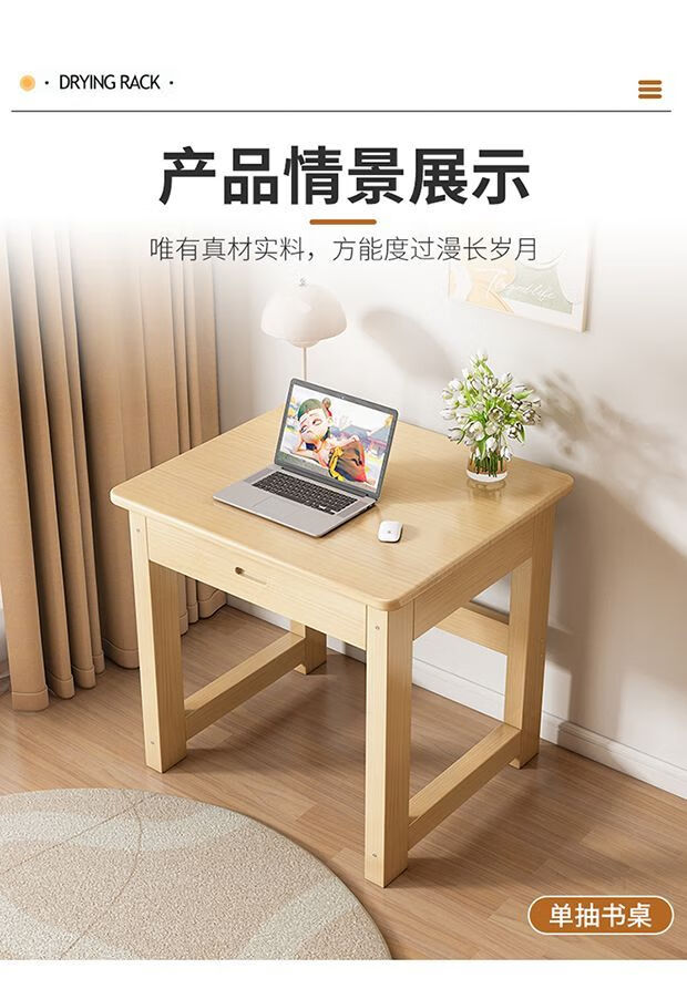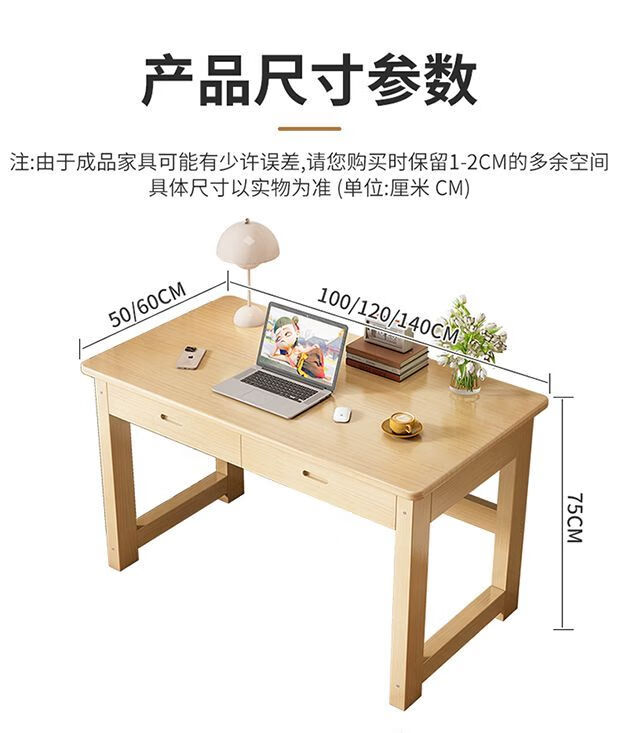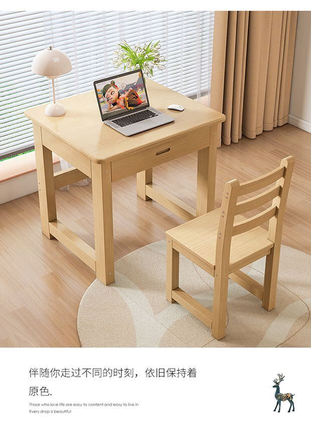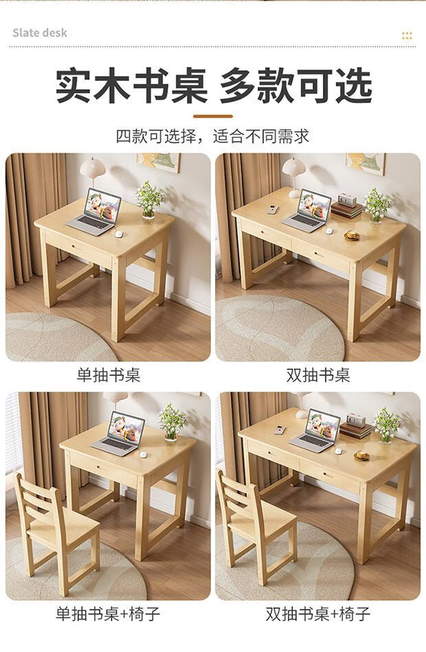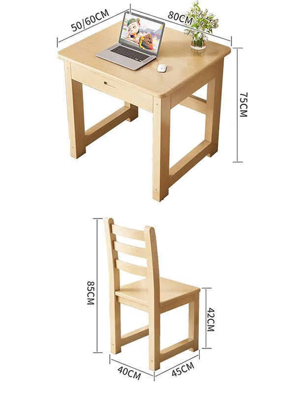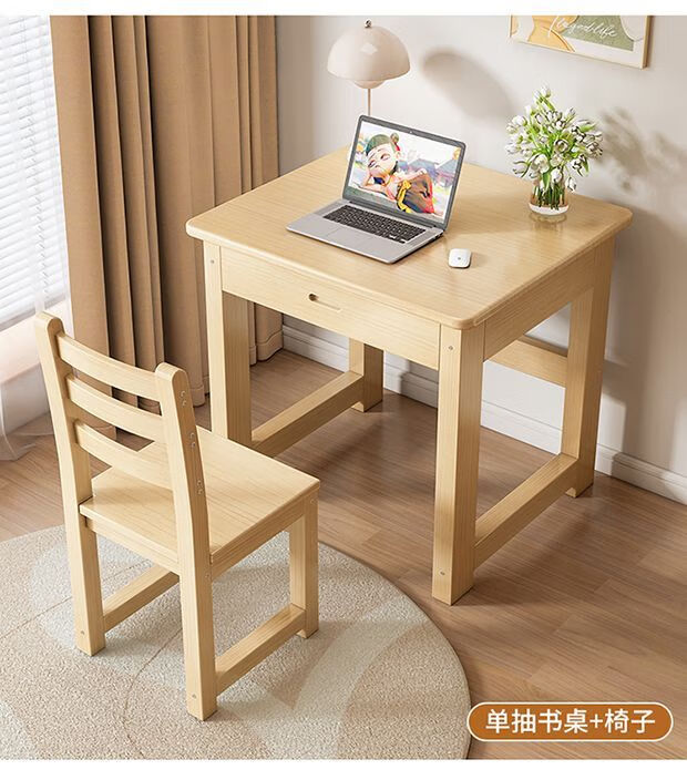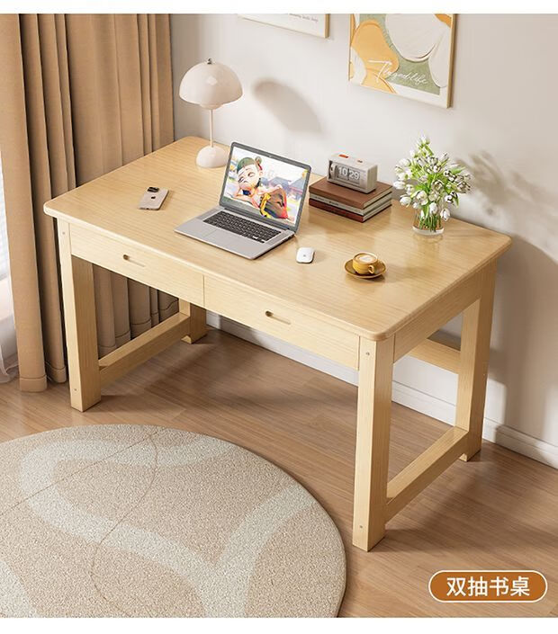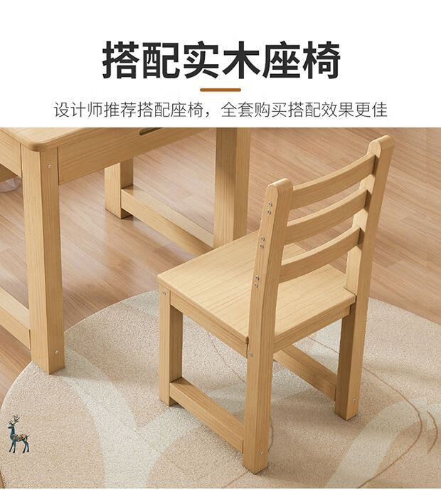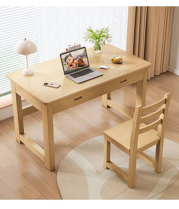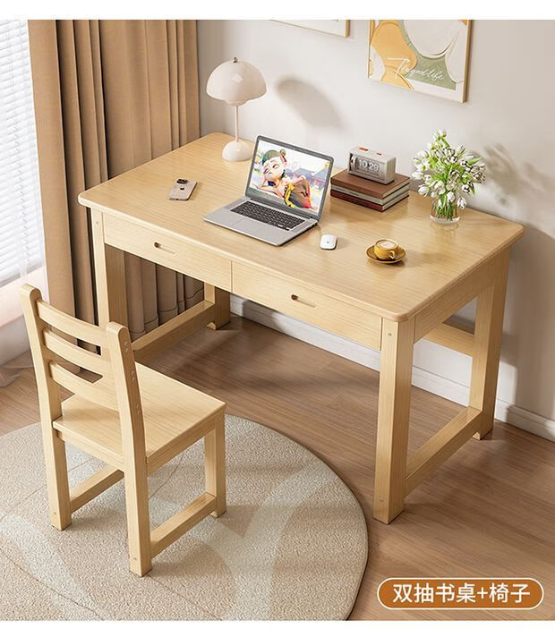 弘星隆儿童学习桌家用全实木写字桌小户型卧室电脑桌小学生课桌椅带抽屉 实木无漆丨【送货入户+全实木】(桌+椅) 长120 宽50 高75cm丨(两抽)
