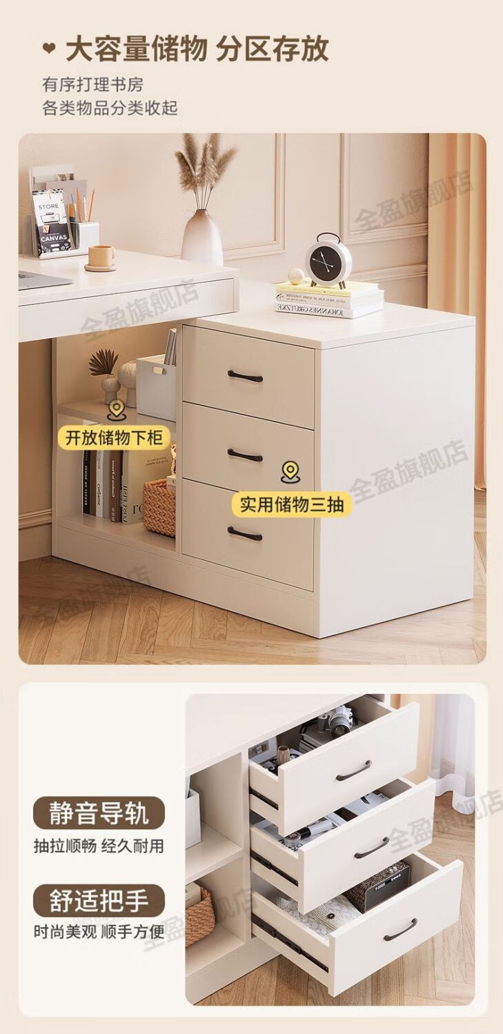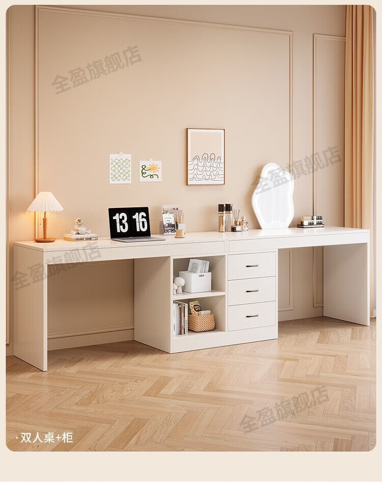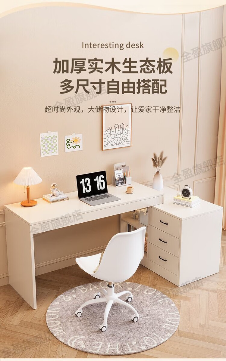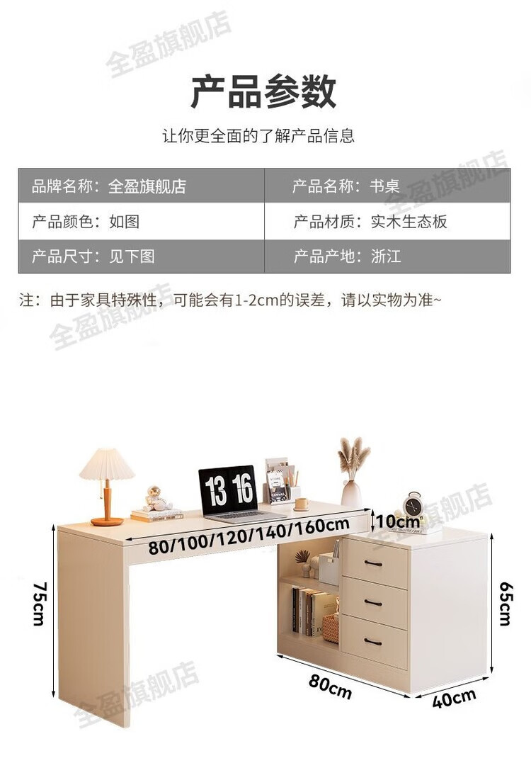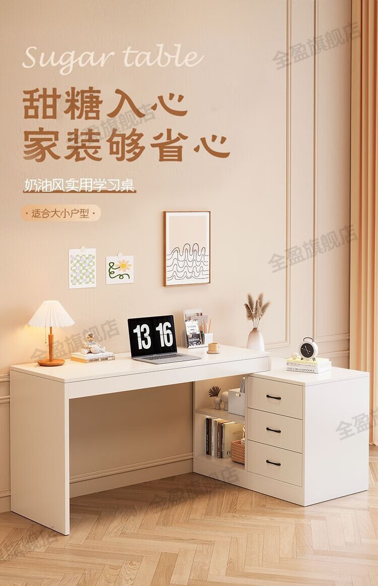 弘星隆实木书桌儿童学习桌写字桌电脑桌台式桌家用伸缩办公桌奶油风桌子 实木生态板【自行安装】 【80单桌+80副柜】-单桌面