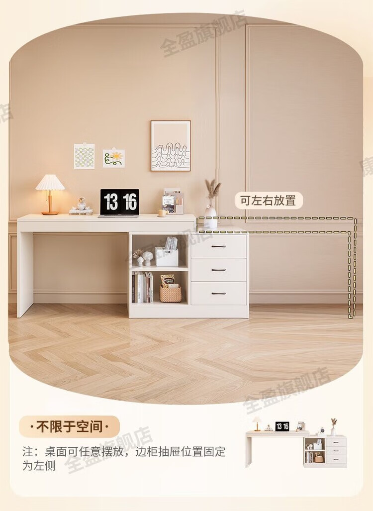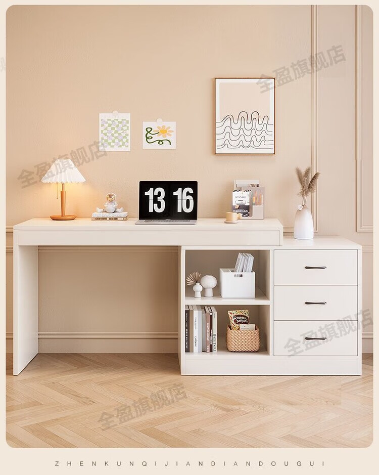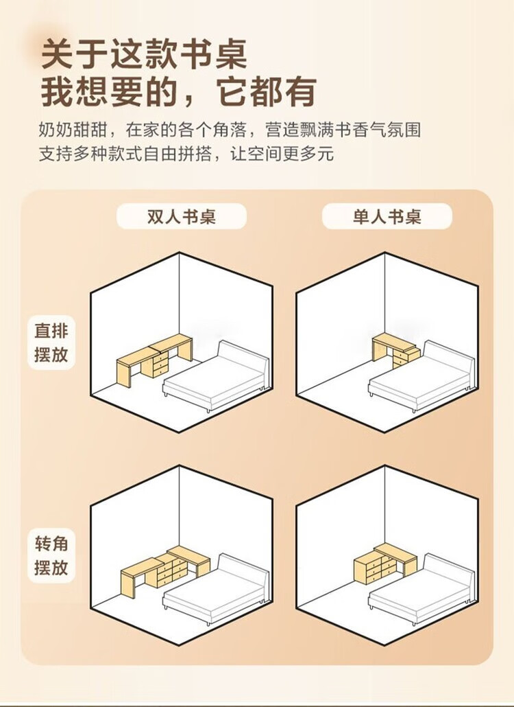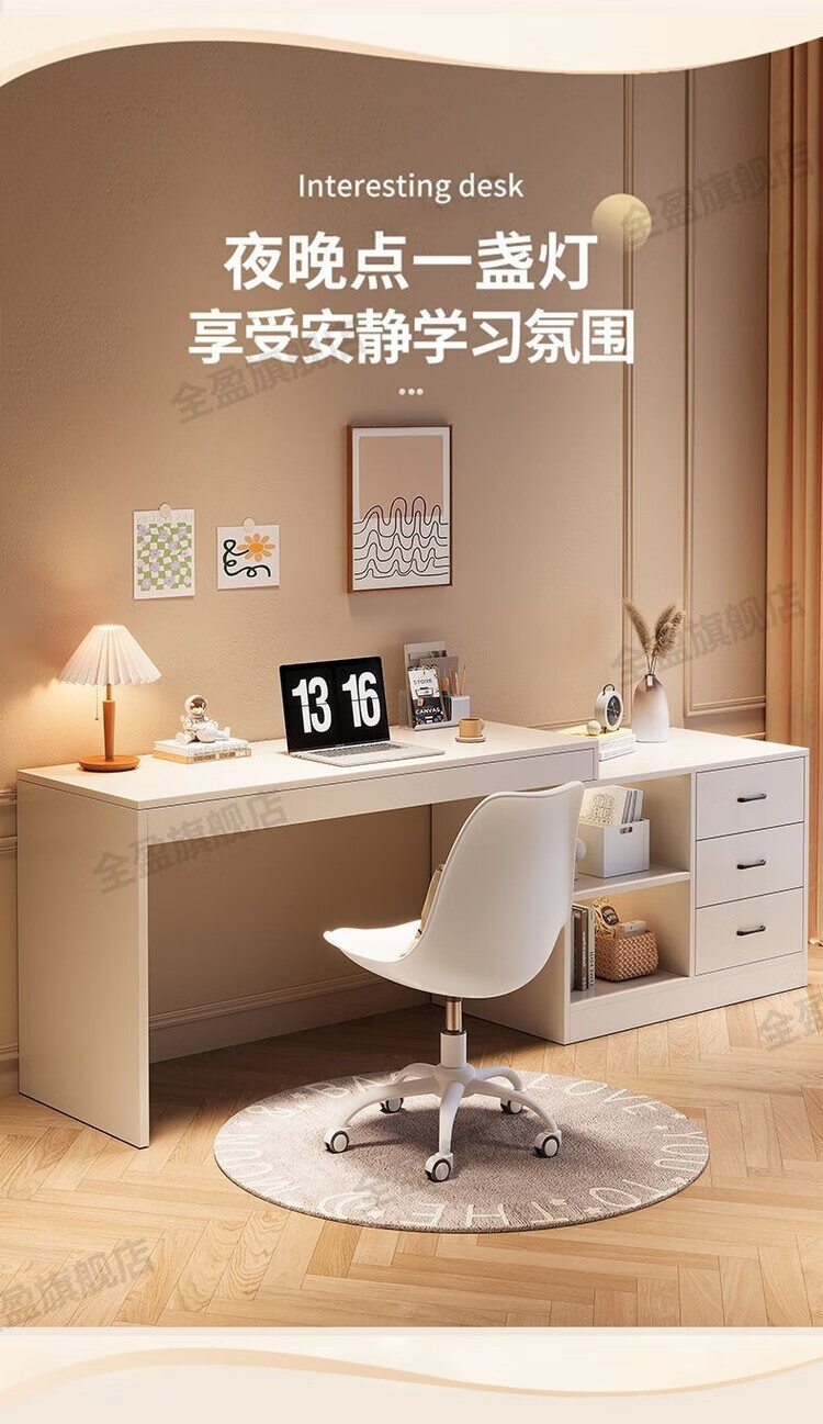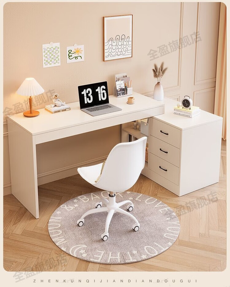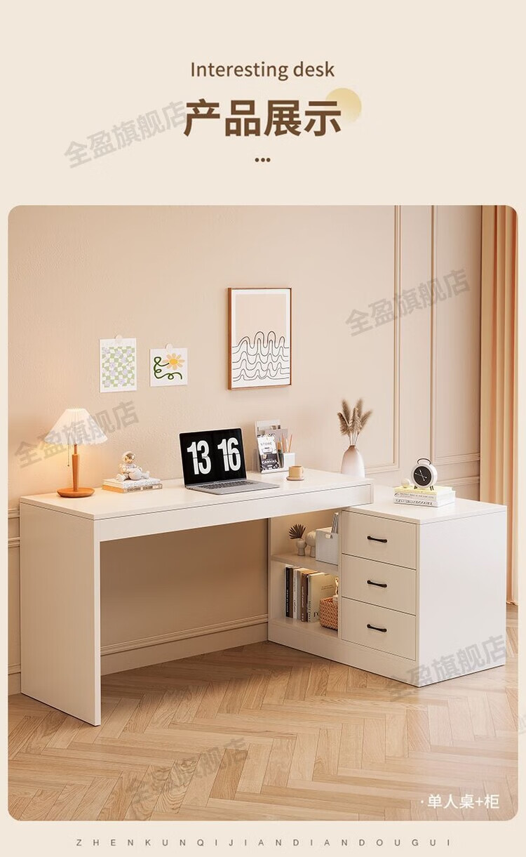 弘星隆实木书桌儿童学习桌写字桌电脑桌台式桌家用伸缩办公桌奶油风桌子 实木生态板【自行安装】 【80单桌+80副柜】-单桌面