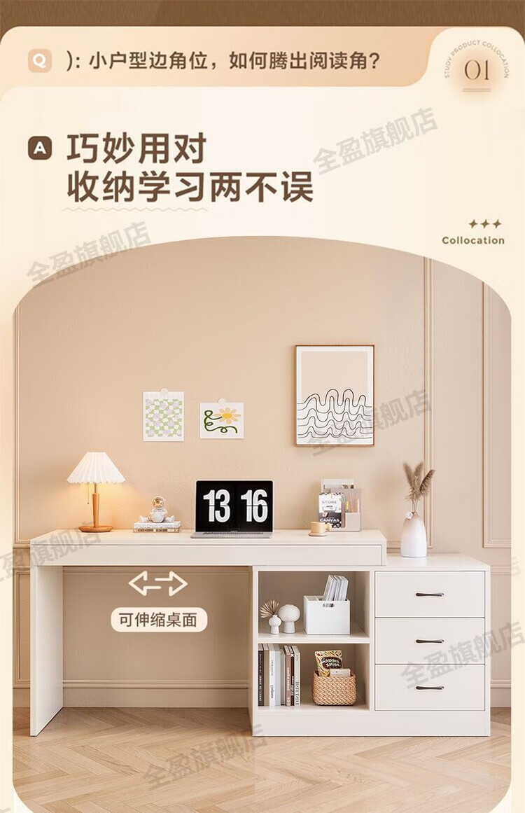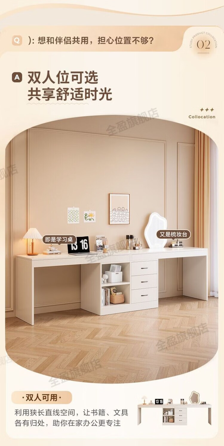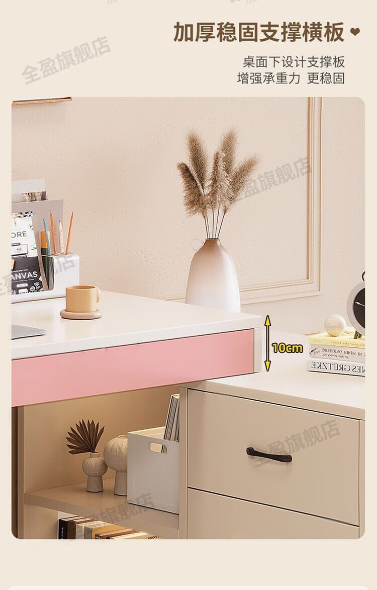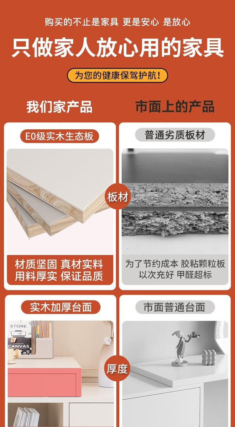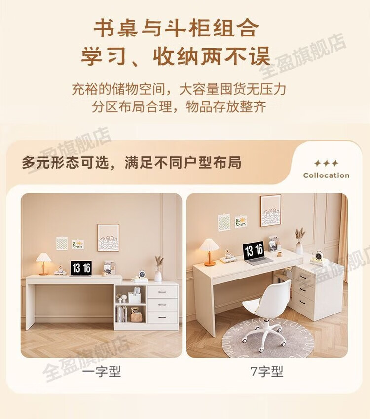 弘星隆实木书桌儿童学习桌写字桌电脑桌台式桌家用伸缩办公桌奶油风桌子 实木生态板【自行安装】 【80单桌+80副柜】-单桌面