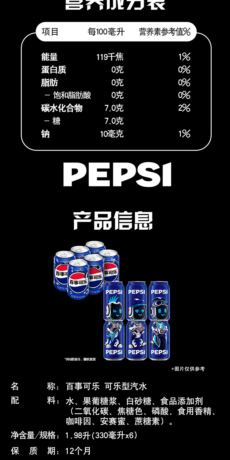 百事可乐 Pepsi 碳酸饮料汽水原味 330ml*6听 整箱装