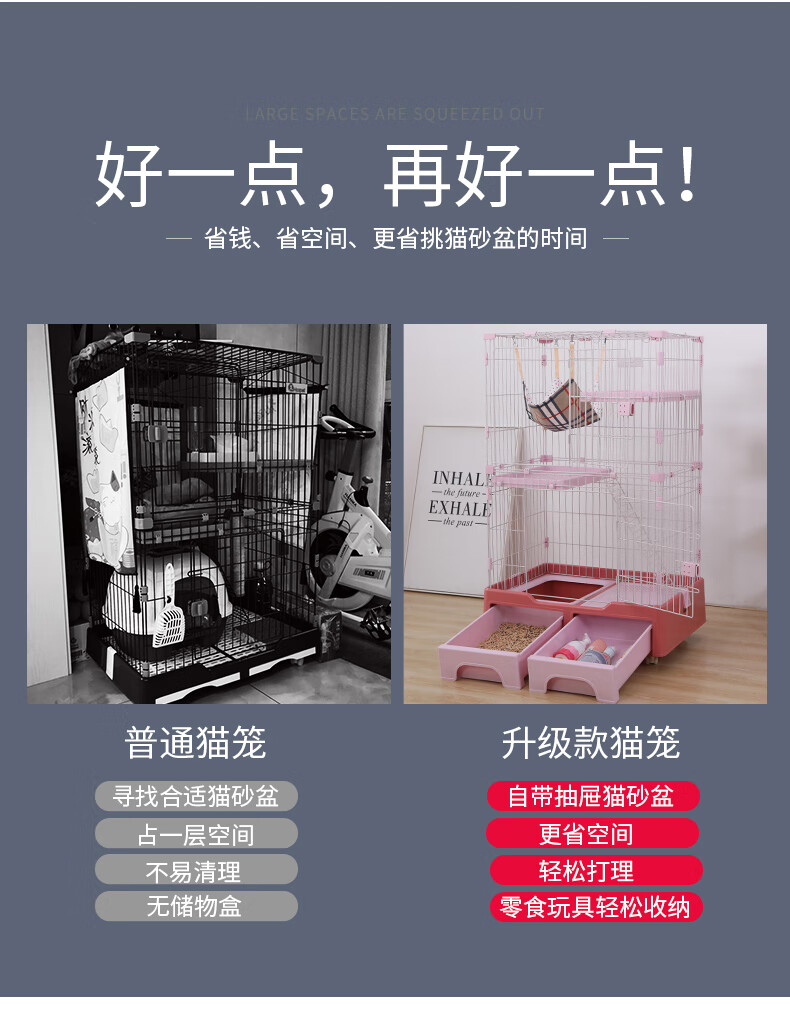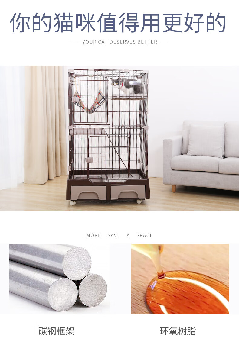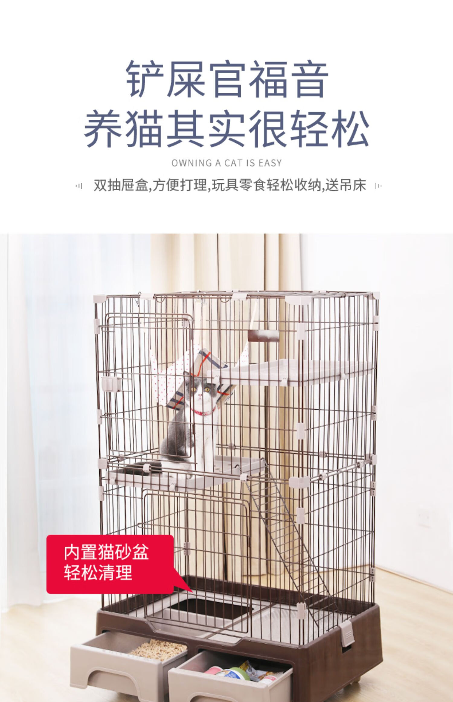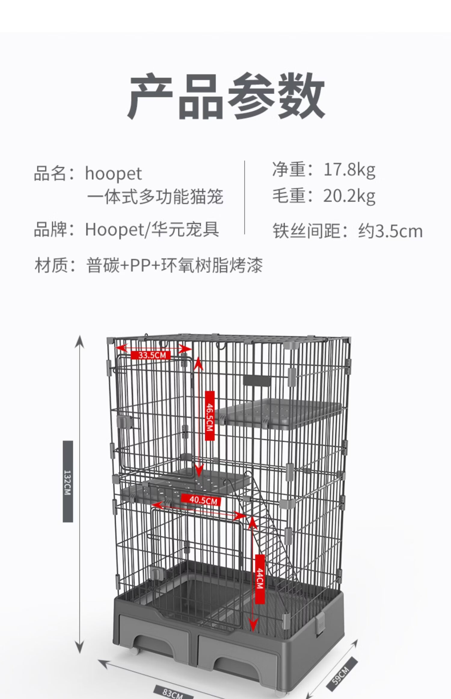 华元宠具(hoopet)猫别墅笼子猫屋超大空间带厕所一体宠物猫咪室内猫窝猫舍【商仓】