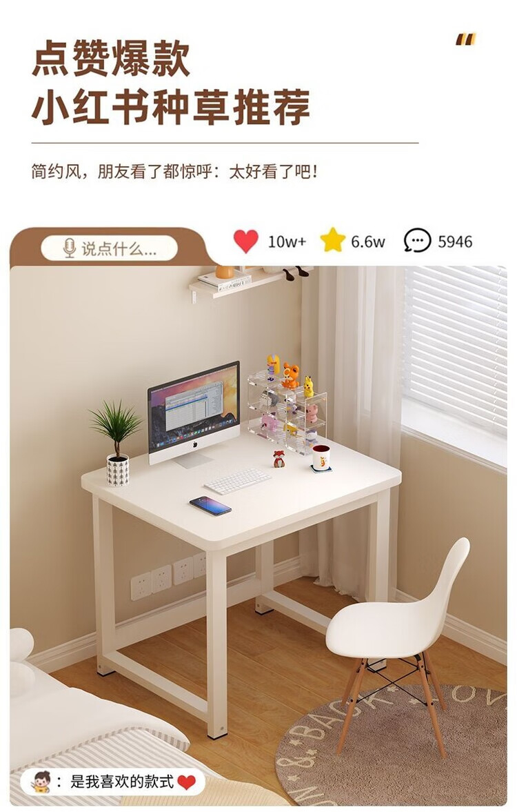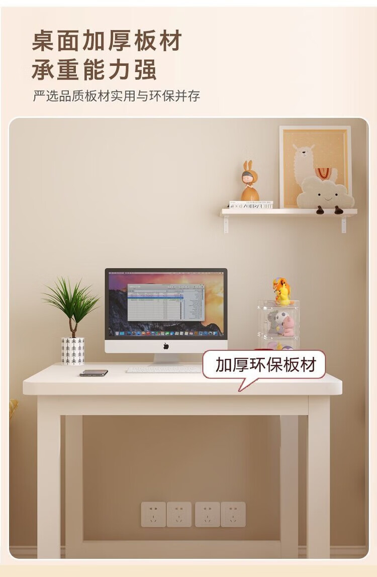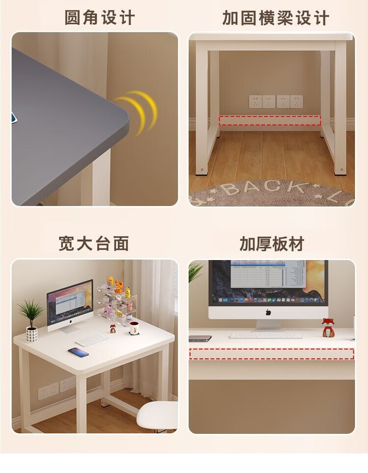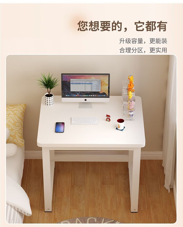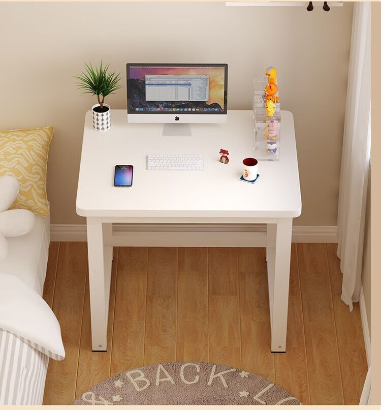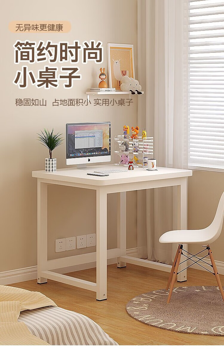 倘然之家方形边几小桌子家用卧室小户型简约电脑桌单人女生简易书桌耐用 白色 50*40*74【加厚桌面】圆角