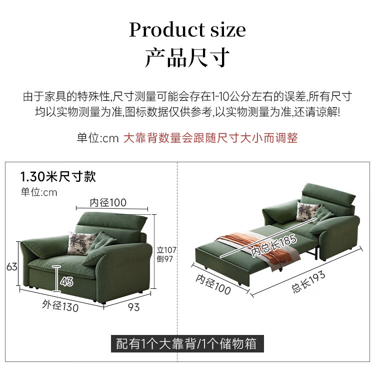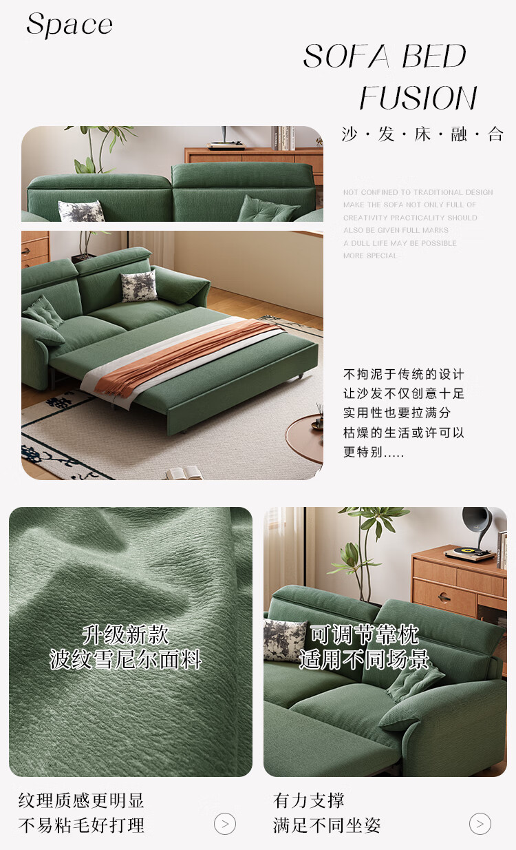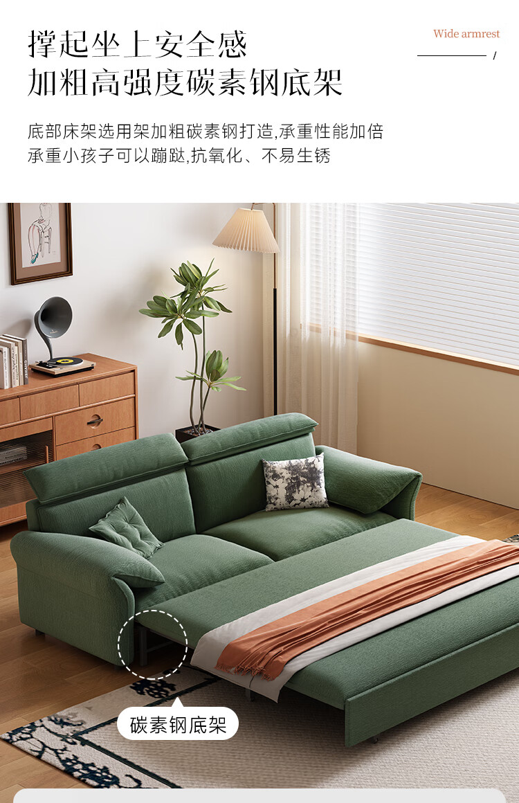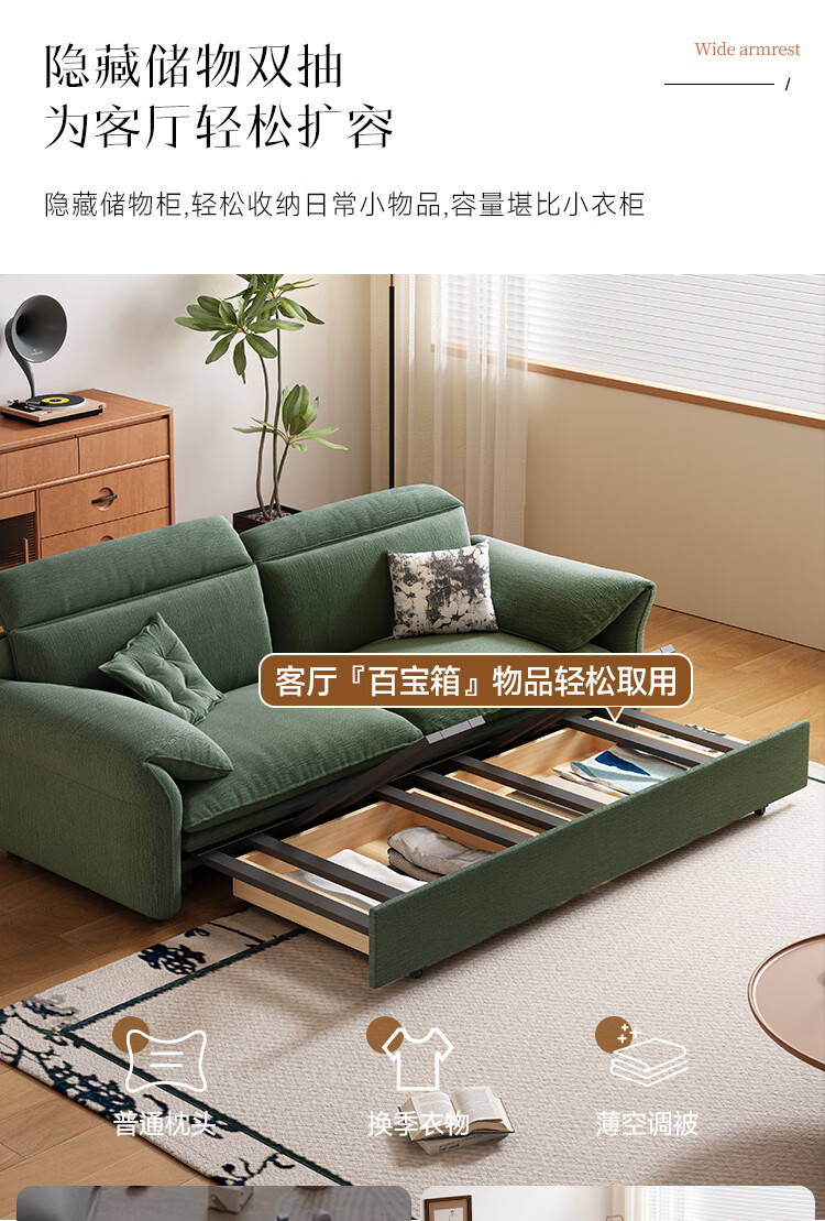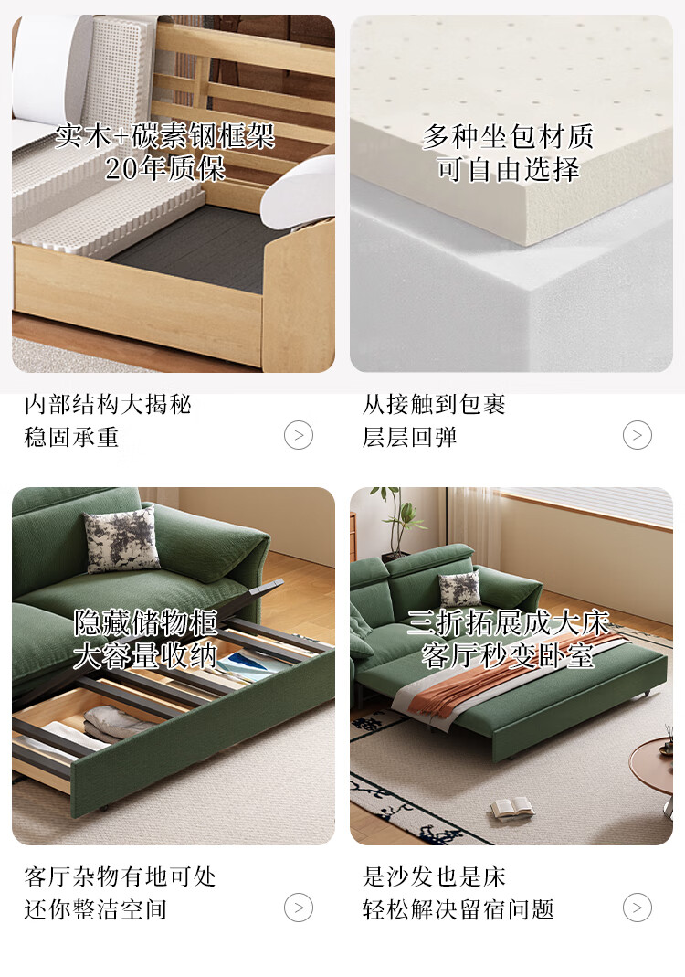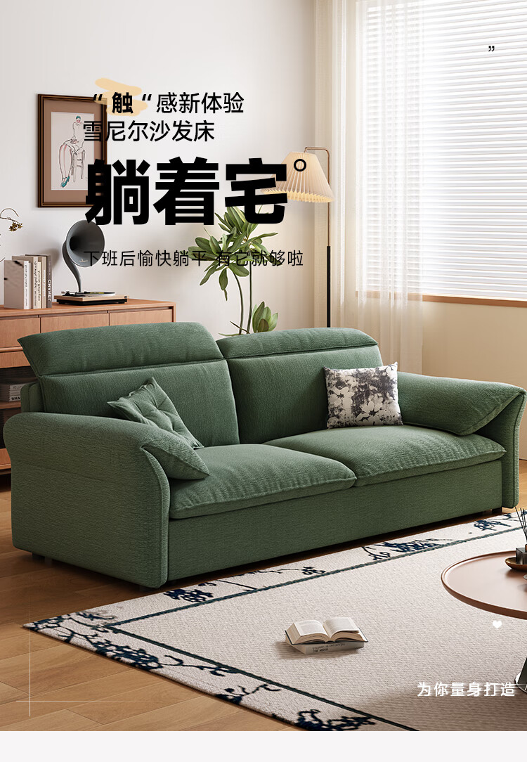 哈森诗丹小户型沙发床一体两用可折叠新款客厅现代简约自产自销雪尼尔沙发 外径:1.3m(无储物)可调节头枕 高弹海绵款(加厚雪尼尔)