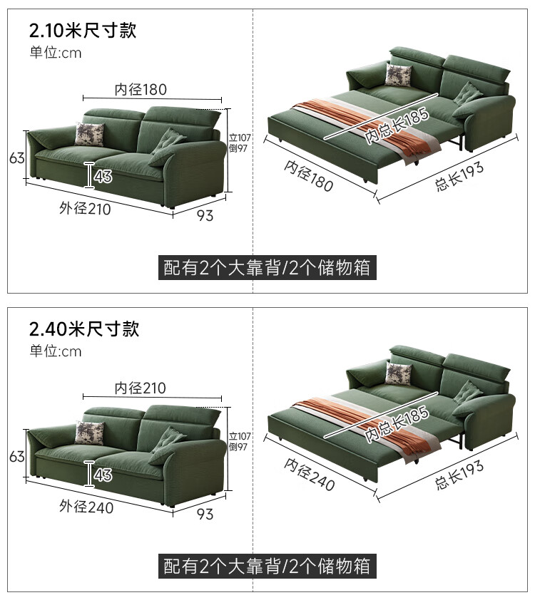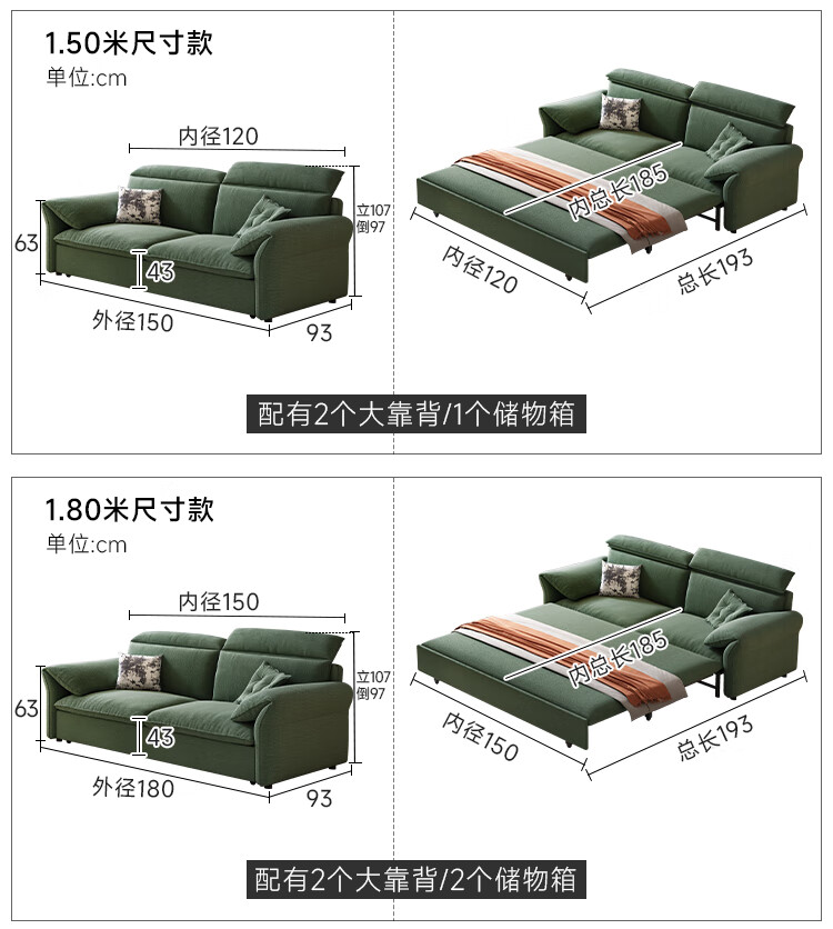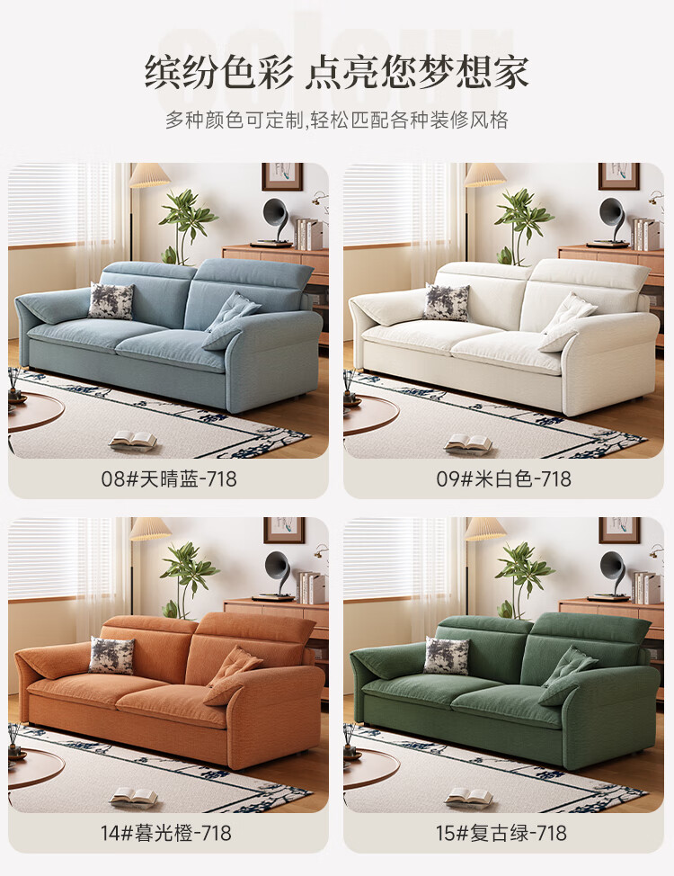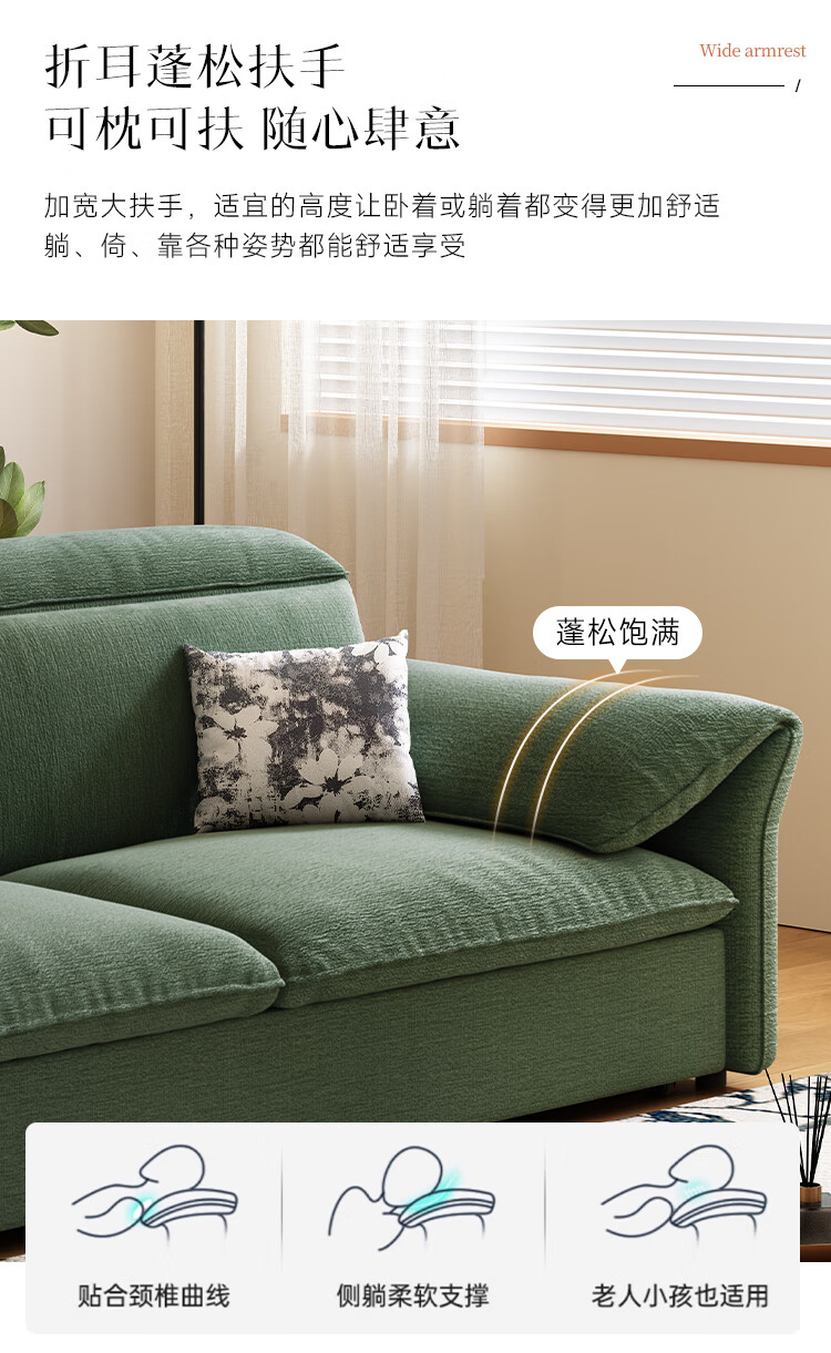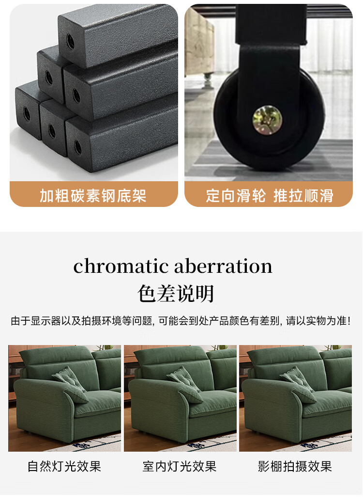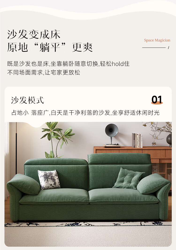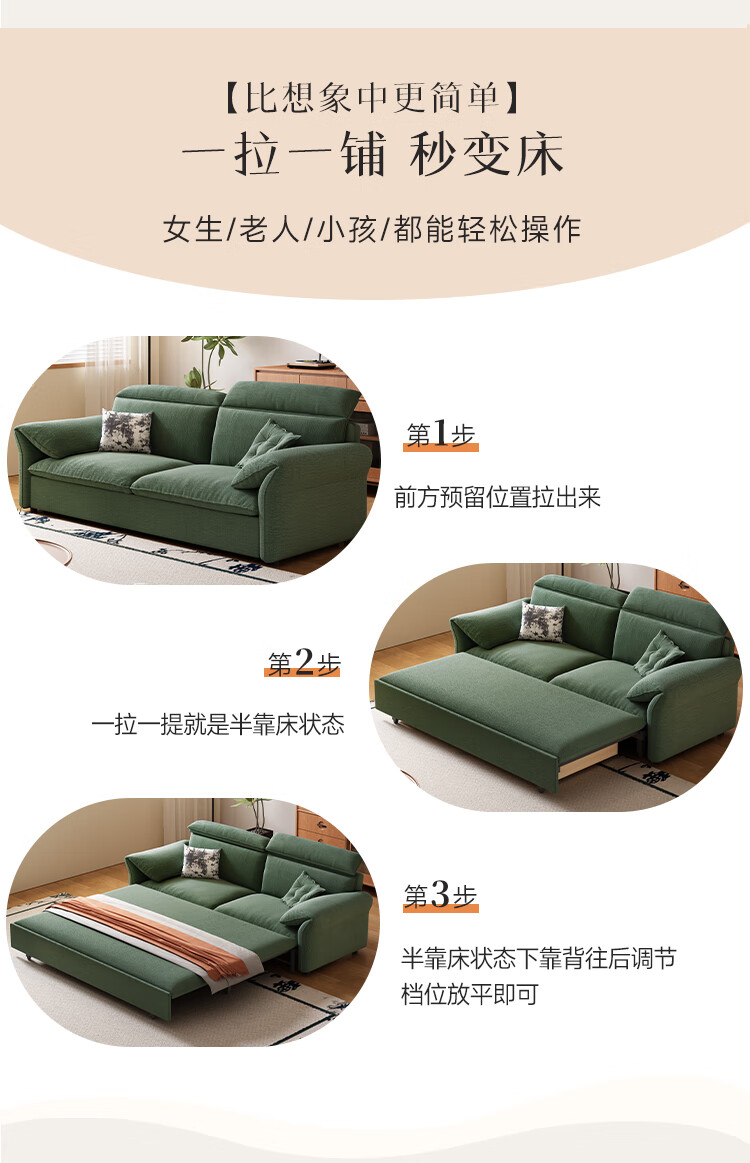 哈森诗丹小户型沙发床一体两用可折叠新款客厅现代简约自产自销雪尼尔沙发 外径:1.3m(无储物)可调节头枕 高弹海绵款(加厚雪尼尔)