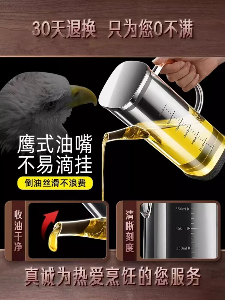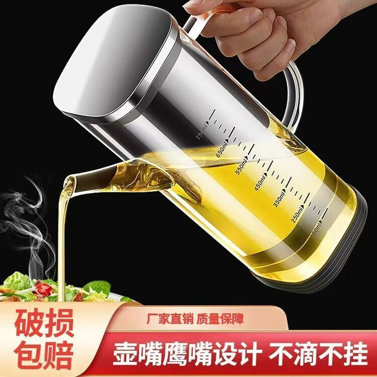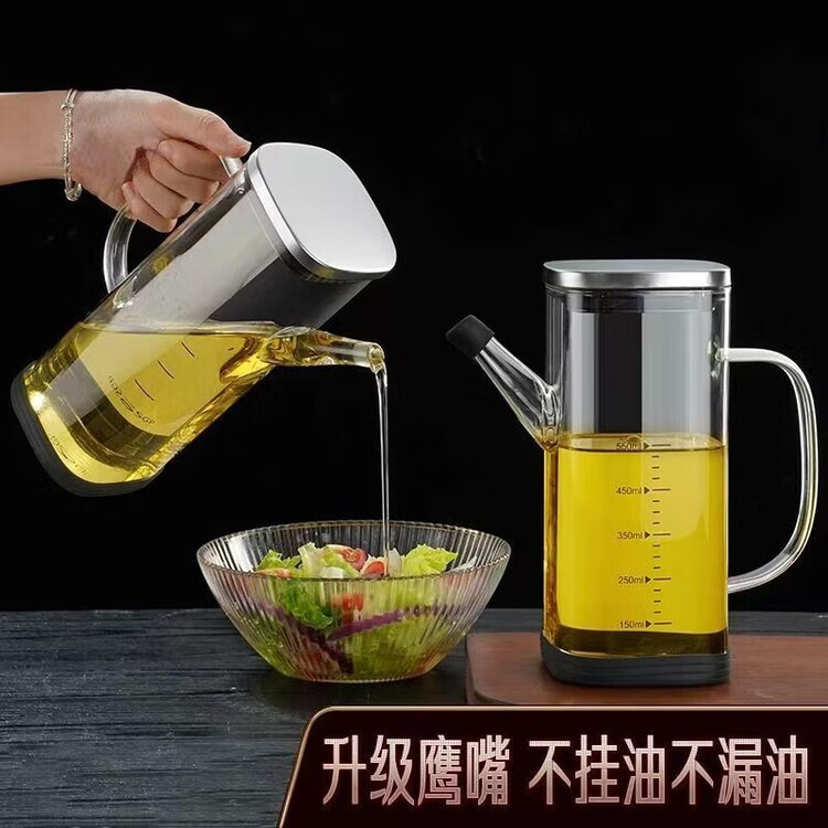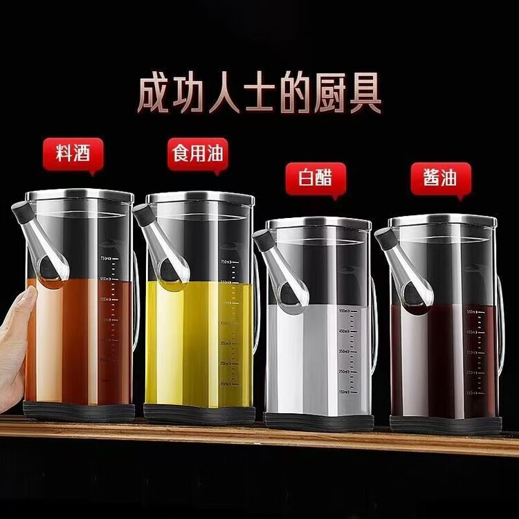 简漾大容量方形油壶四方形油壶家用厨房不挂油高硼硅玻璃耐热油壶防滑 高硼硅耐热玻璃-【破损包赔】 1只中号