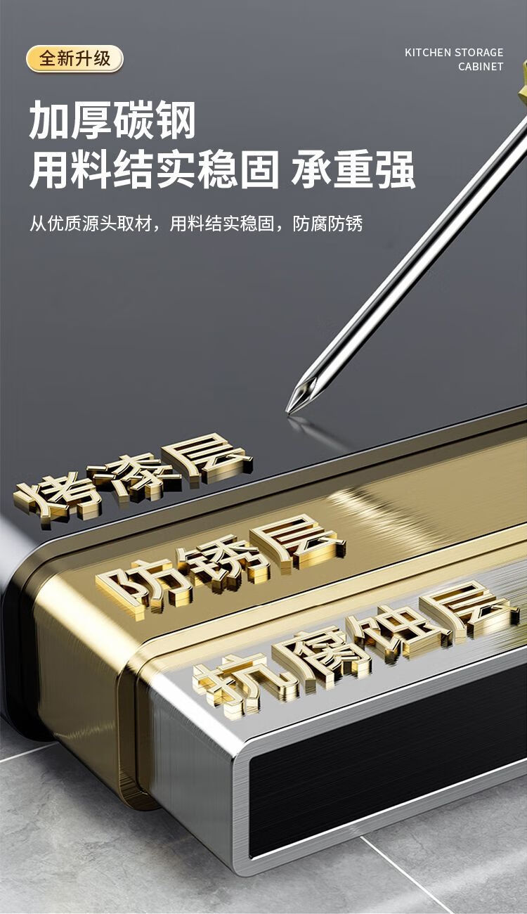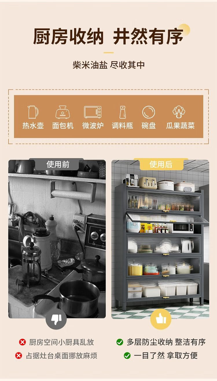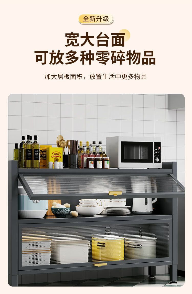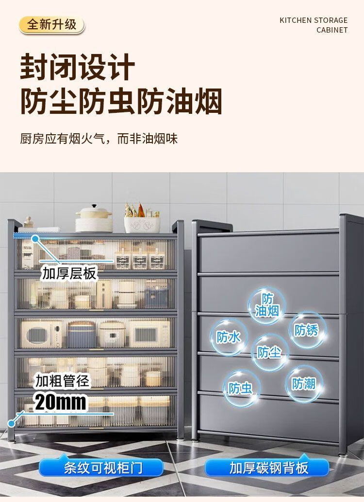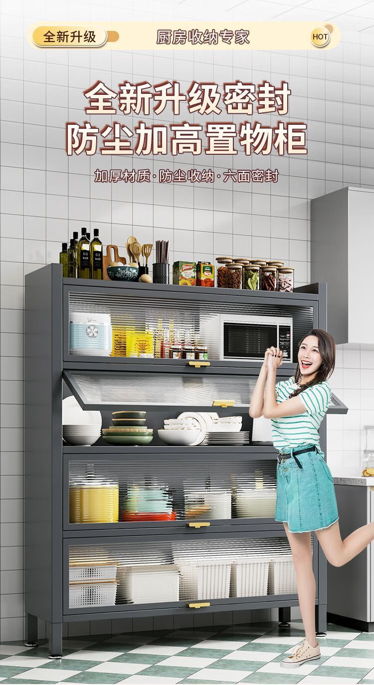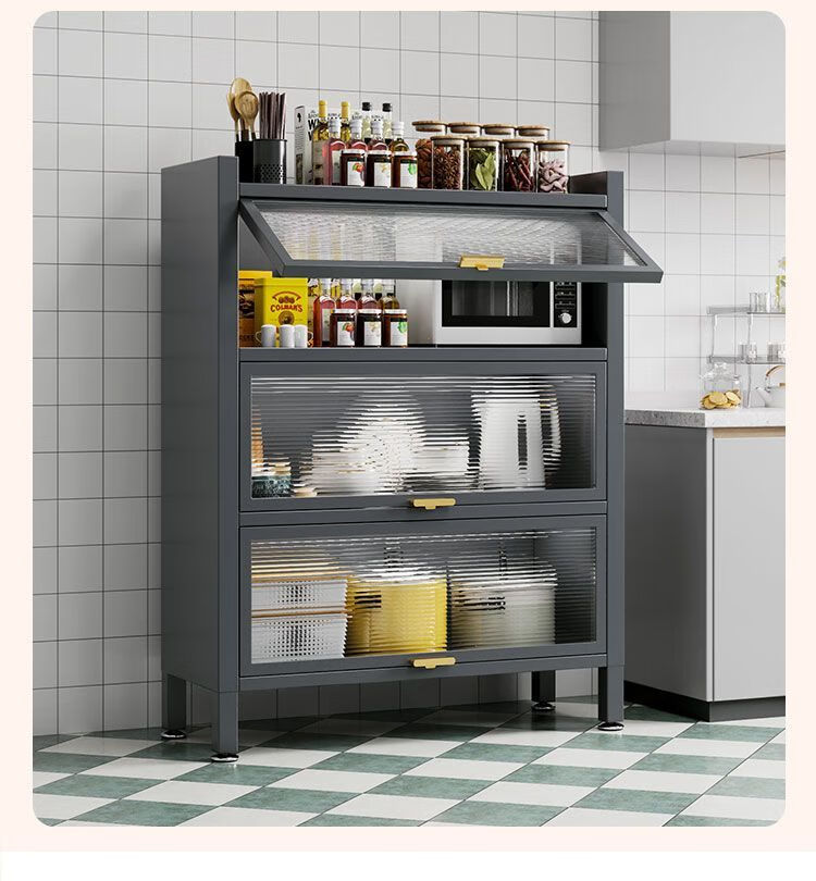 豪利邦厨房钢制餐边柜家用落地大容量多层置物架加厚防尘收纳储物柜碗柜 【枪灰色】加厚碳钢 42深 三层【长60*高80cm】加厚防尘