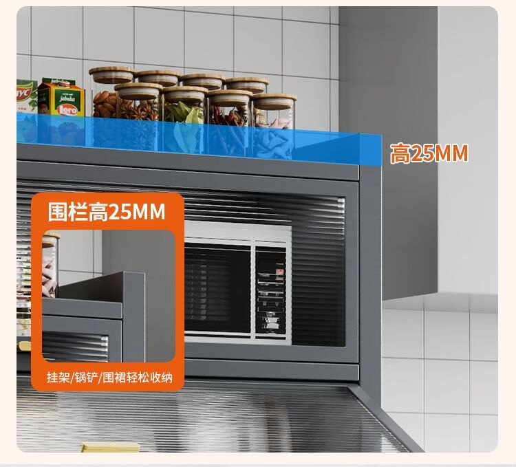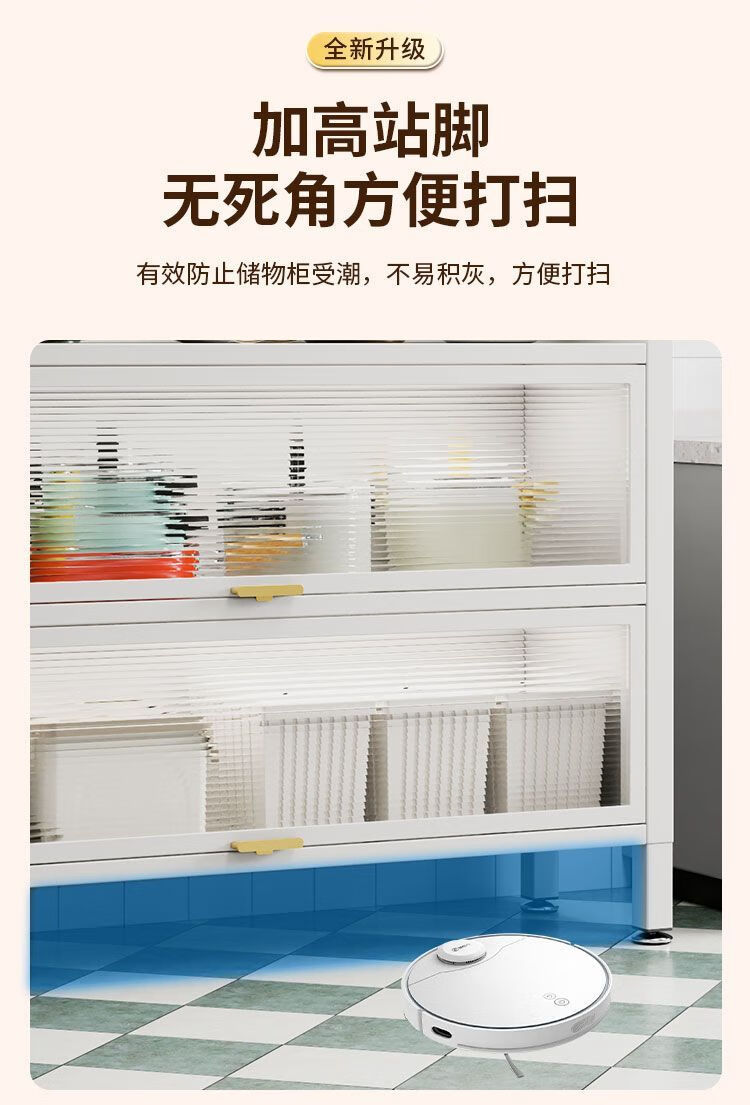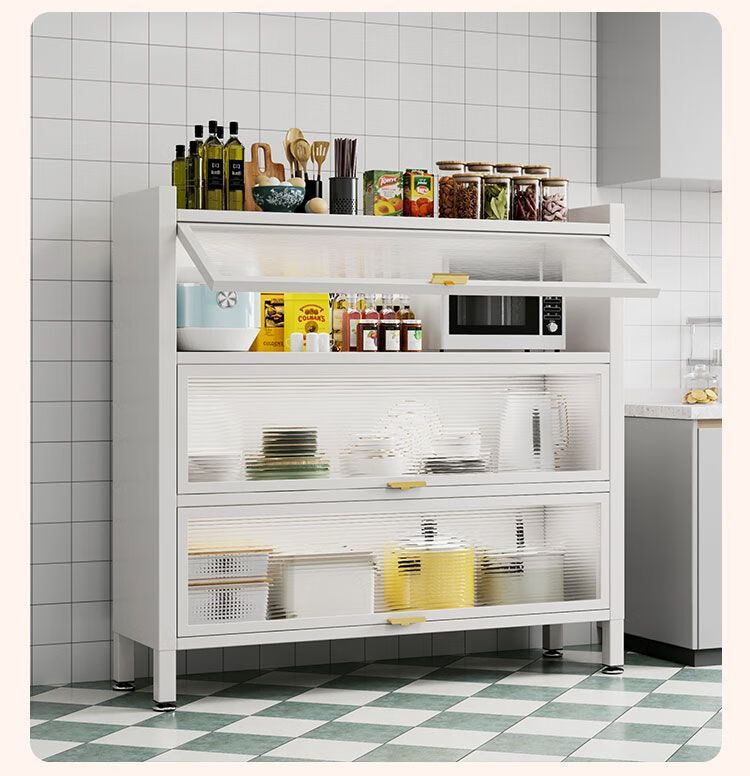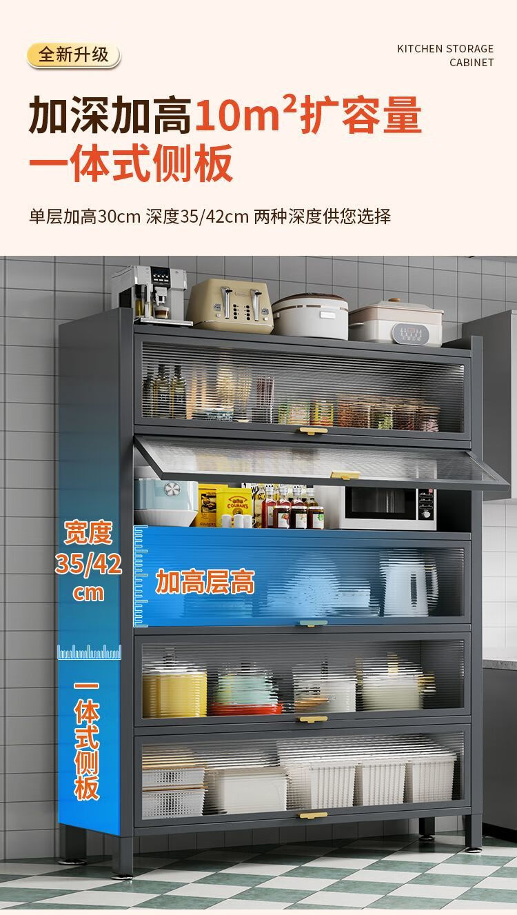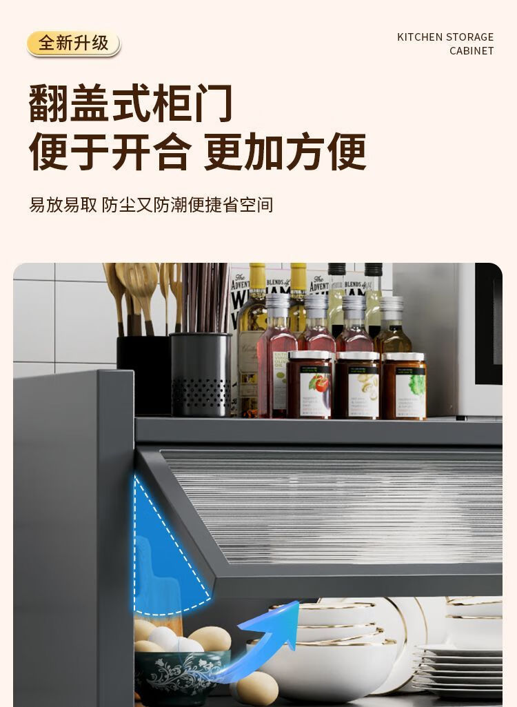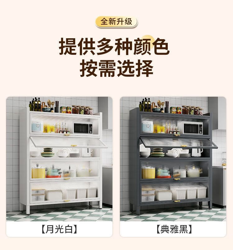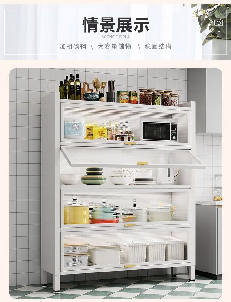 豪利邦厨房钢制餐边柜家用落地大容量多层置物架加厚防尘收纳储物柜碗柜 【枪灰色】加厚碳钢 42深 三层【长60*高80cm】加厚防尘