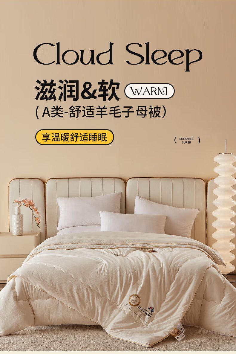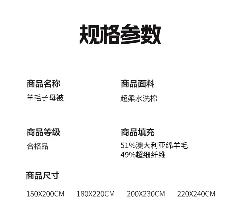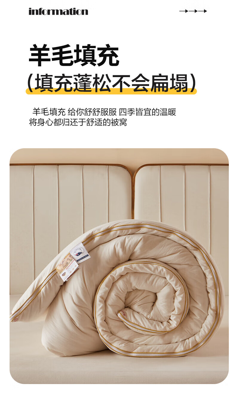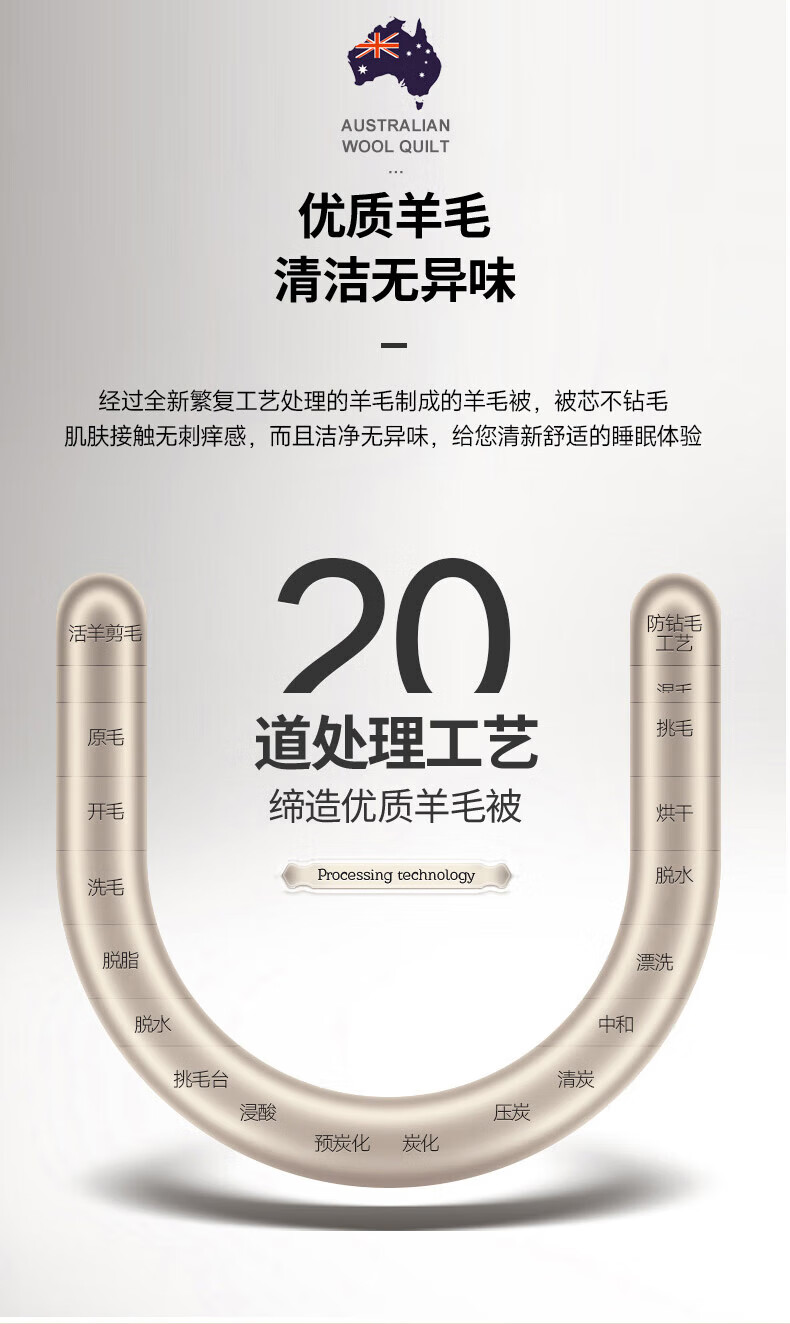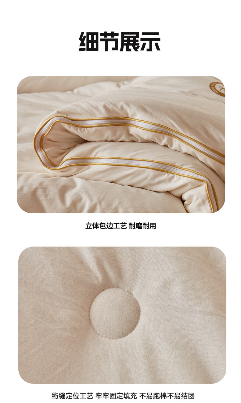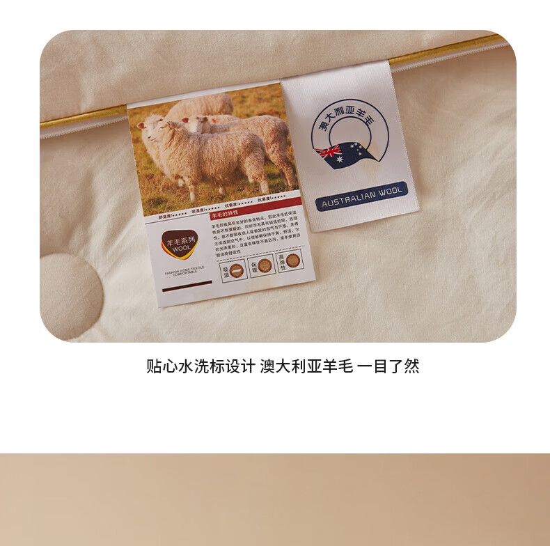 恒源祥澳洲进口羊毛被冬季被子冬被加厚保暖全棉春秋被芯双人8-10斤棉被 白色 150*200-【3斤空调被】+【6斤春秋被】