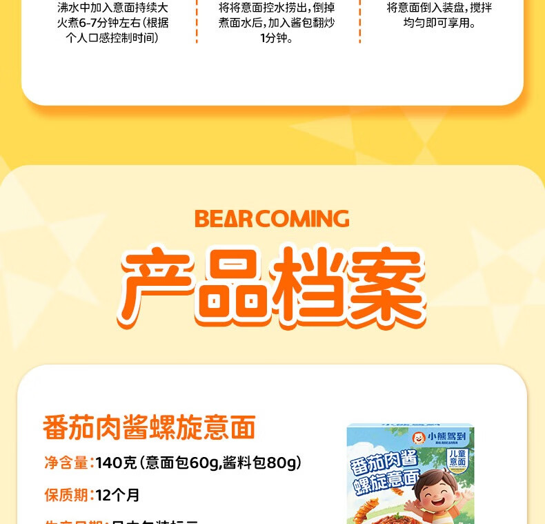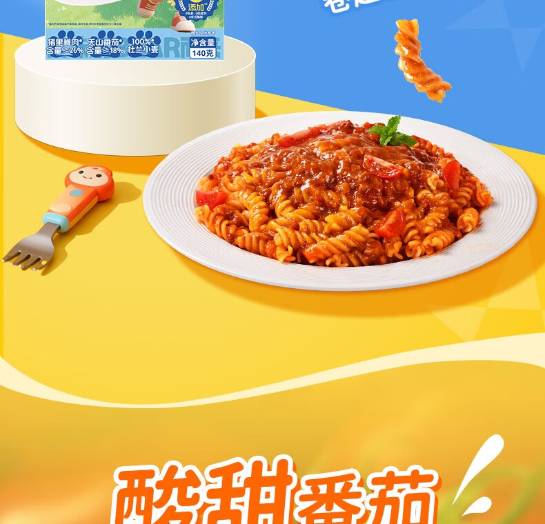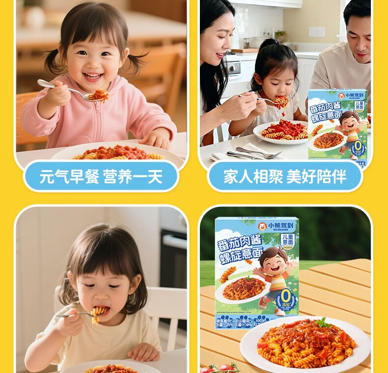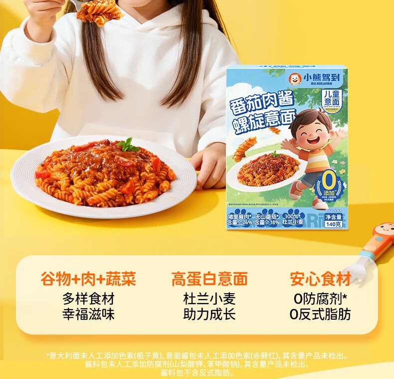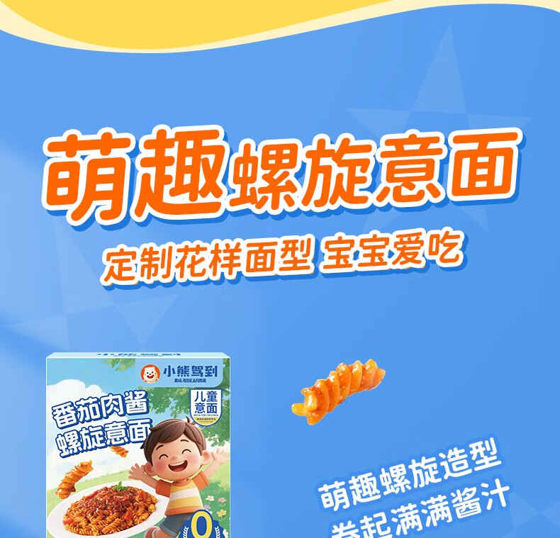 小熊驾到番茄肉酱儿童意面2盒(螺旋形) 0防腐剂色素速食意大利面通心粉