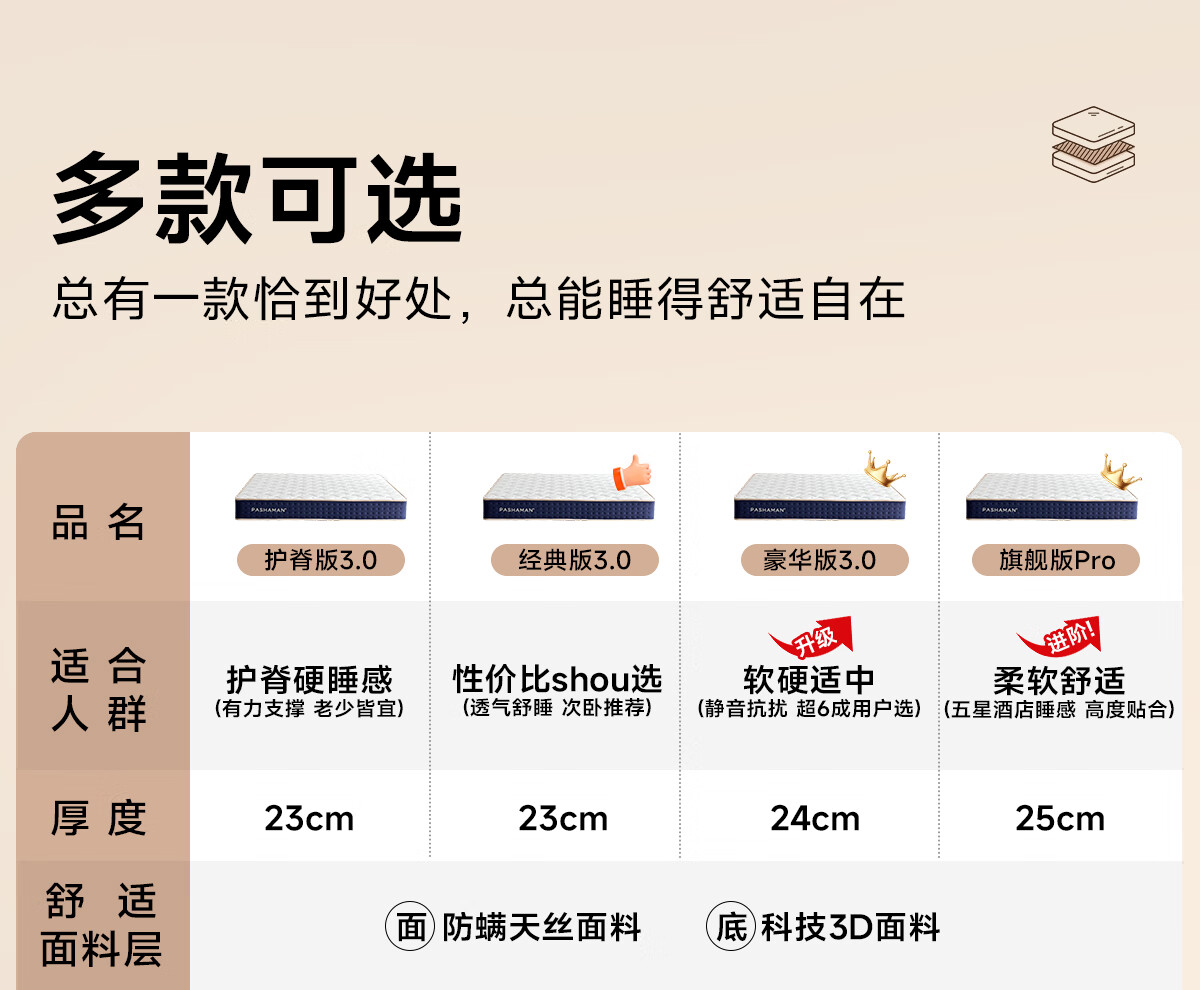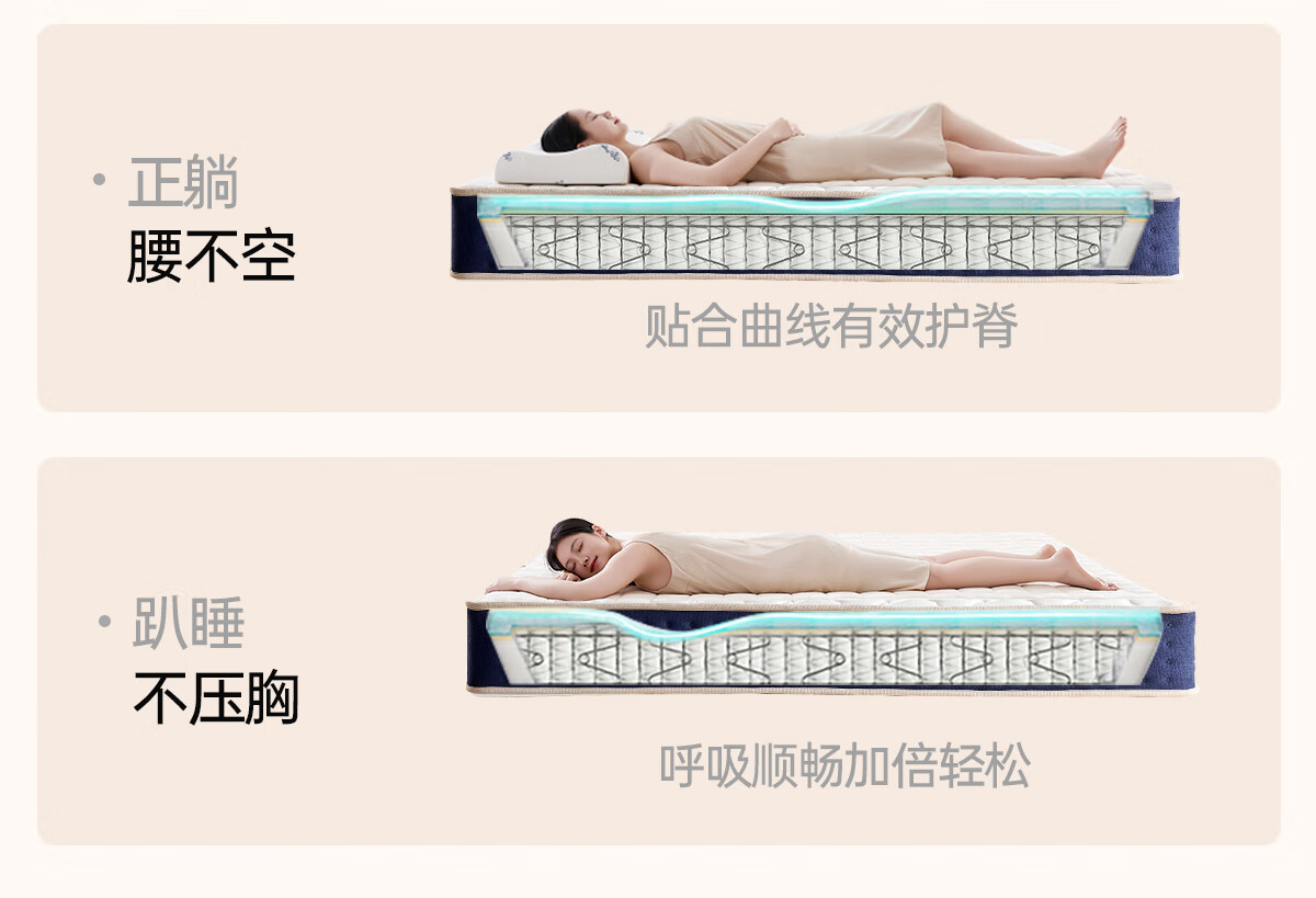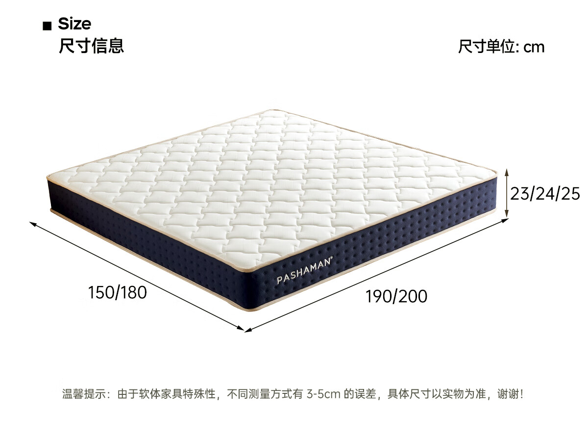 帕沙曼独立弹簧床垫乳胶记忆棉软垫护脊厚床垫椰棕硬垫Z0052 护脊版丨偏硬23cm厚防螨面料+圆网精钢弹簧+护脊椰棕 1800*2000mm