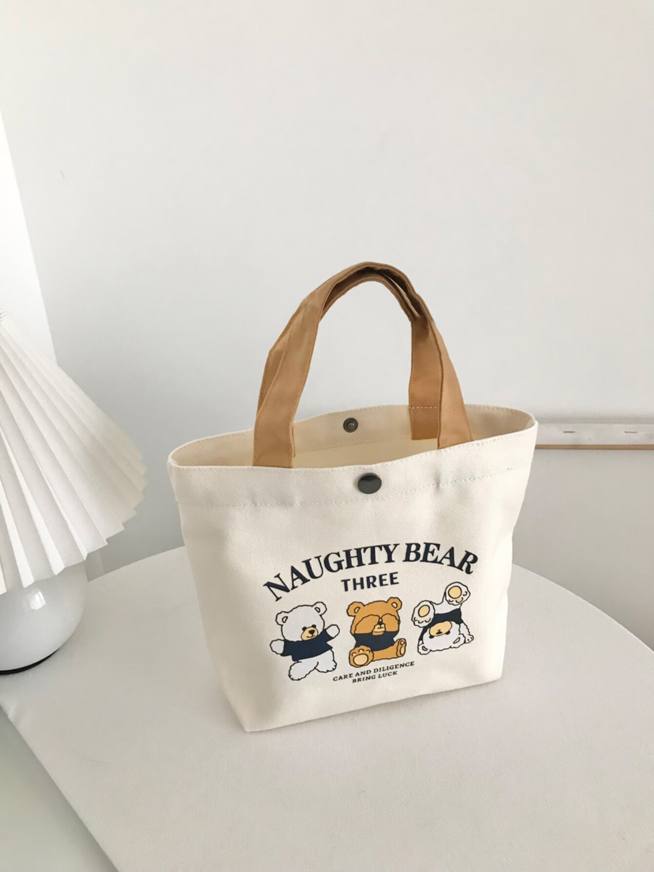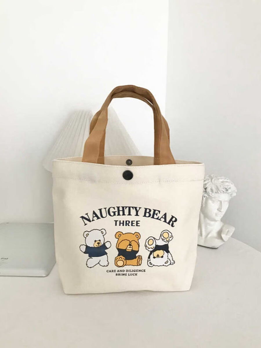 【优选好物】小熊帆布手提包学生便携上班外出手提袋小包包包帆布 摆动作熊