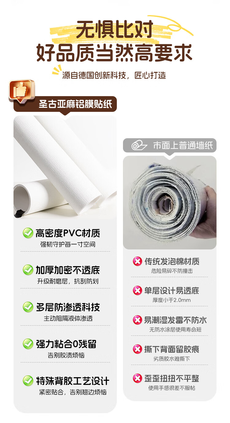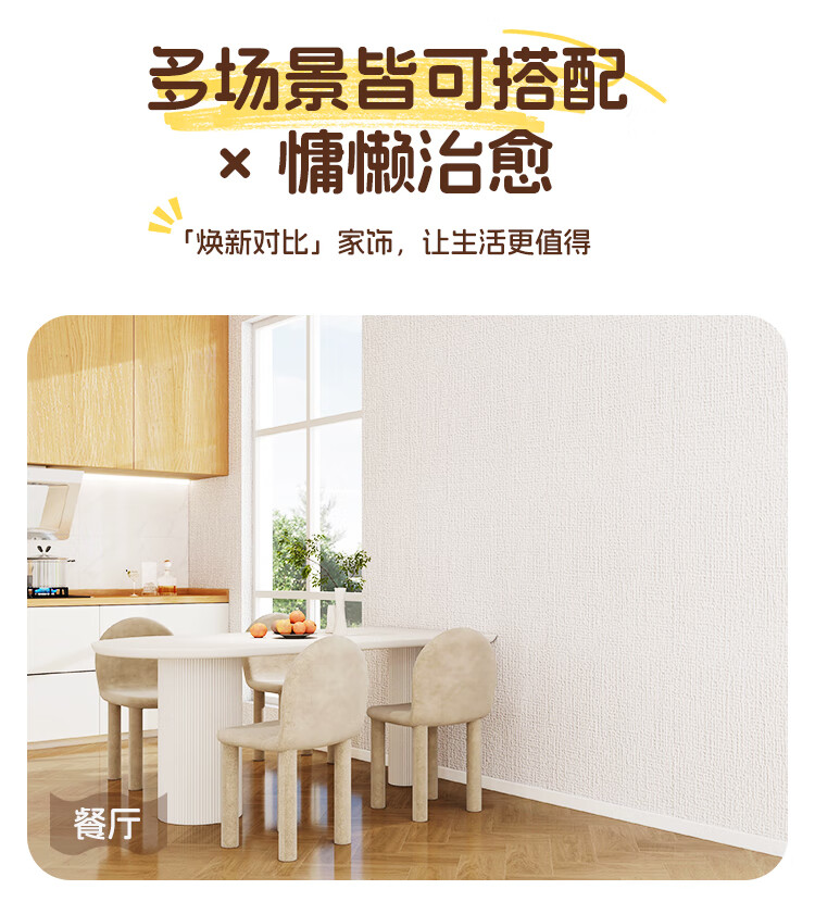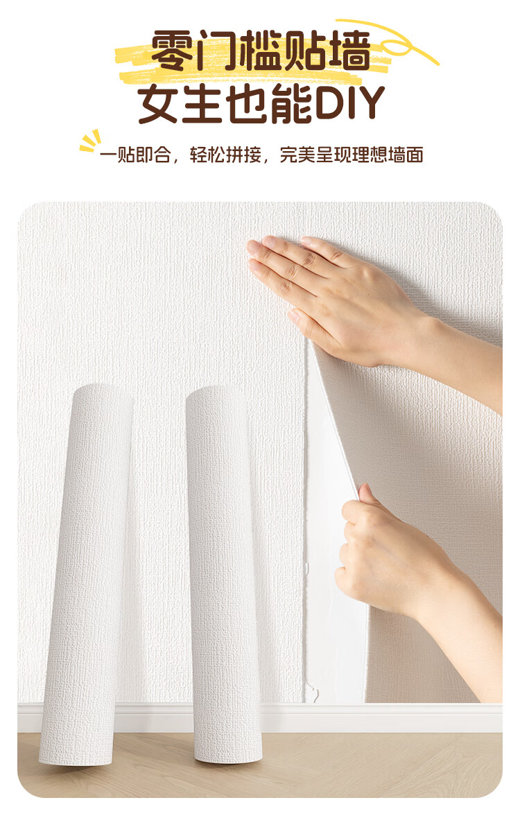 圣古掉灰墙专用墙纸自粘防水防潮3d立体墙贴墙面壁纸遮丑宿舍墙壁贴纸 【亚麻白色】抗菌99.99% 2.8米x50厘米