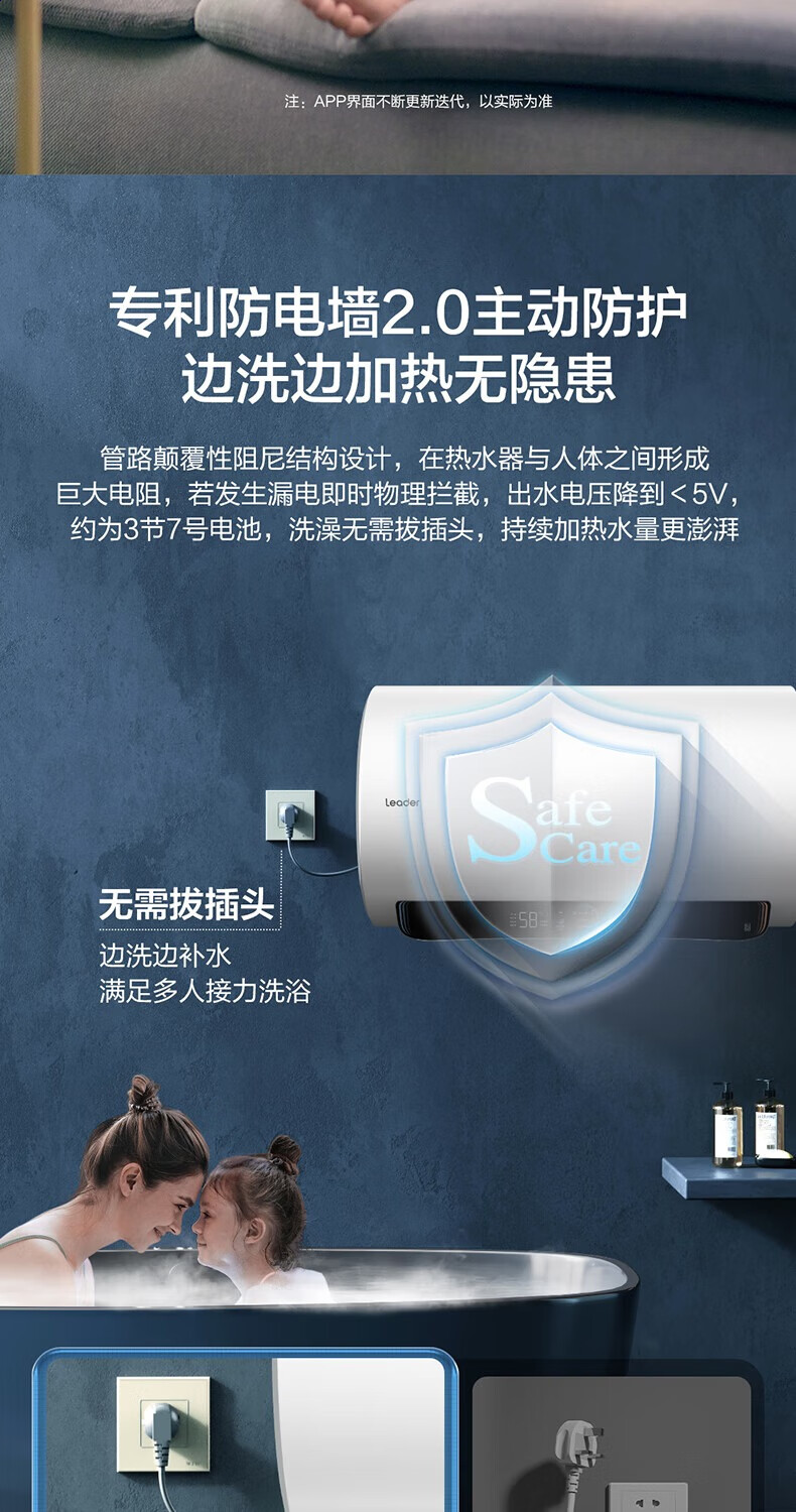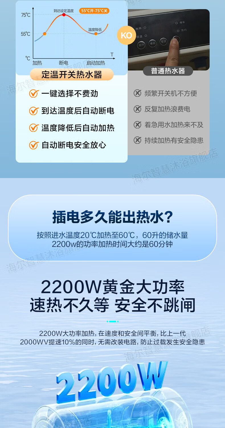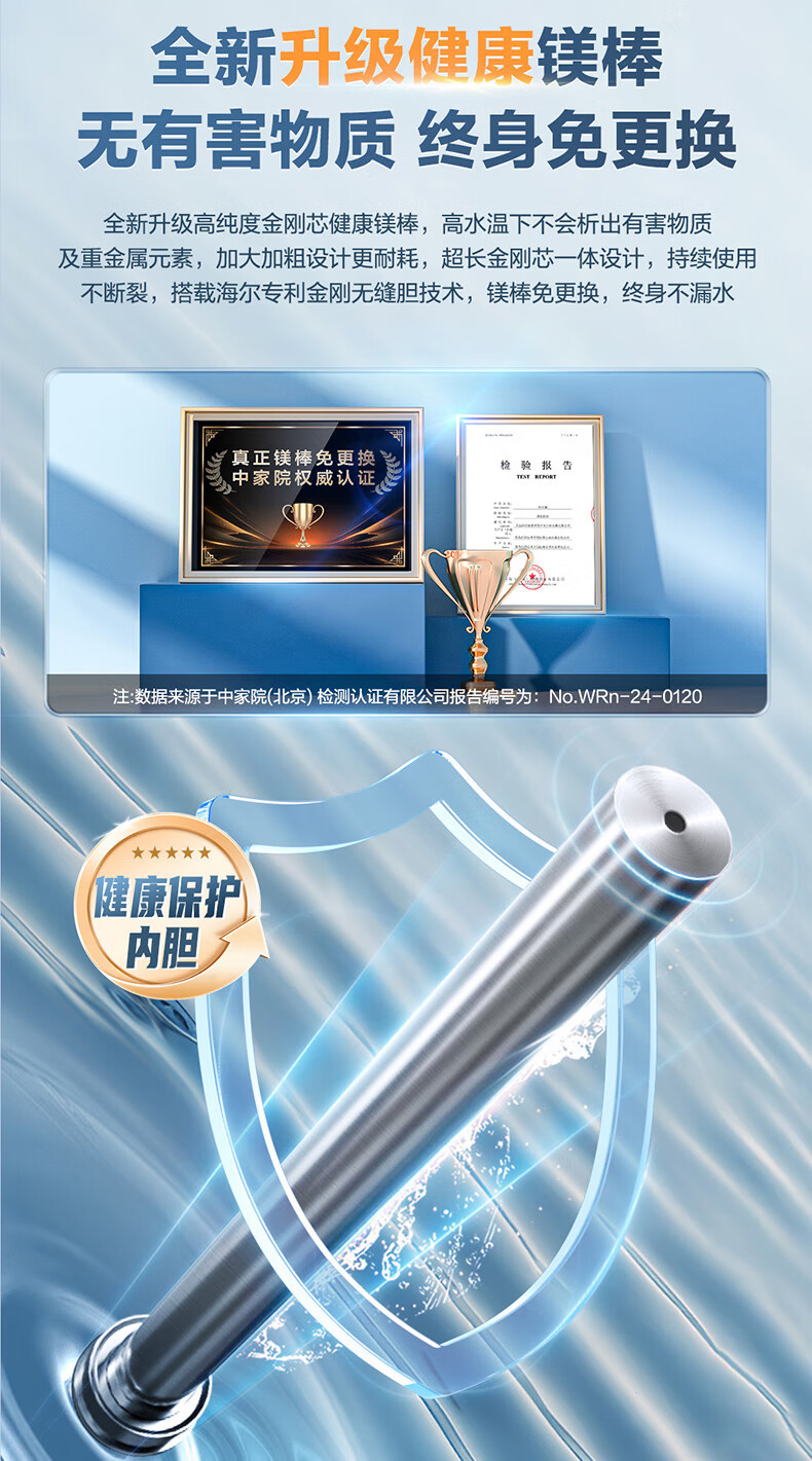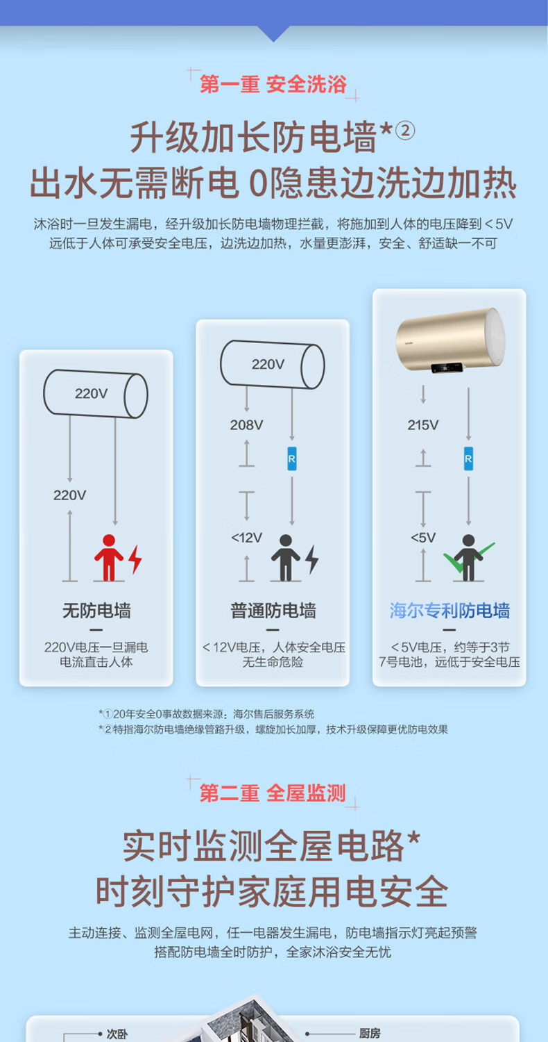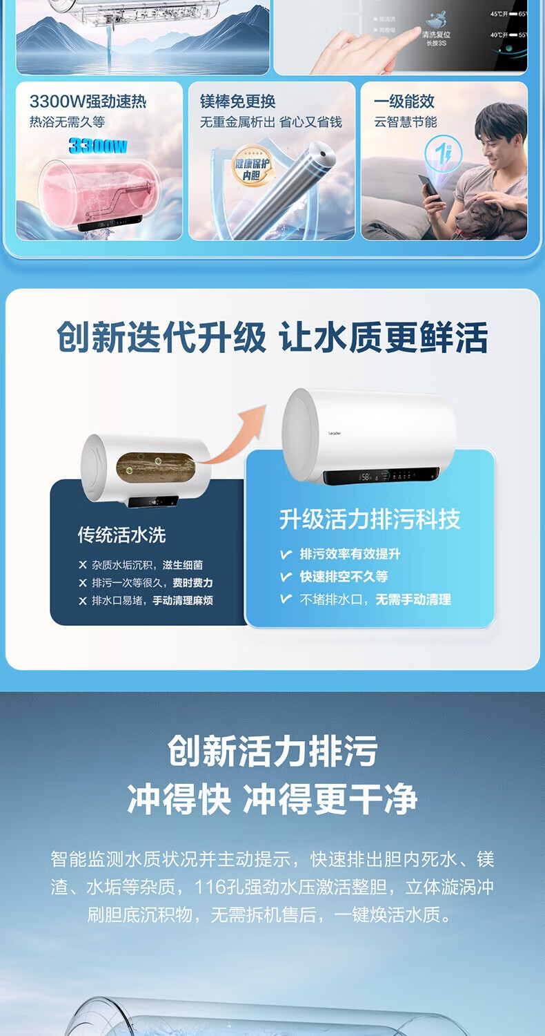 海尔(Haier)储水式电热水器电家用速热一级能效节能家用安全加长防电墙智能家电6重防护上门安装Leader系列 60L 2200W 锆金全瓷/内胆免洗/镁棒免更换