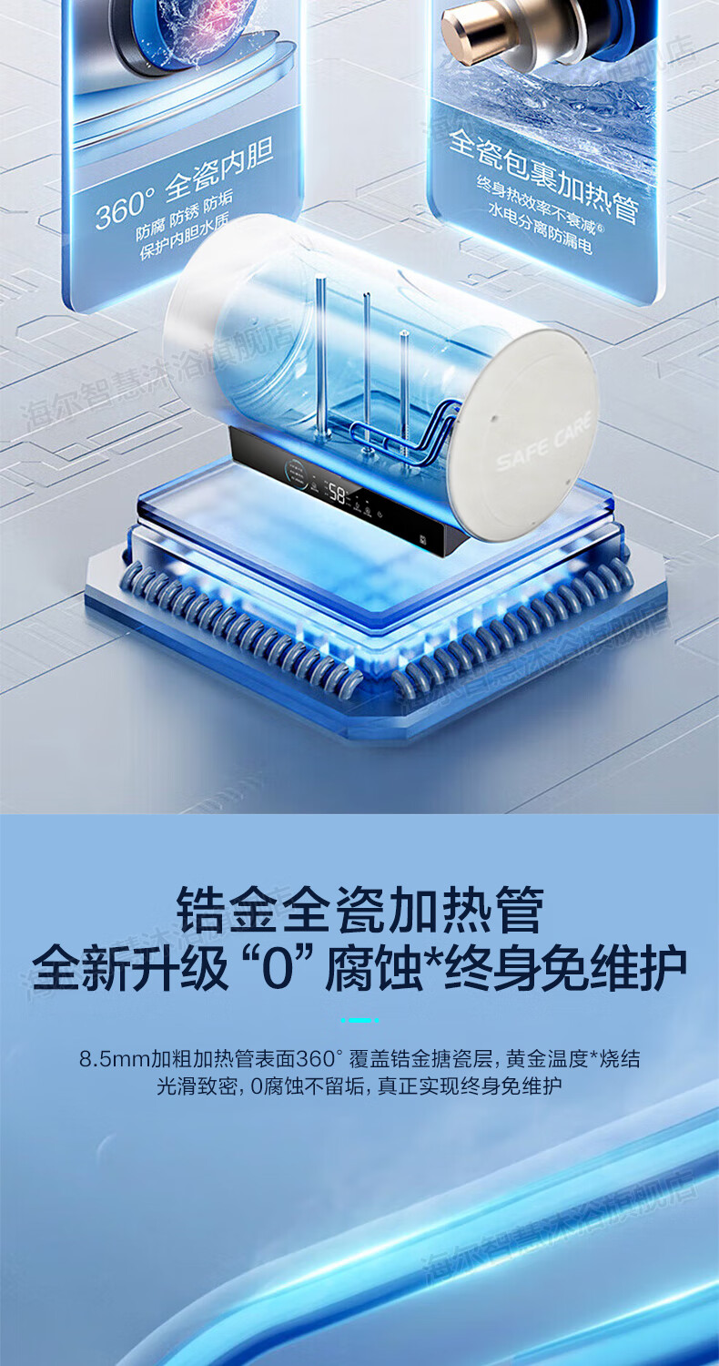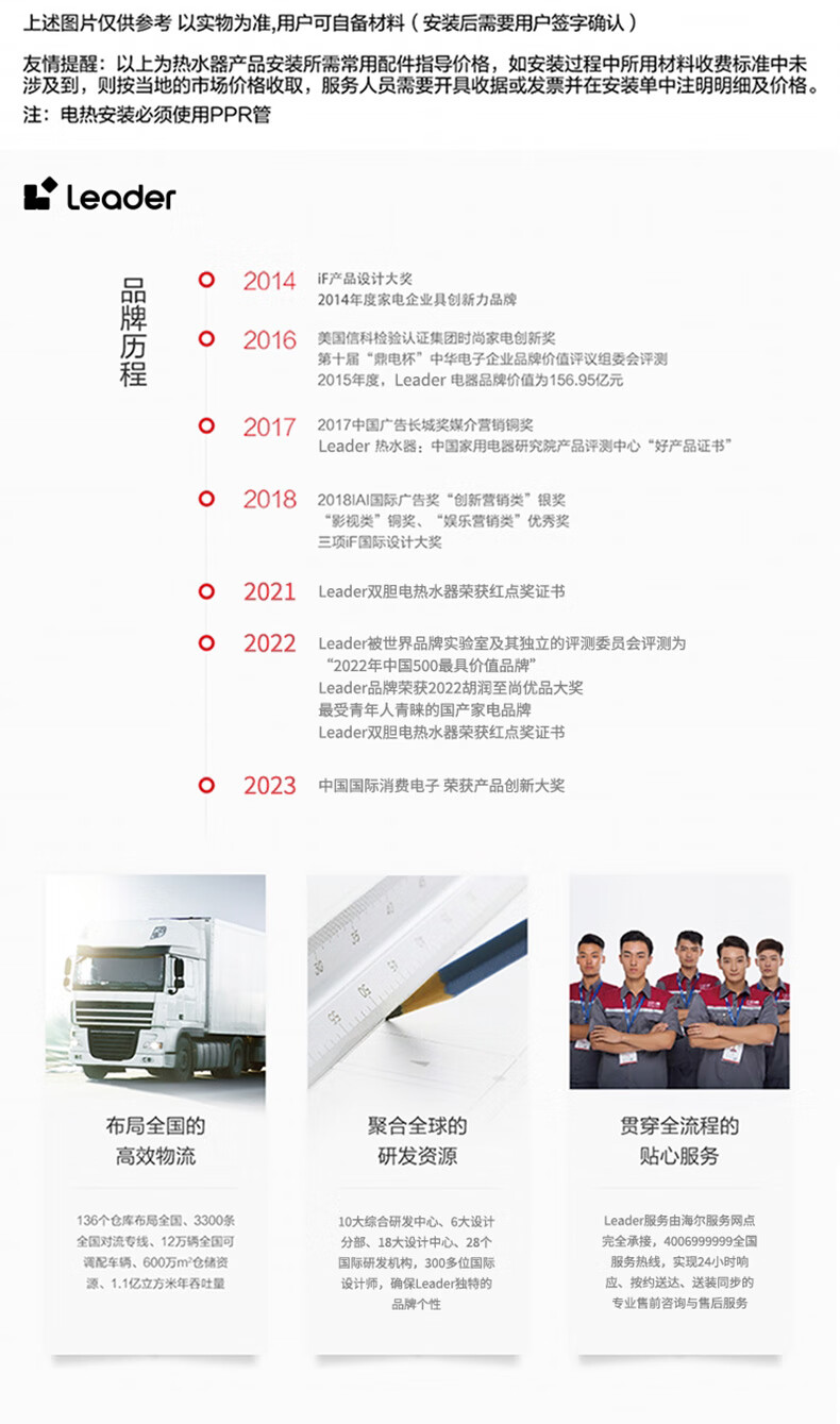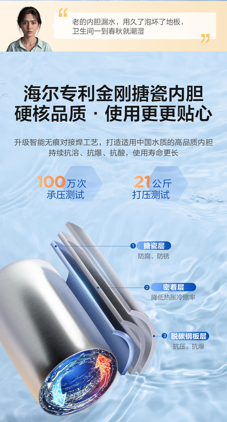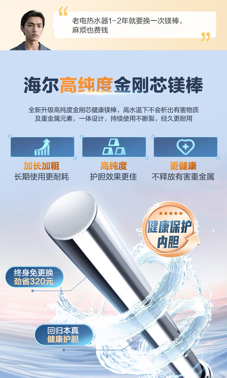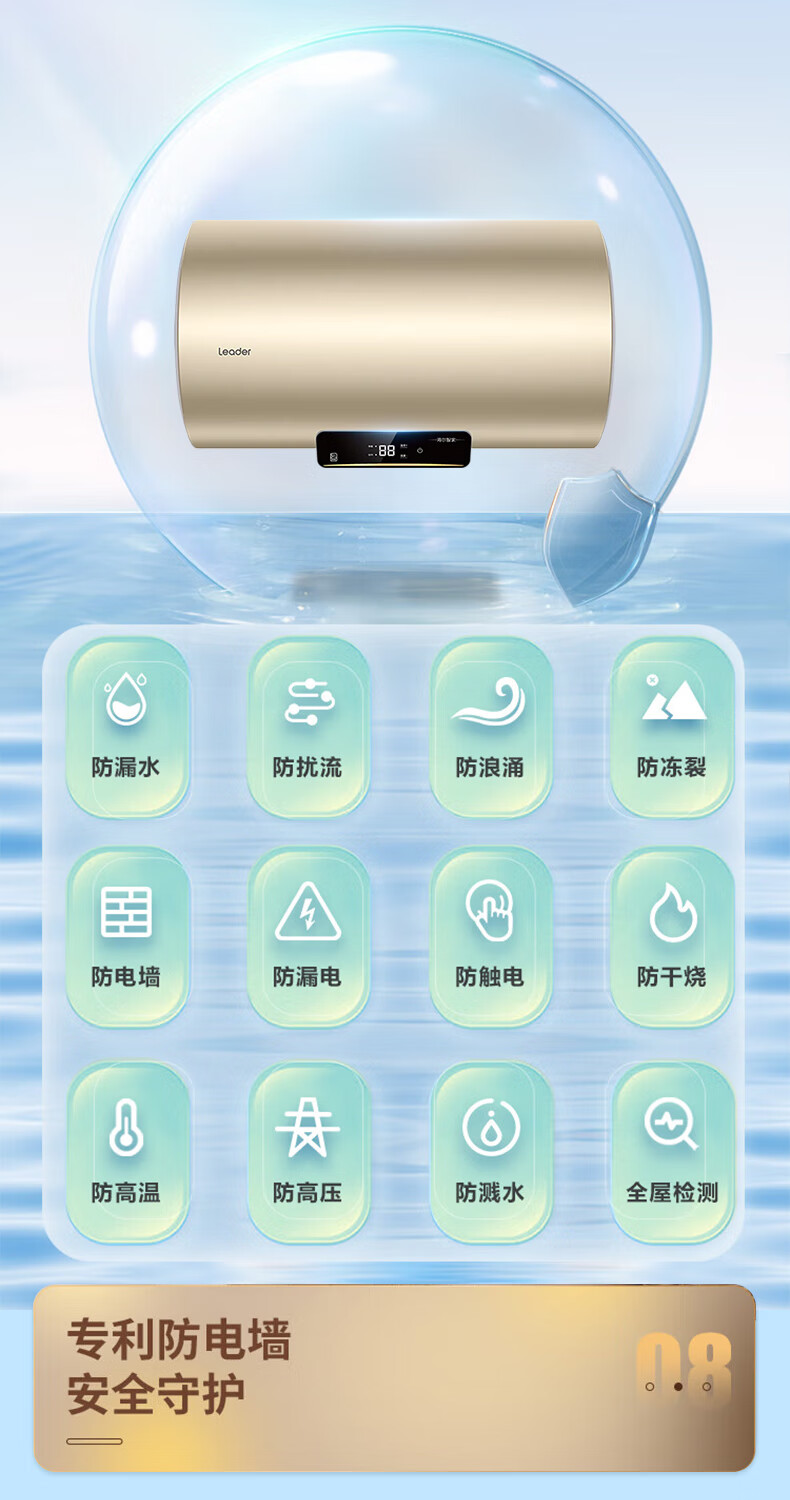 海尔(Haier)储水式电热水器电家用速热一级能效节能家用安全加长防电墙智能家电6重防护上门安装Leader系列 60L 2200W 锆金全瓷/内胆免洗/镁棒免更换